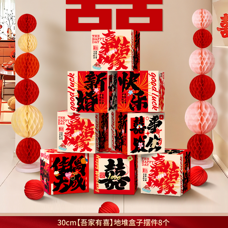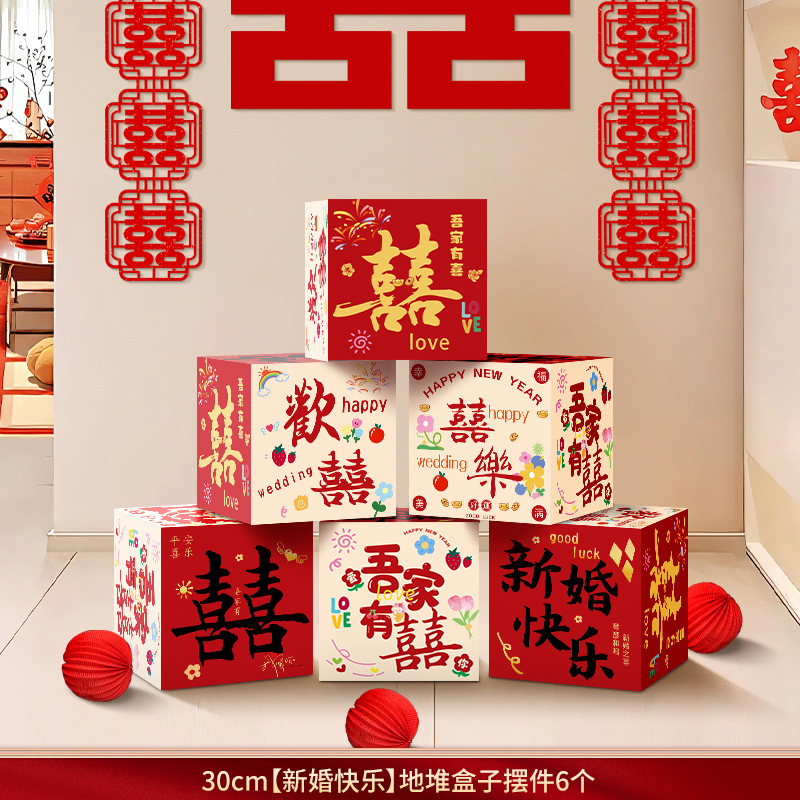 • 해피 웨딩 박스 8개 + Shili Hongzhuang 걸이 천 5개