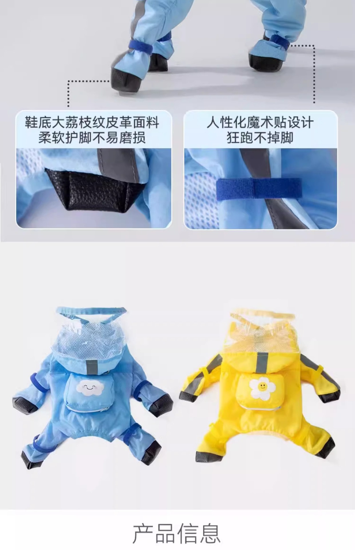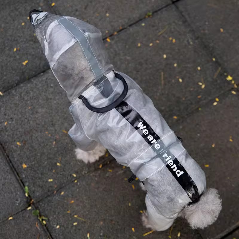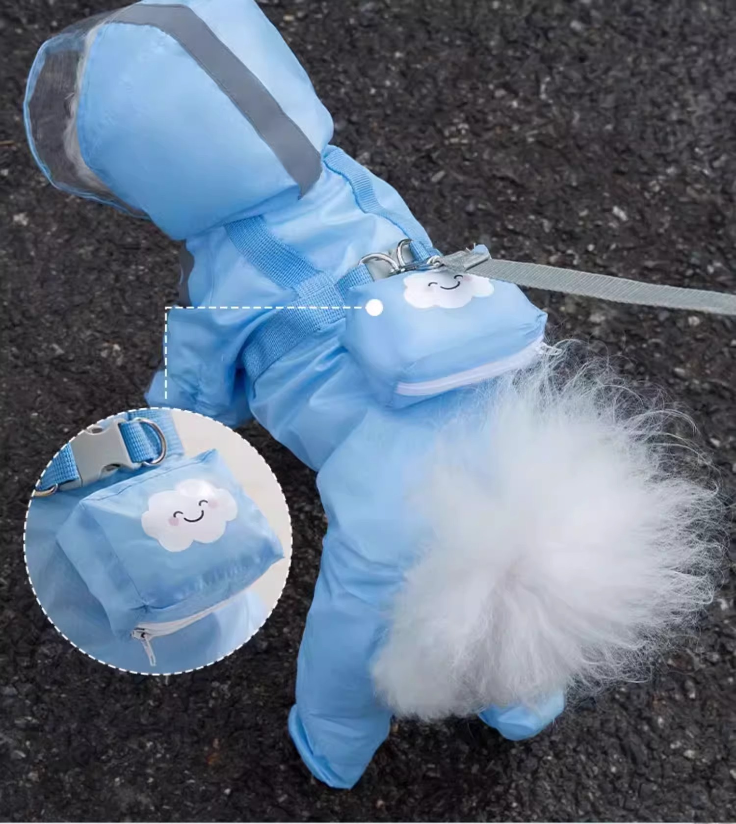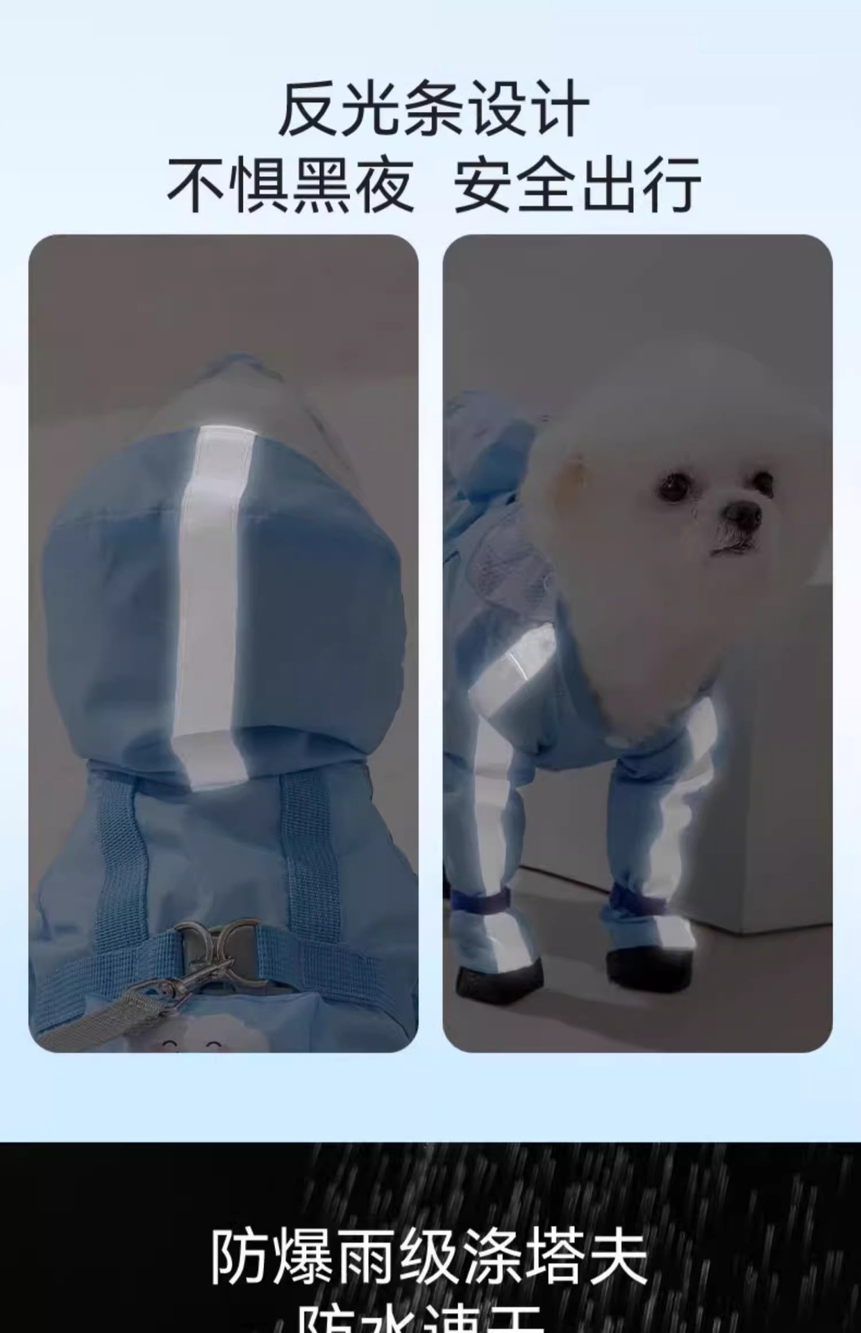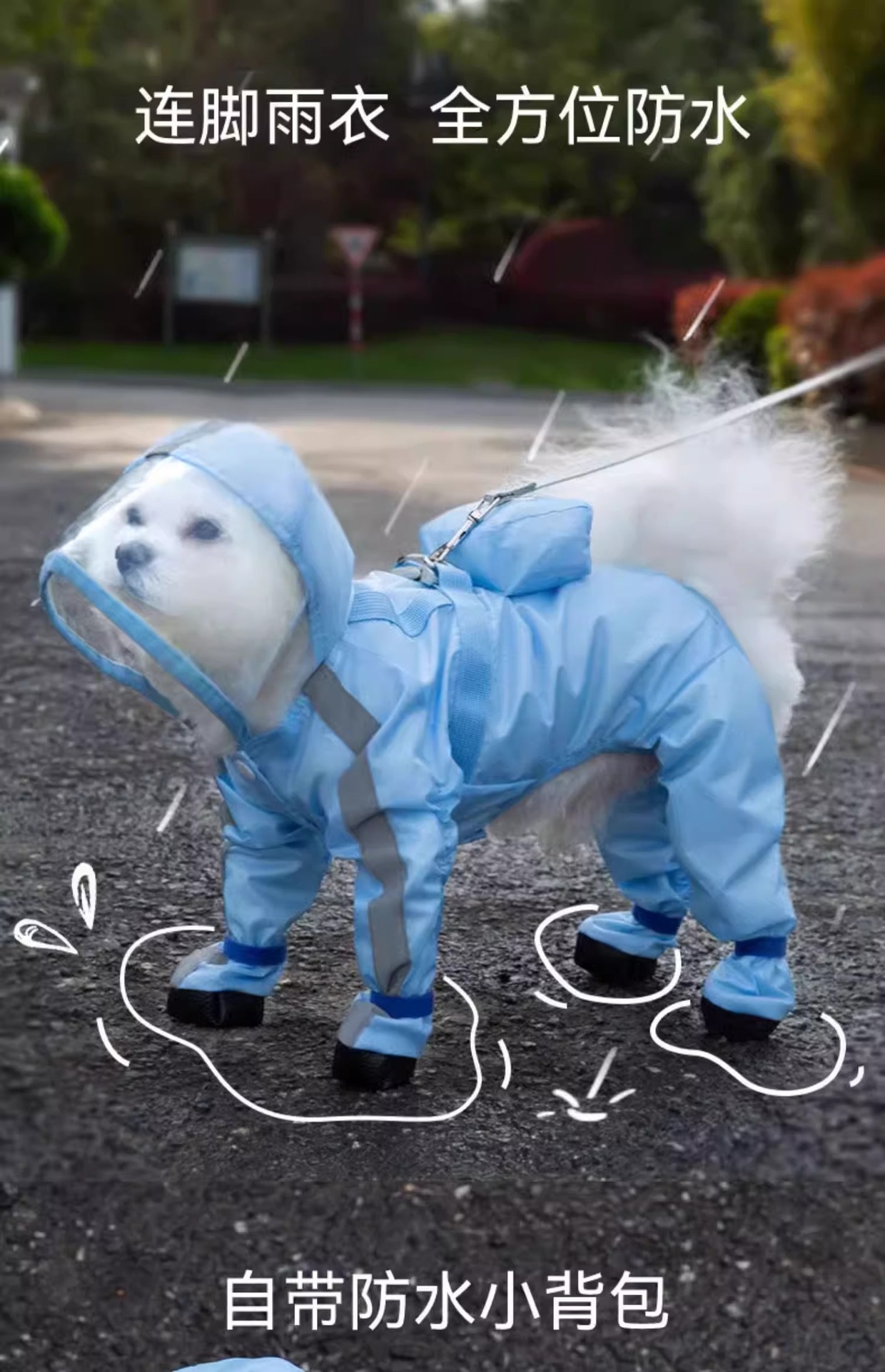 모든 것을 포함하는 4 다리 작은 개 비촌 테디 애완 동물 비오는 날 옷 견인 방수 방풍 4 다리 비옷