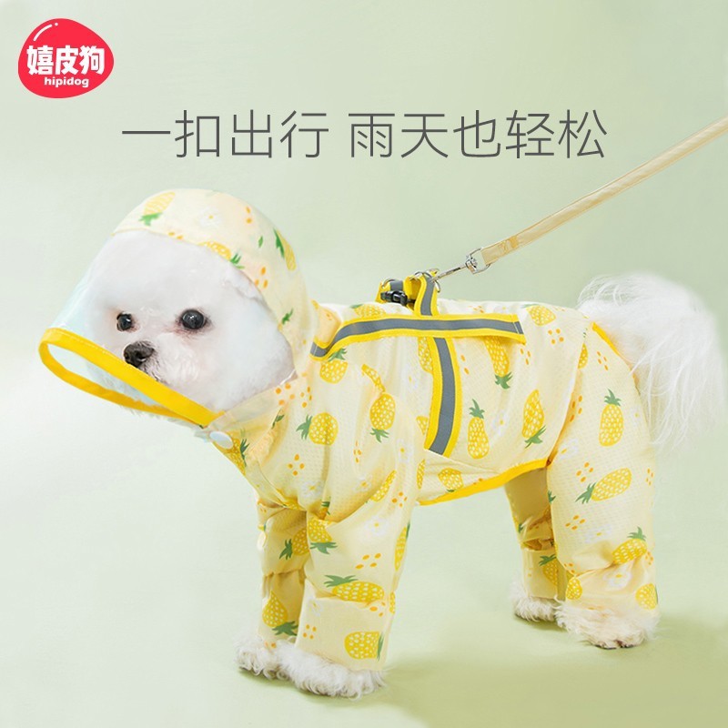 모든 것을 포함하는 4 다리 작은 개 비촌 테디 애완 동물 비오는 날 옷 견인 방수 방풍 4 다리 비옷스토어 가기