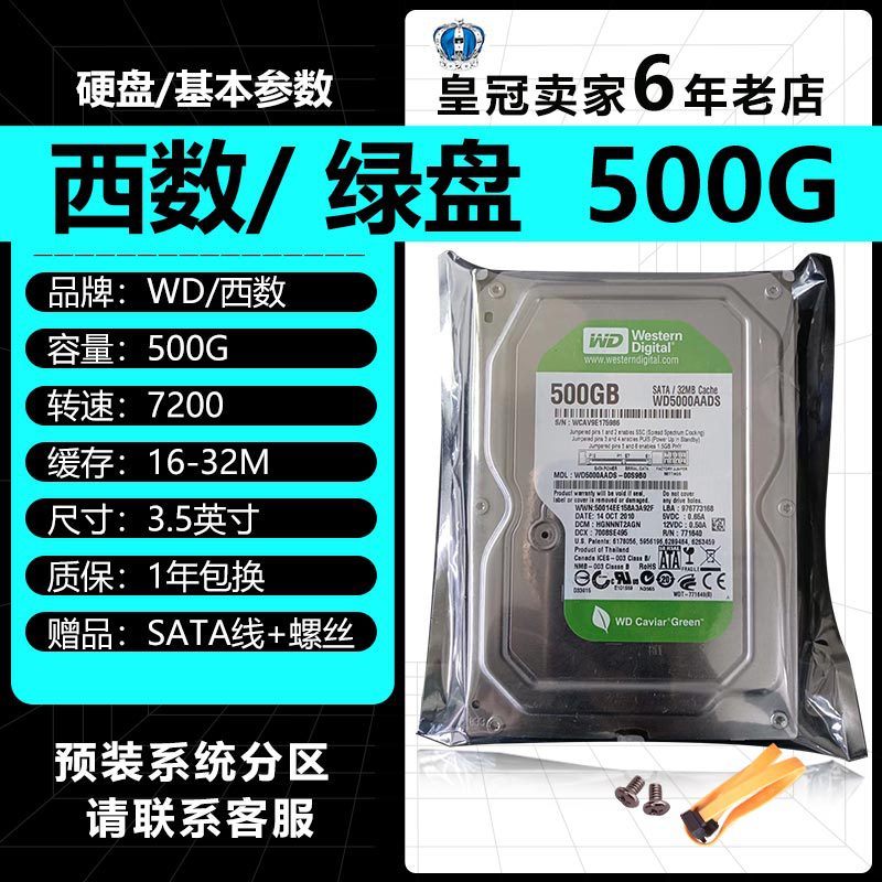 • 대만 3.5inch 새로 고침 뉴 웨스턴 그린 디스크 500G+나사+데이터 케이블