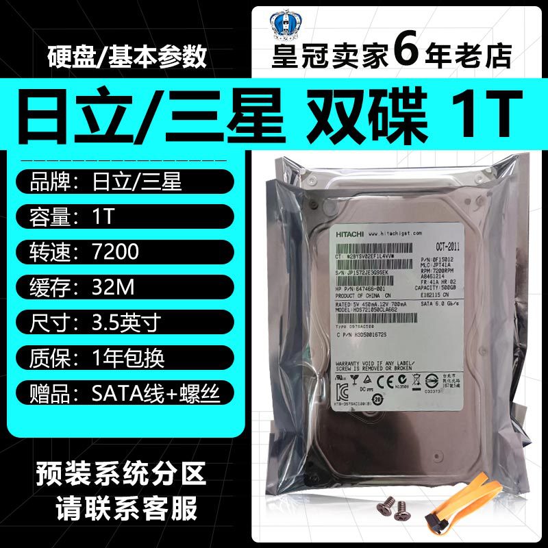 • 대만 3.5inch Toshiba Hitachi 1TB 듀얼 디스크 + 나사 + 데이터 케이블