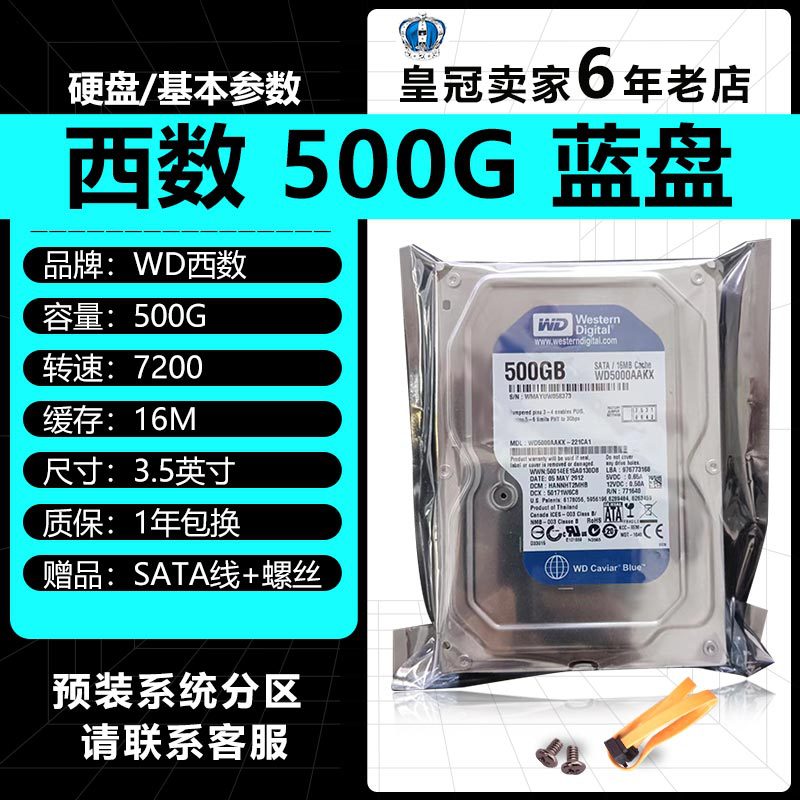 • 대만 3.5inch Western Digital 블루 디스크 500G + 나사 + 데이터 케이블