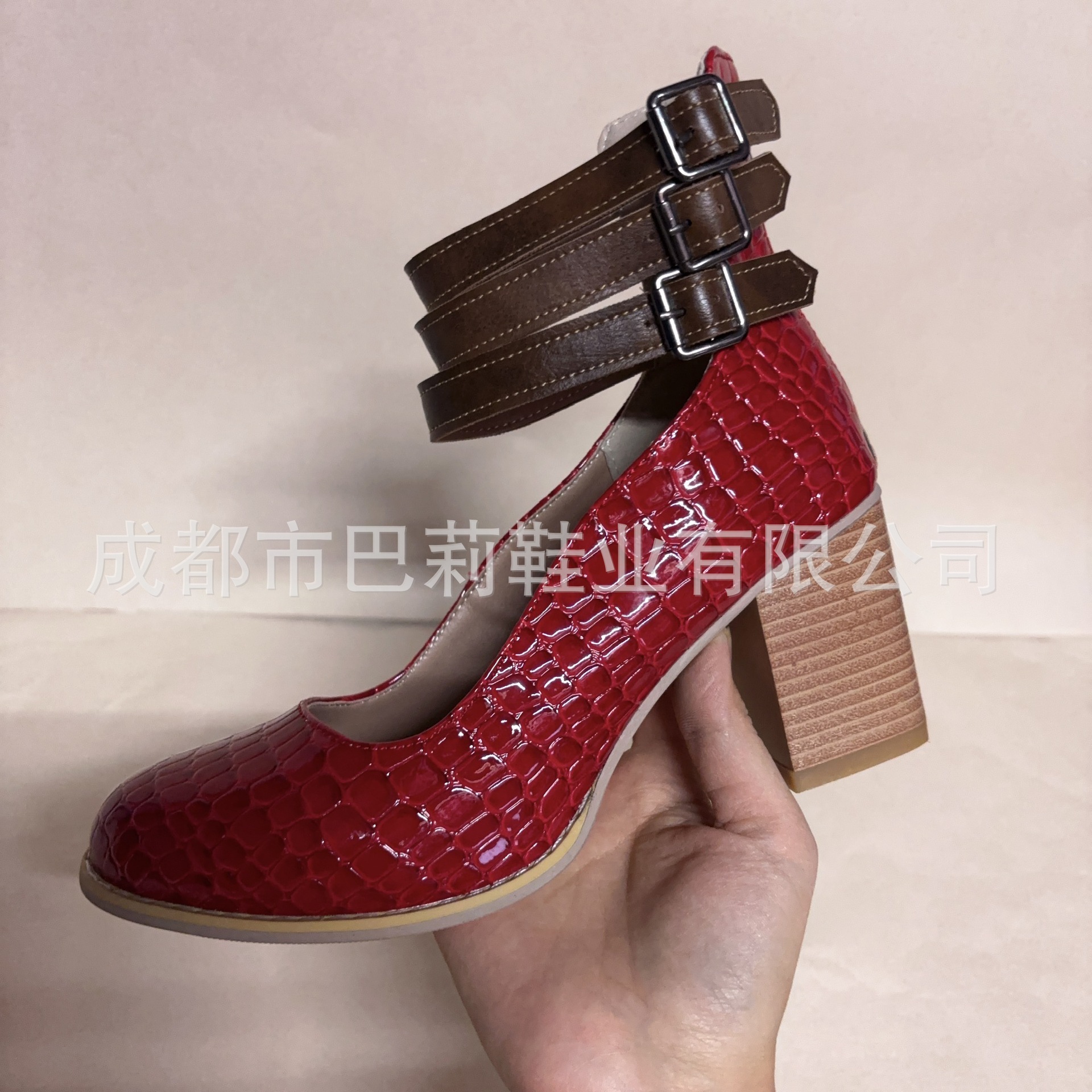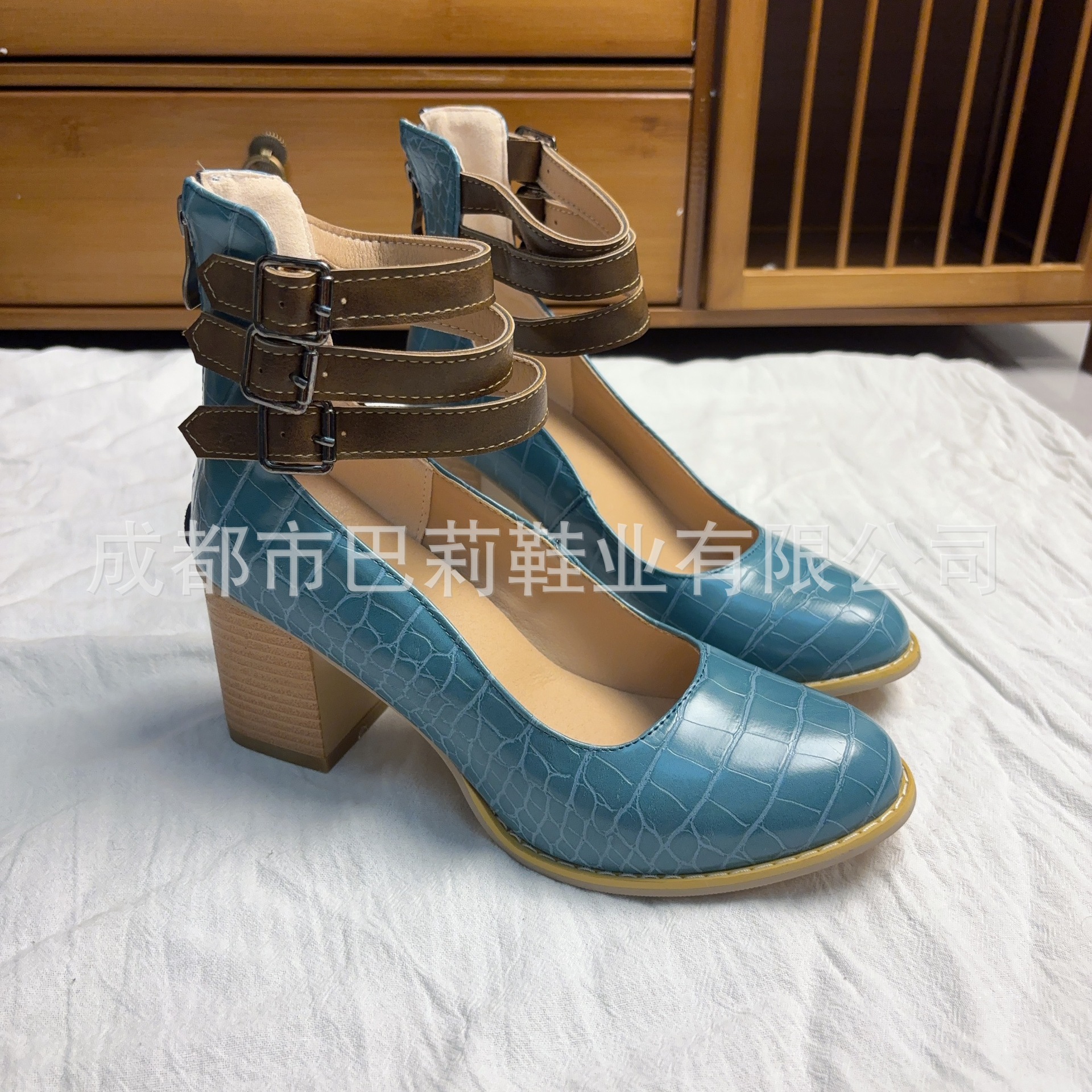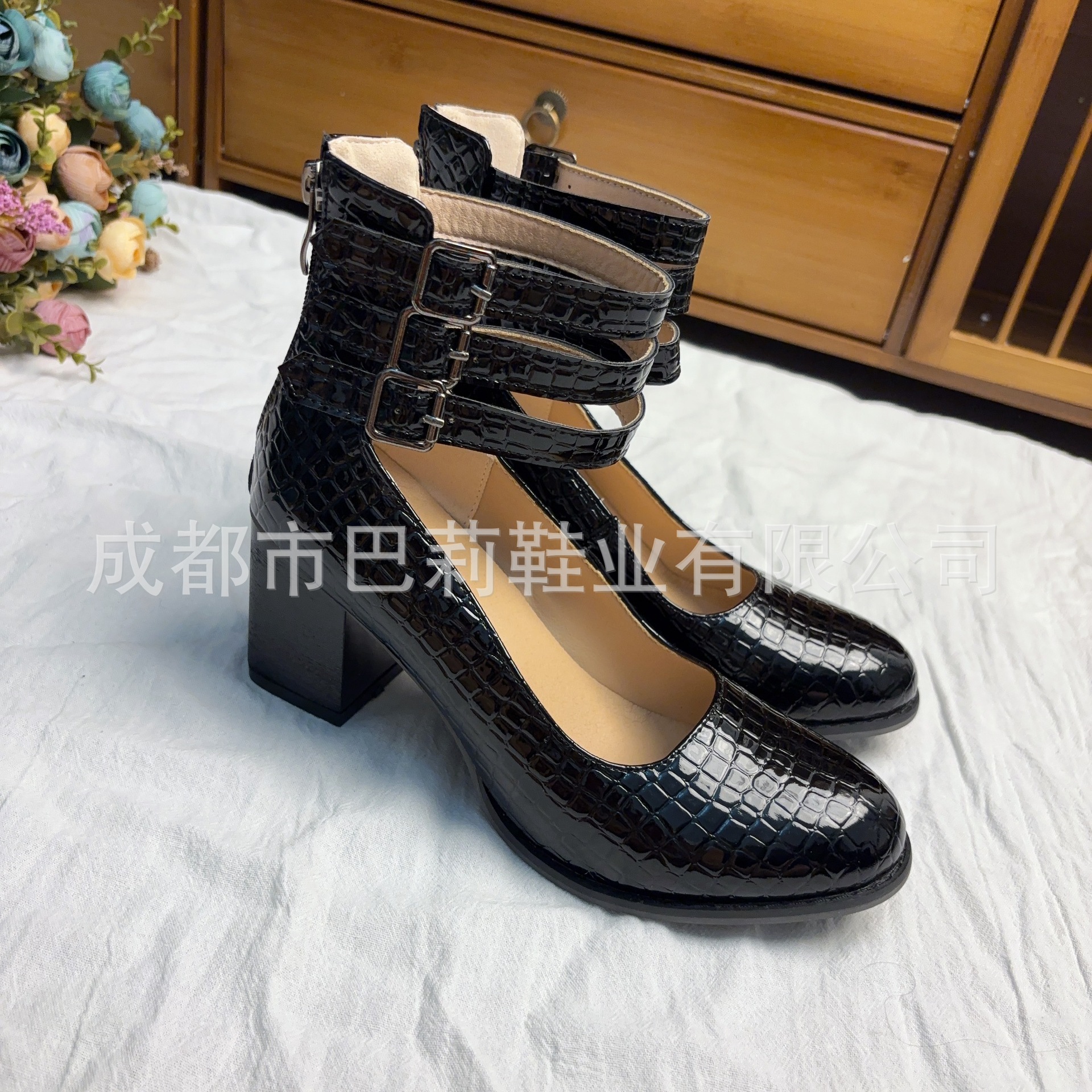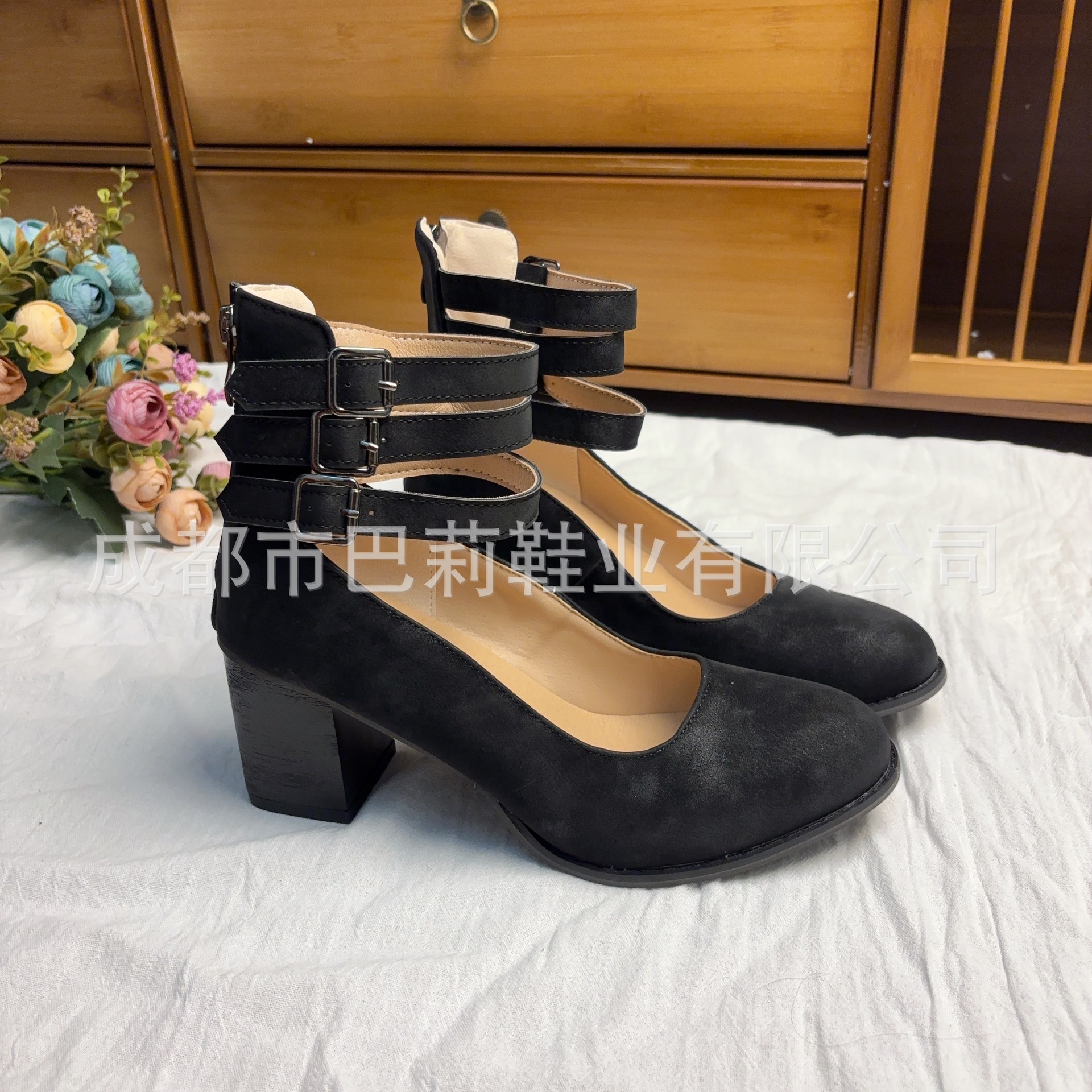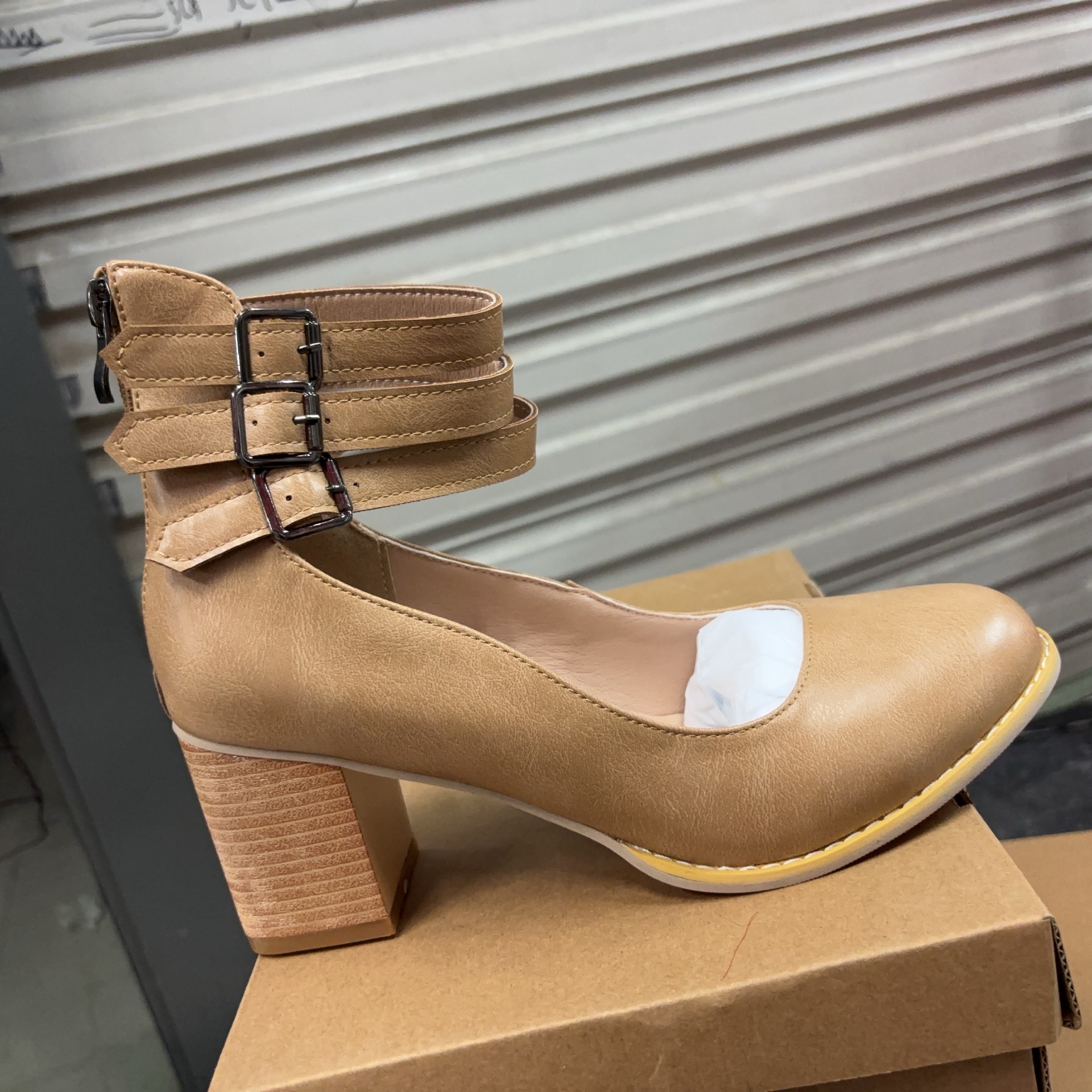 국경 간 대외 무역 새로운 2025 아마존 독립 역 후방 지퍼 두꺼운 하이힐 스퀘어 힐링 얕은 버클 여성용 싱글 신발스토어 가기