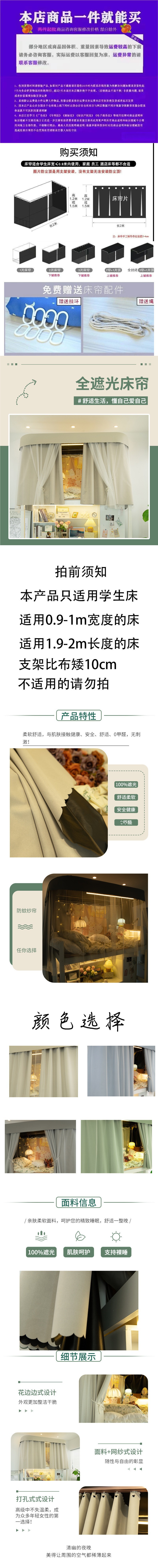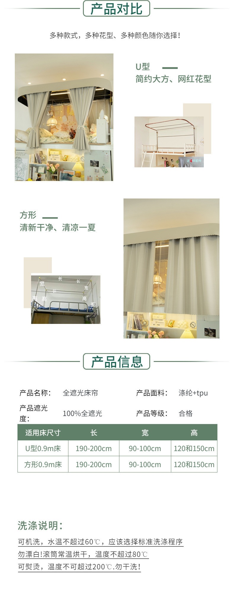 침대 커튼 U자형 기숙사 어린이 상단 침대용 차광 커튼, 강력한 차광 및 두꺼운 하단 침대 모기장 트랙 기숙사 학생 공장 도매스토어 가기