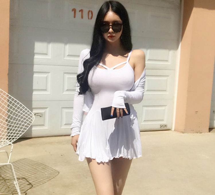 한국 동대문 구매대행 마이크로 시스루 가디건 + 퓨어 러블리 핫걸 섹시 서스펜더 허리 여성용 투피스 드레스
