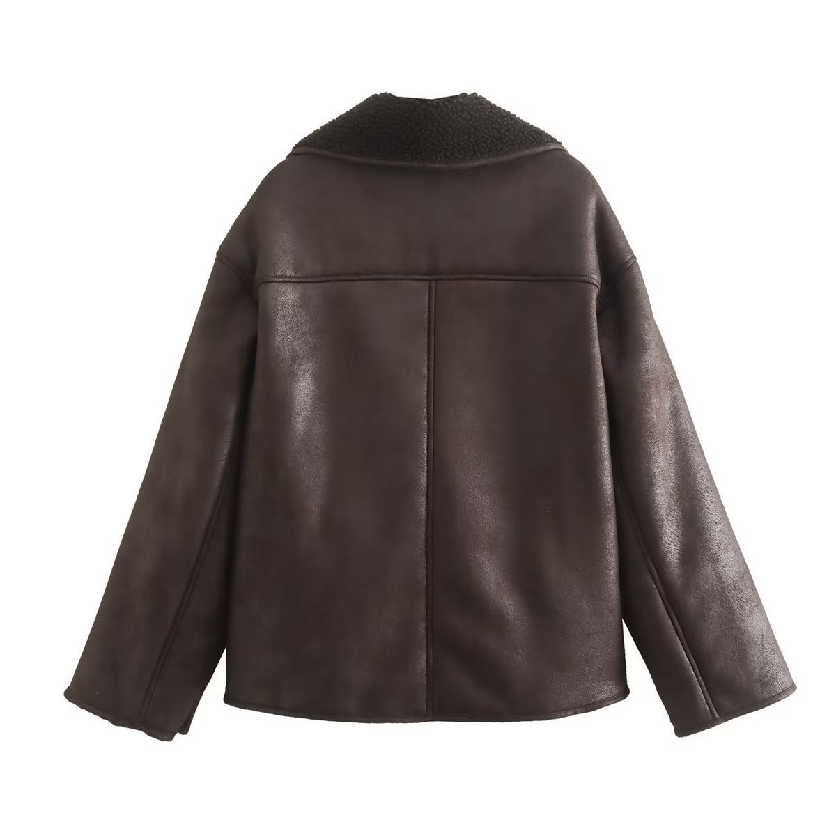국경 간 유럽과 미국 의류 가을, 겨울 새로운 느슨한 모피 올인원 따뜻한 재킷 옷깃 패션 트렌드 재킷