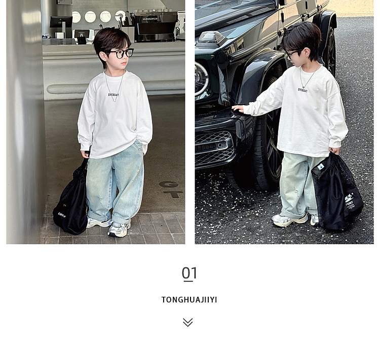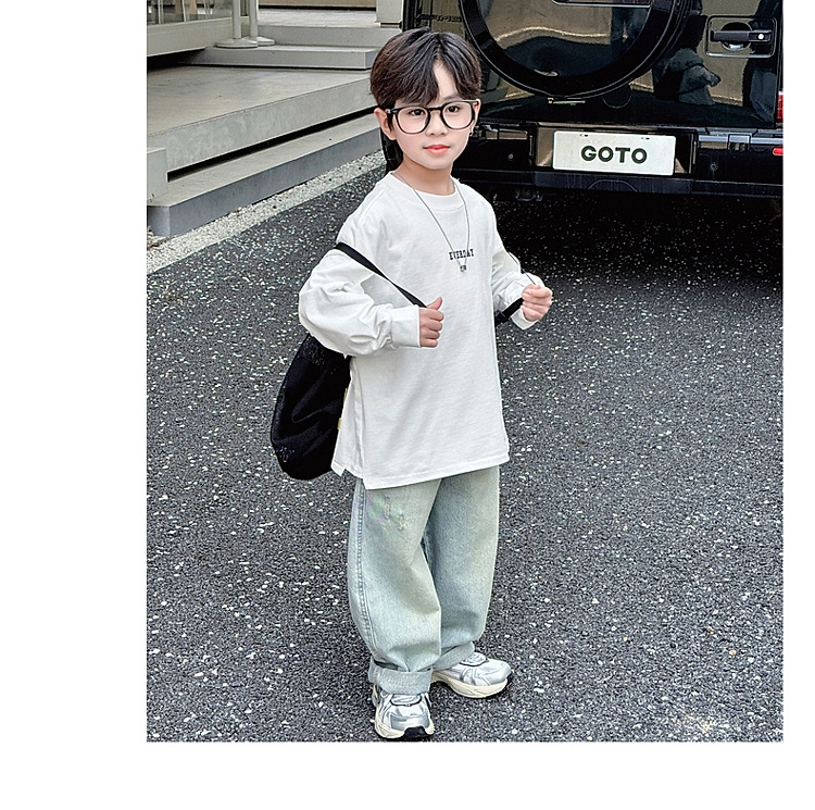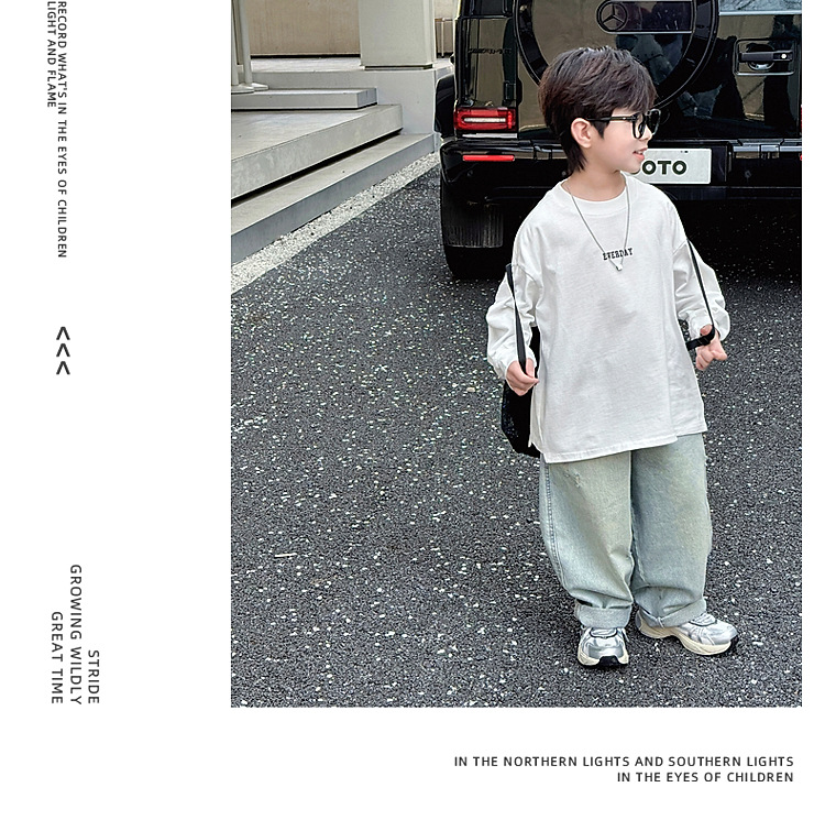 소년 긴팔 티셔츠 봄 2025 새로운 어린이 봄 백베이스 셔츠 소년 캐주얼 탑 봄과 가을스토어 가기