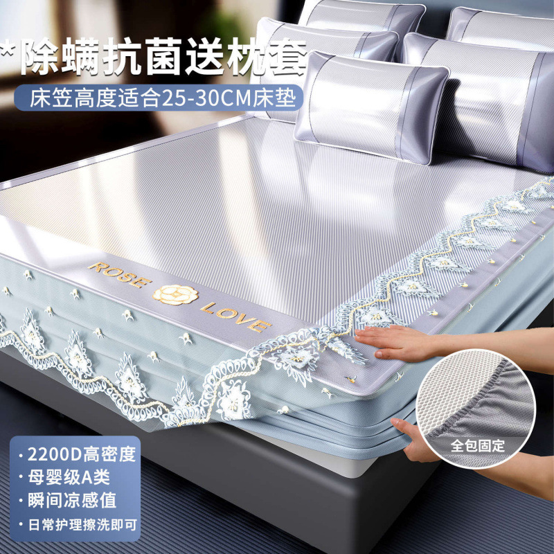 아이스 실크 매트 여름 침대 스커트 등나무 매트 브랜드 3 피스 세트 여름 침대 모자 매트스토어 가기