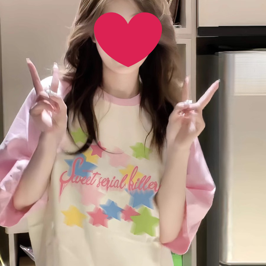 어깨 반팔 티셔츠 여성 여름 2025 새로운 프랑스 핑크 어깨 밀크 스타일 착용 작은 신선한 스위트 탑스토어 가기