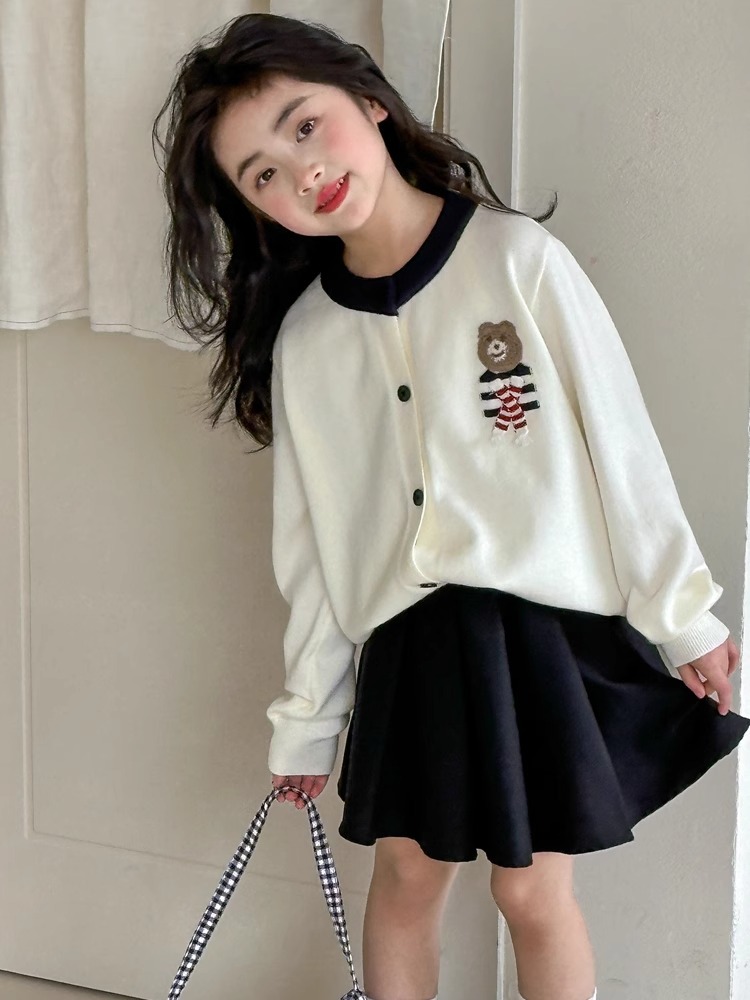 작은 붉은 물고기 소녀 봄 코트 2025 봄 새로운 학교 스타일 어린이 올매치 베어 탑 니트 카디건