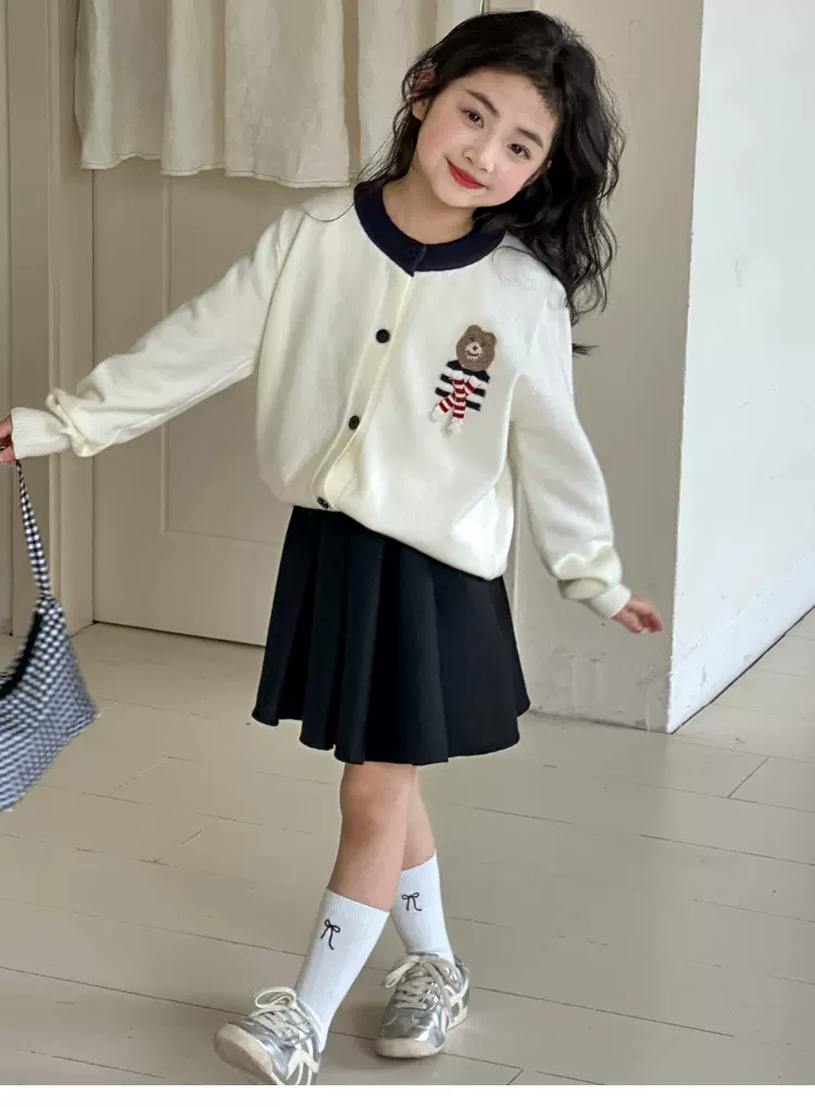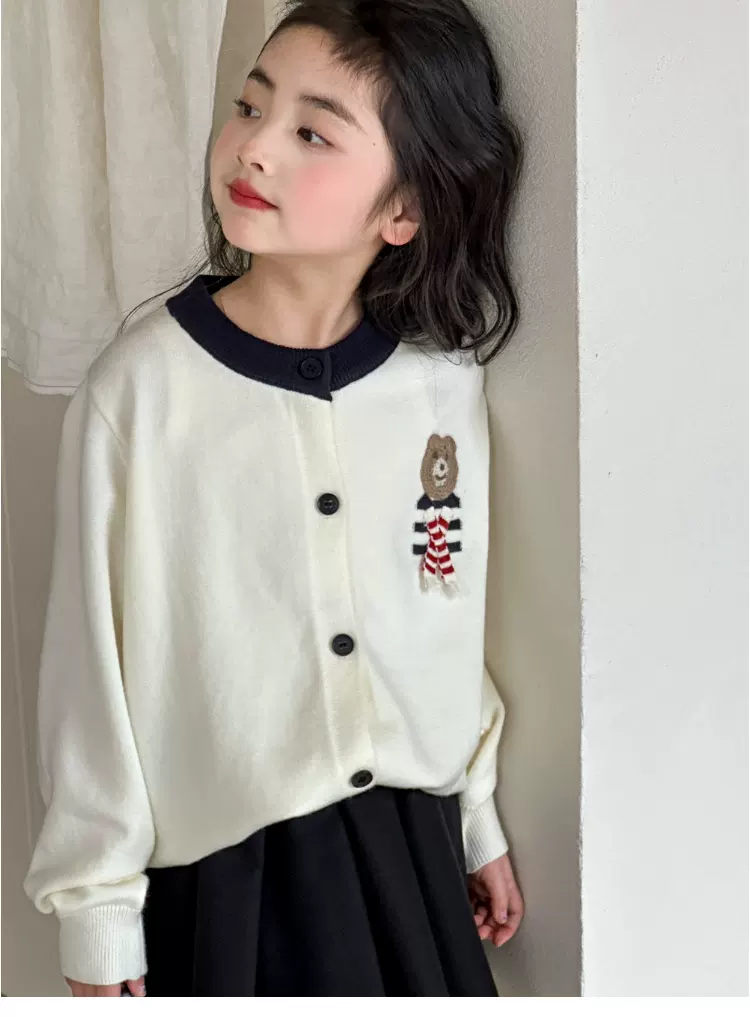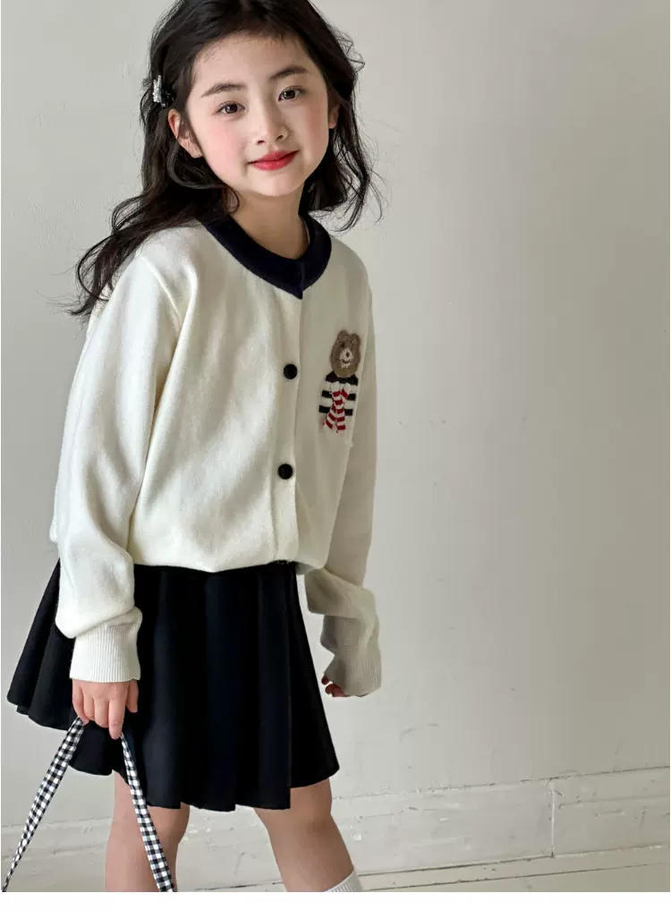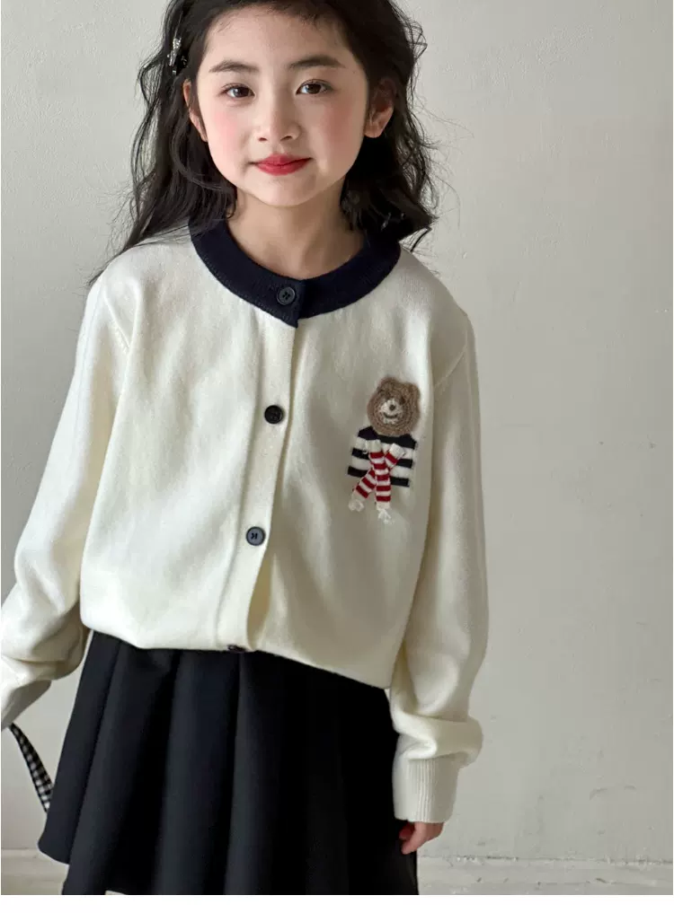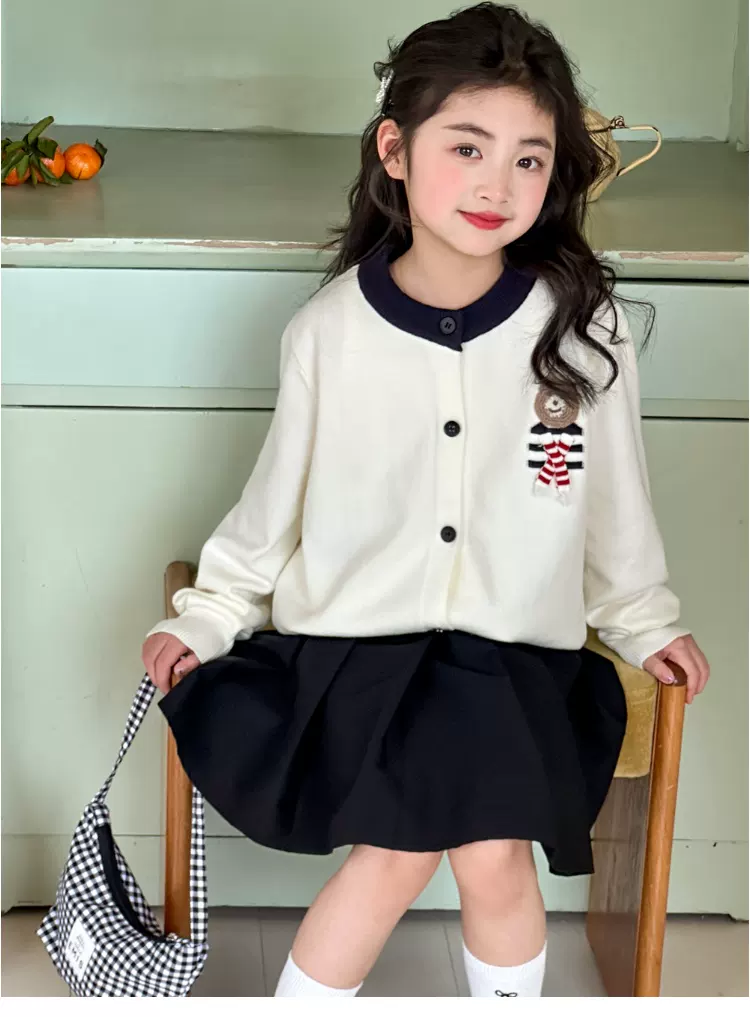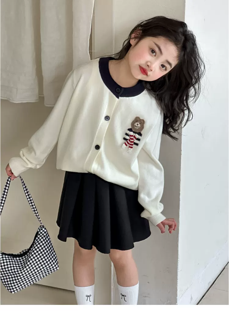 작은 붉은 물고기 소녀 봄 코트 2025 봄 새로운 학교 스타일 어린이 올매치 베어 탑 니트 카디건스토어 가기