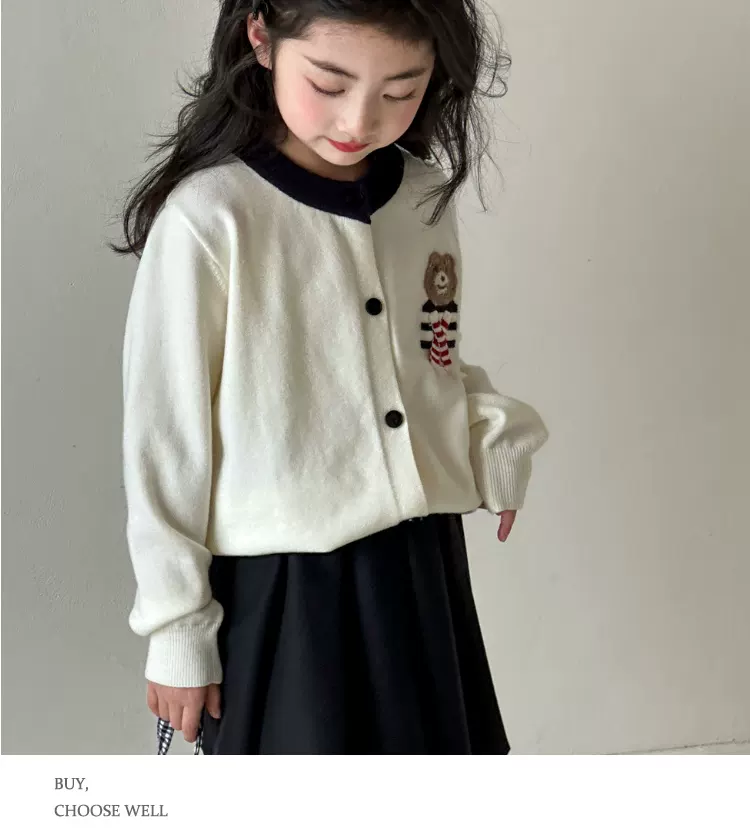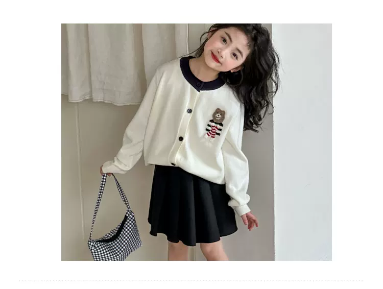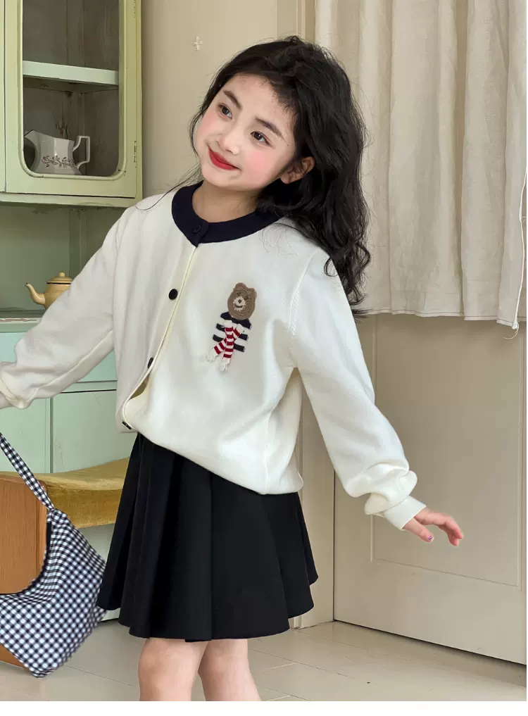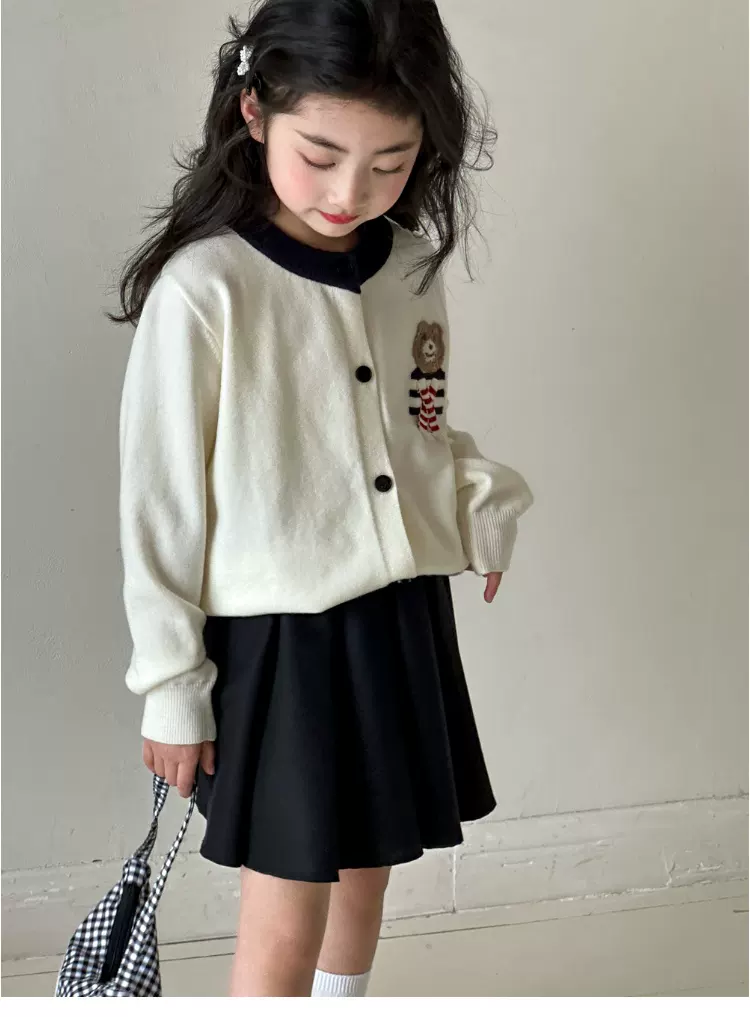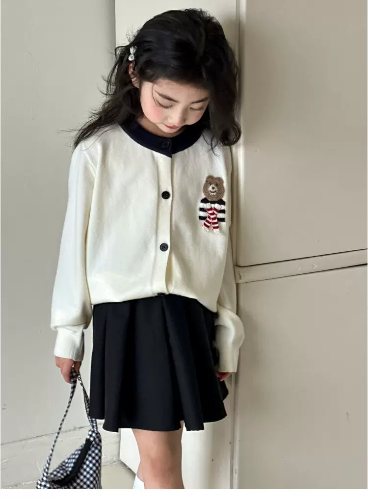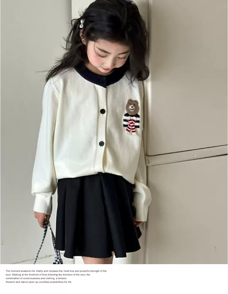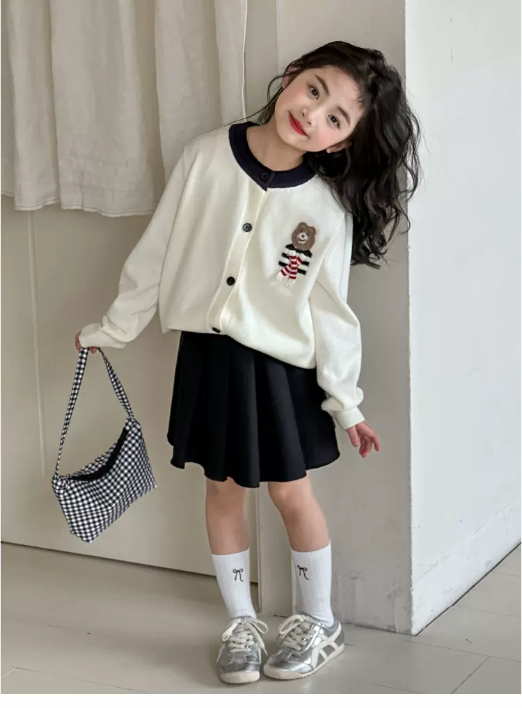 작은 붉은 물고기 소녀 봄 코트 2025 봄 새로운 학교 스타일 어린이 올매치 베어 탑 니트 카디건스토어 가기