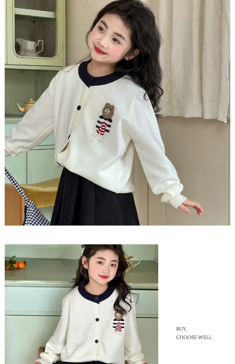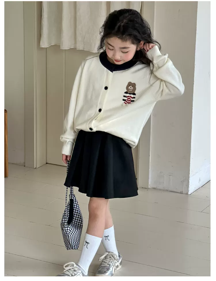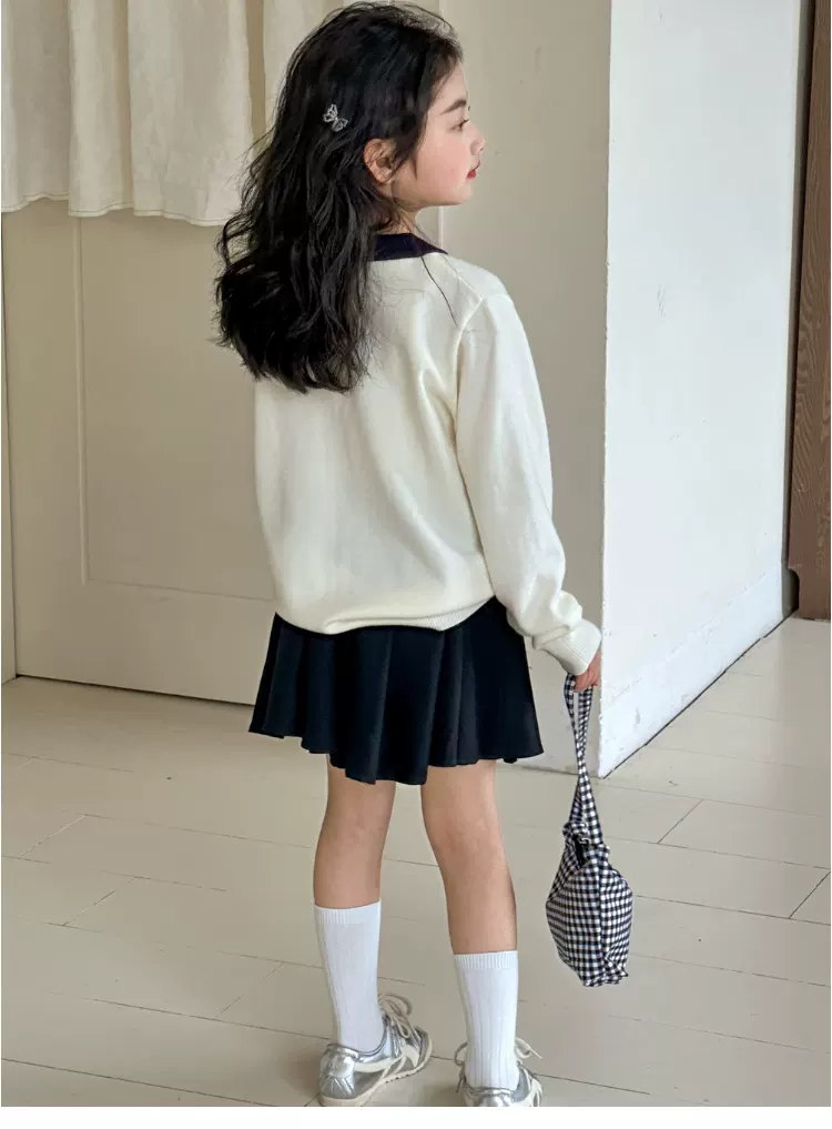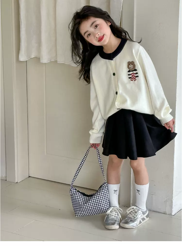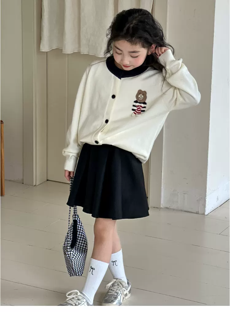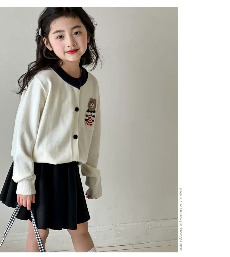 작은 붉은 물고기 소녀 봄 코트 2025 봄 새로운 학교 스타일 어린이 올매치 베어 탑 니트 카디건스토어 가기