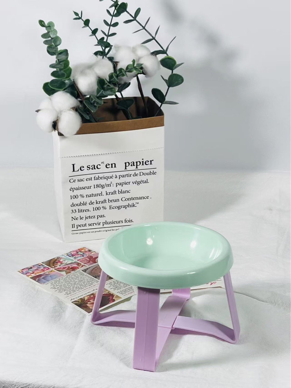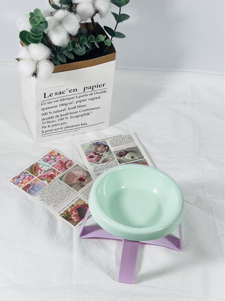 • 매트한 민트그린 그릇 + 보라색 스탠드