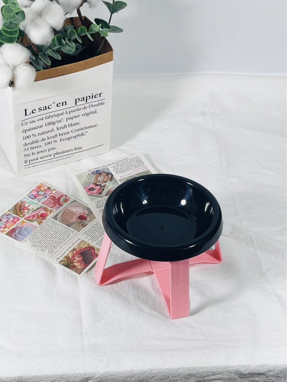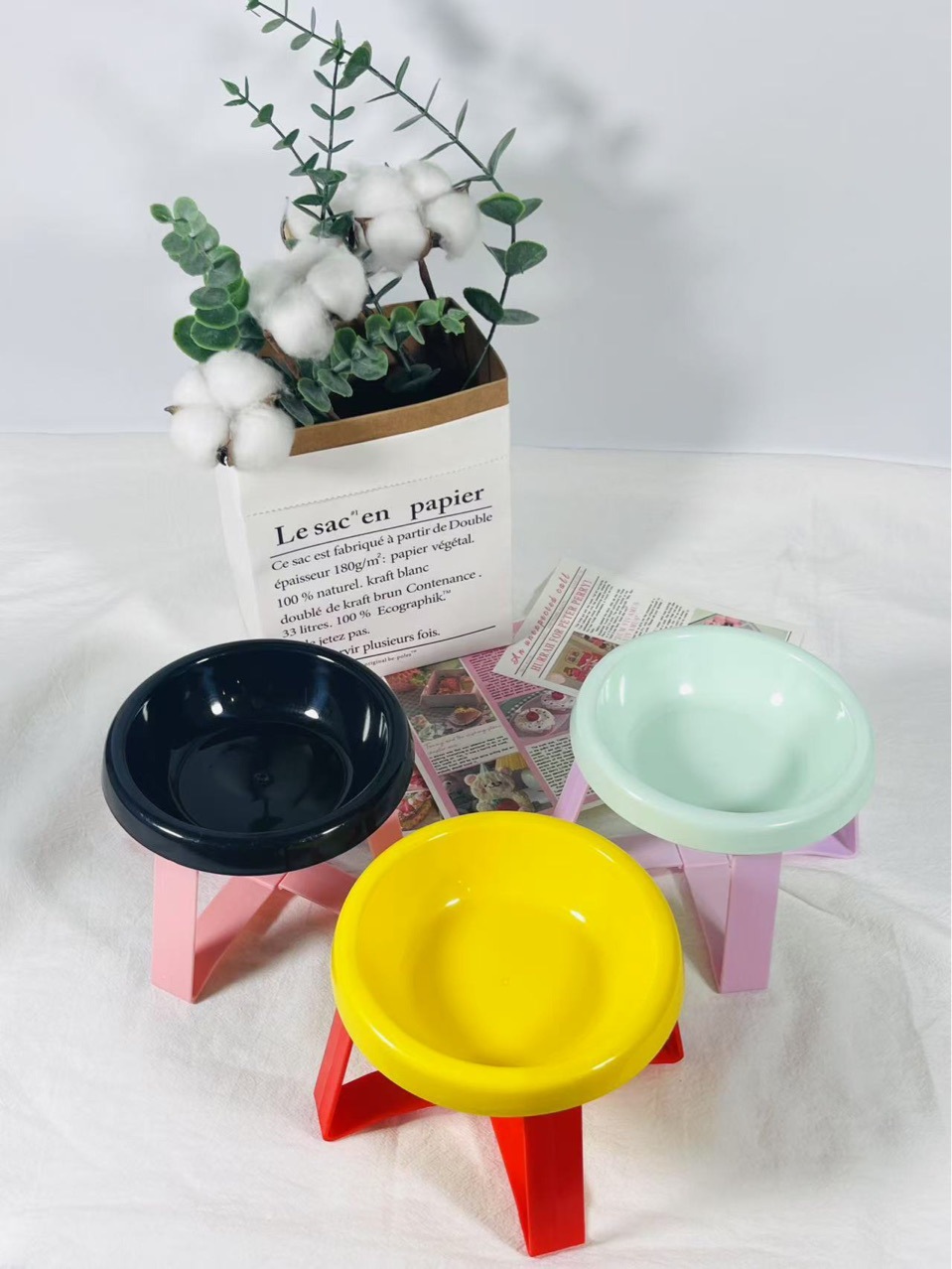 페콜로 목 보호 높은 개 고양이 음식 그릇 마시는 그릇 세라믹 고양이 그릇 검은 턱 보호 애완 동물 그릇 비행 접시 그릇