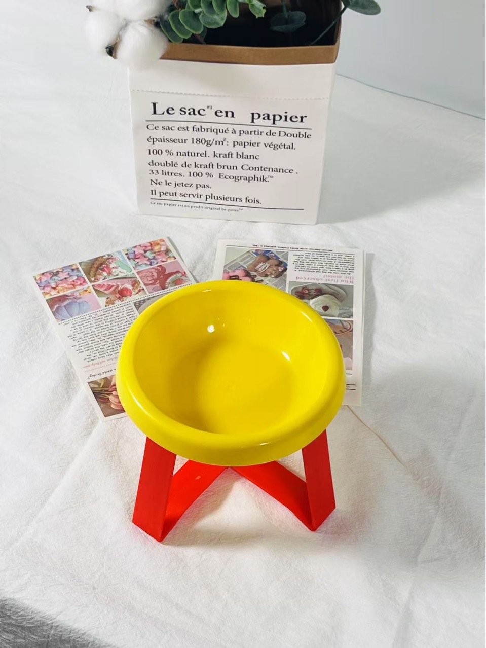 • 밝은 노란색 그릇 + 빨간색 선반