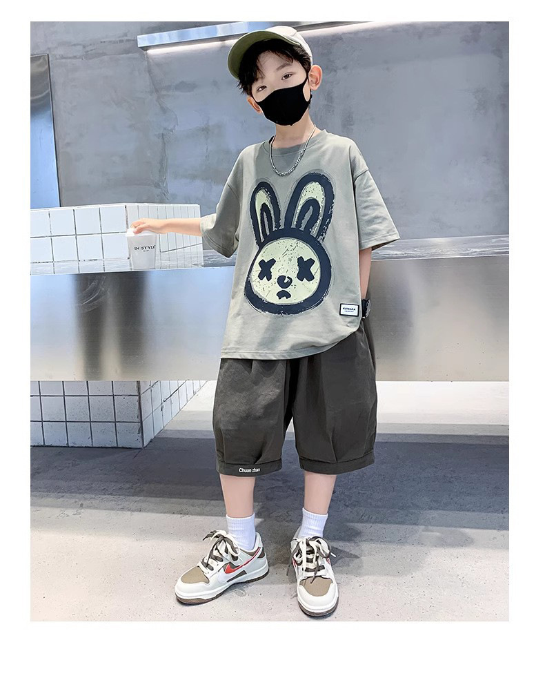 25 여름 어린이 만화 프린트 반팔 반바지 중대형 소년을위한 투피스 세트, 트렌디하고 멋진 루즈 캐주얼 슈트