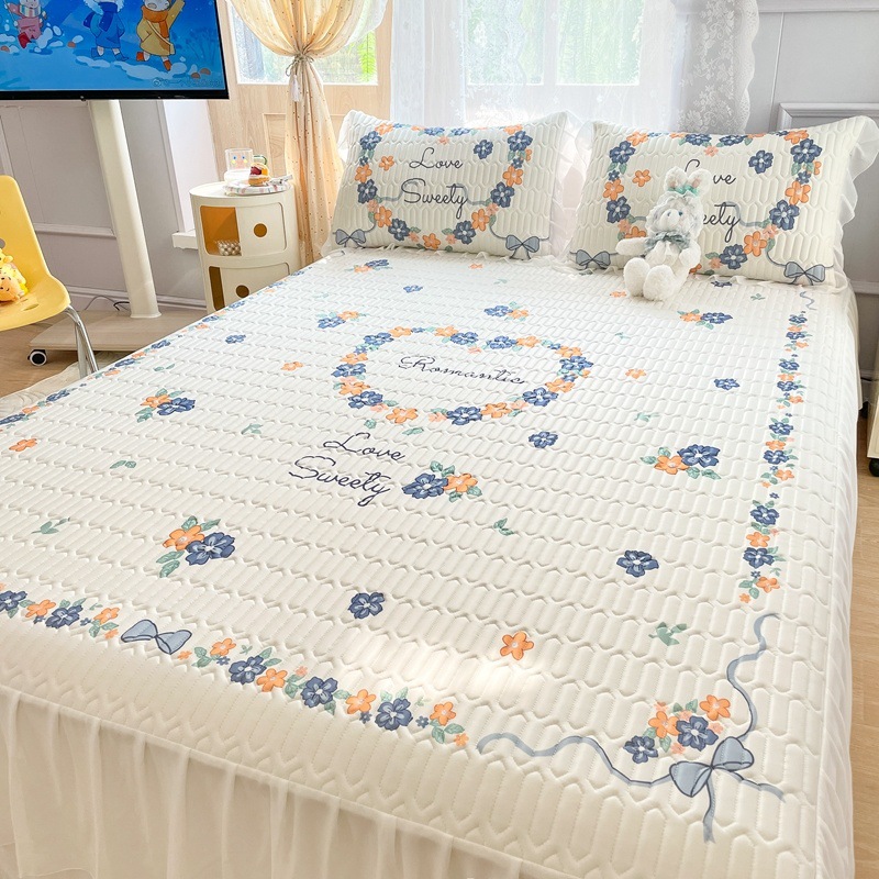 공주풍 침대 스커트 라텍스 매트 3종 세트 여름 얼음 실크 에어컨 매트 세탁 가능한 접이식 침대 커버 소프트 매트