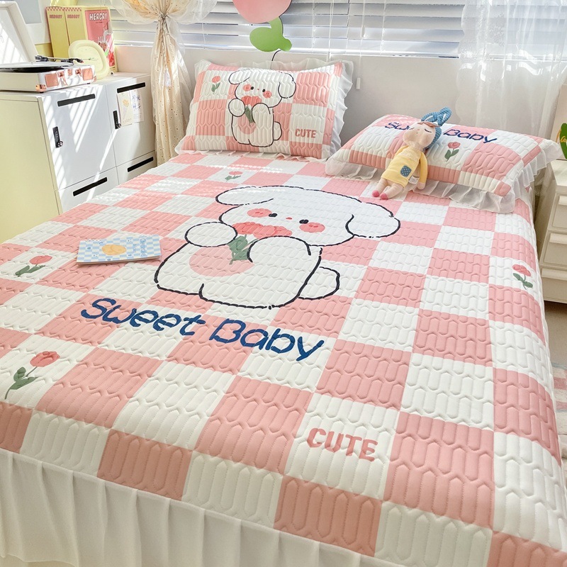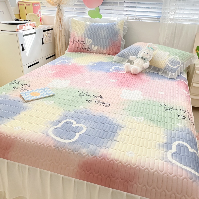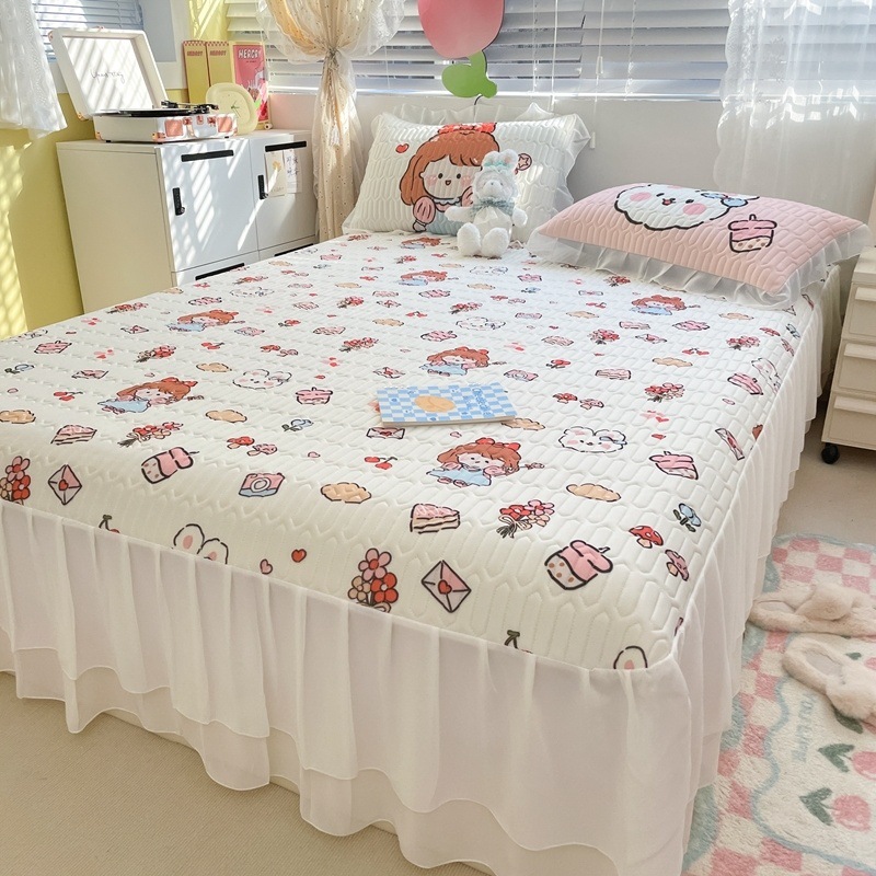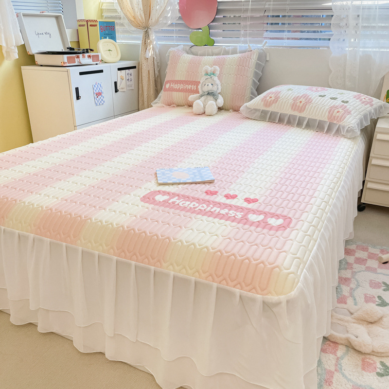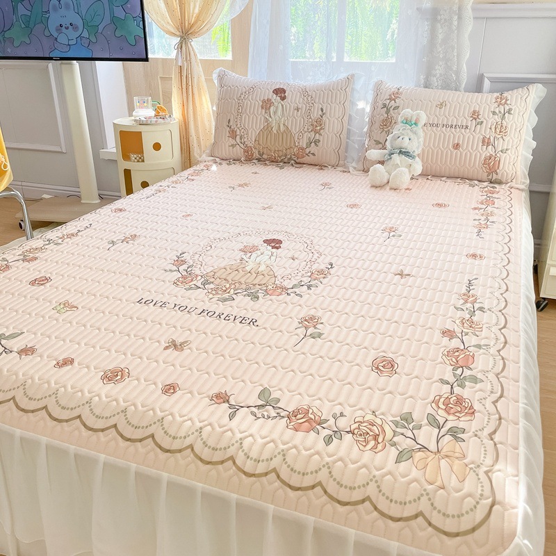 공주풍 침대 스커트 라텍스 매트 3종 세트 여름 얼음 실크 에어컨 매트 세탁 가능한 접이식 침대 커버 소프트 매트스토어 가기