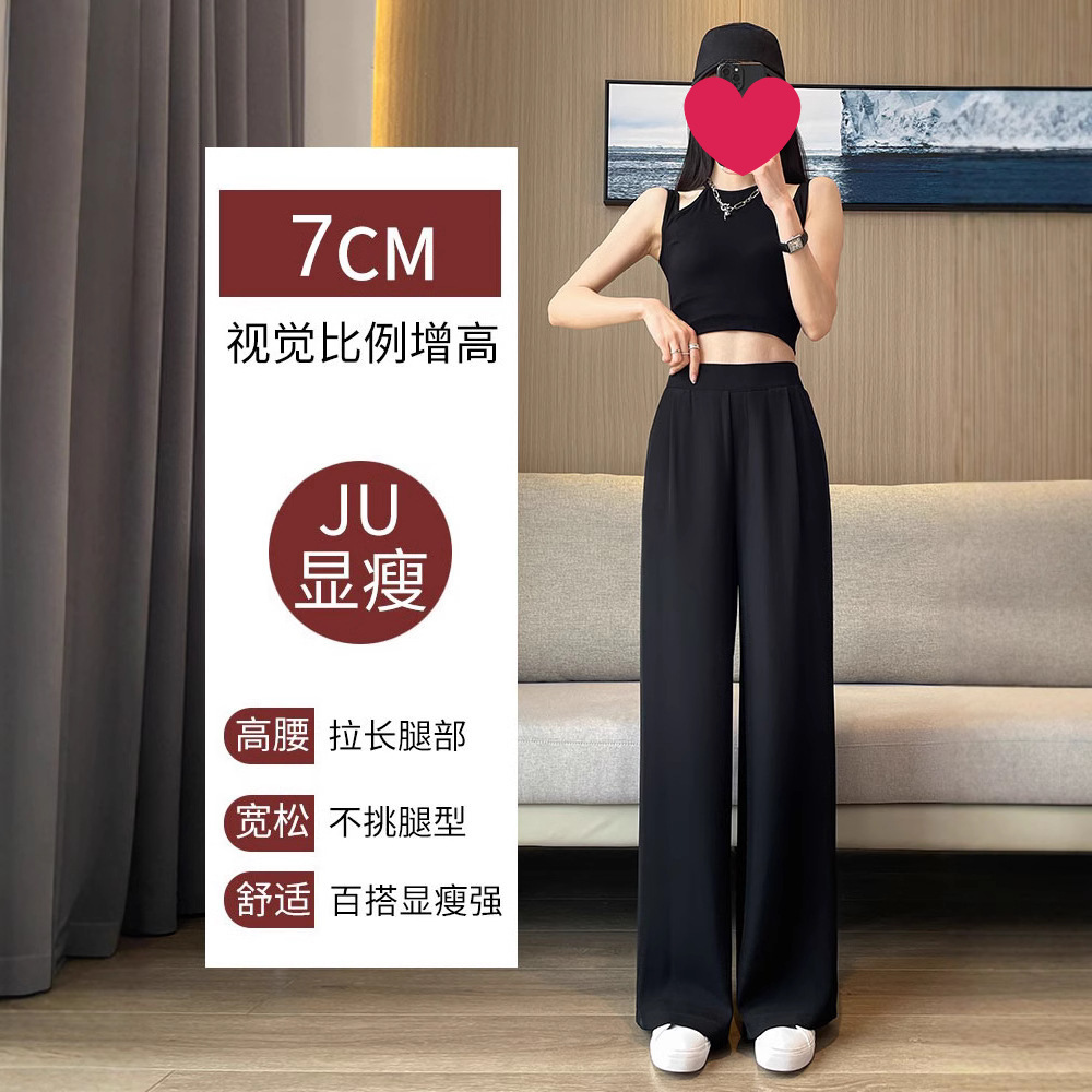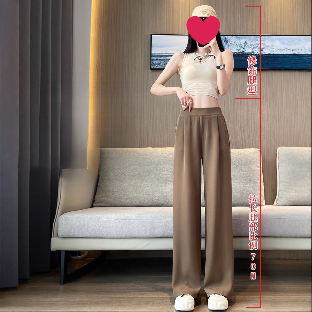 여성용 2025 바지 여름 신작 한국식 하이 웨이스트 더미 와이드 레그 팬츠 캐주얼 좁은 길이 스트레이트 팬츠스토어 가기
