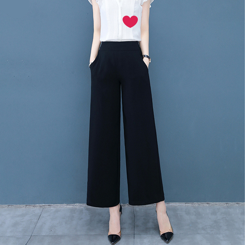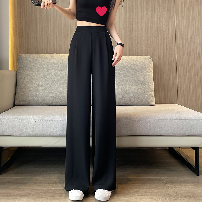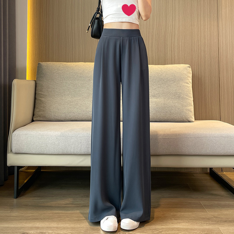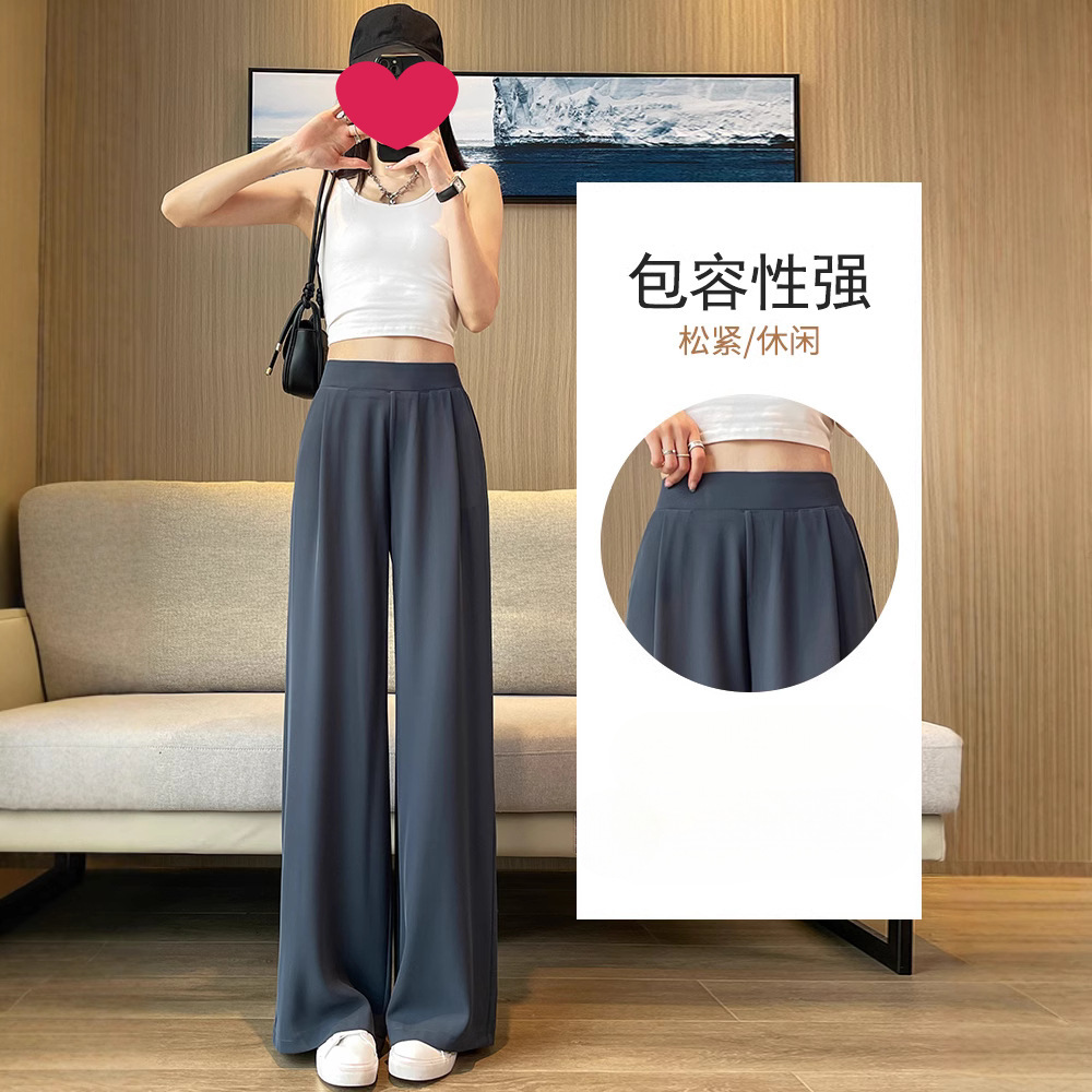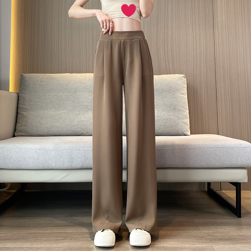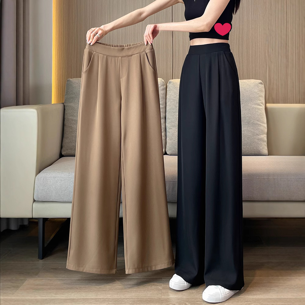 여성용 2025 바지 여름 신작 한국식 하이 웨이스트 더미 와이드 레그 팬츠 캐주얼 좁은 길이 스트레이트 팬츠