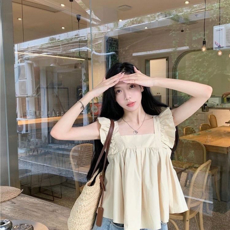 여름 달콤한 나이 감소 부드러운 스타일 작은 착용 세트 여성의 2025 여름 새로운 비행 소매 셔츠스토어 가기
