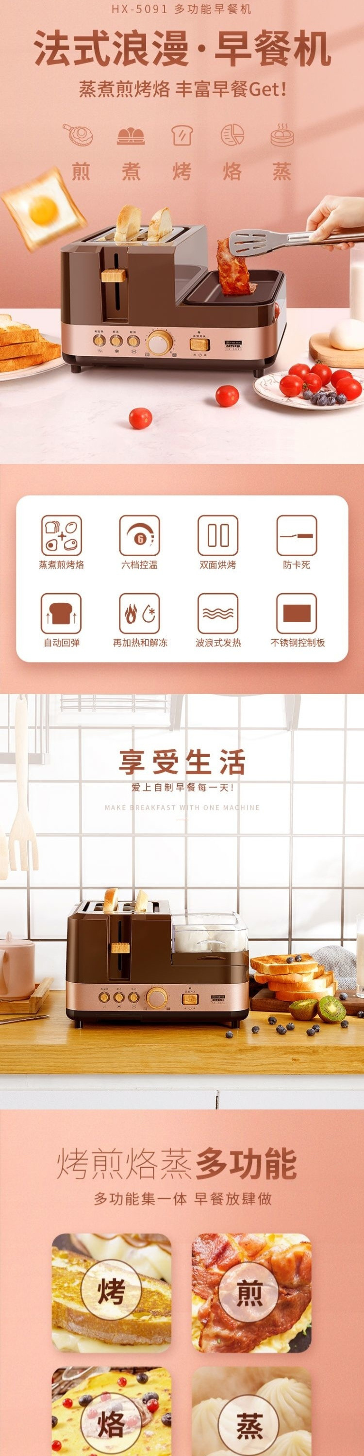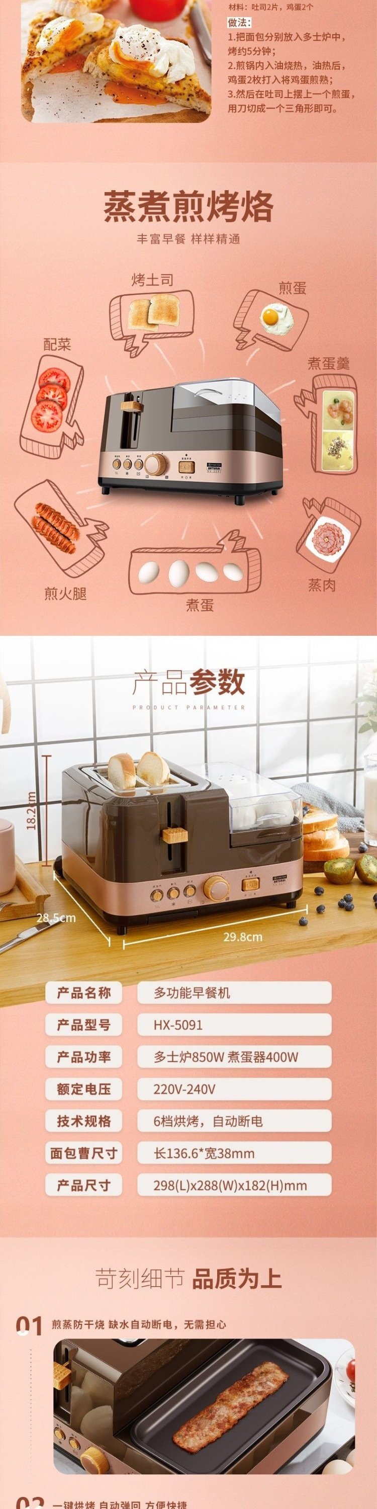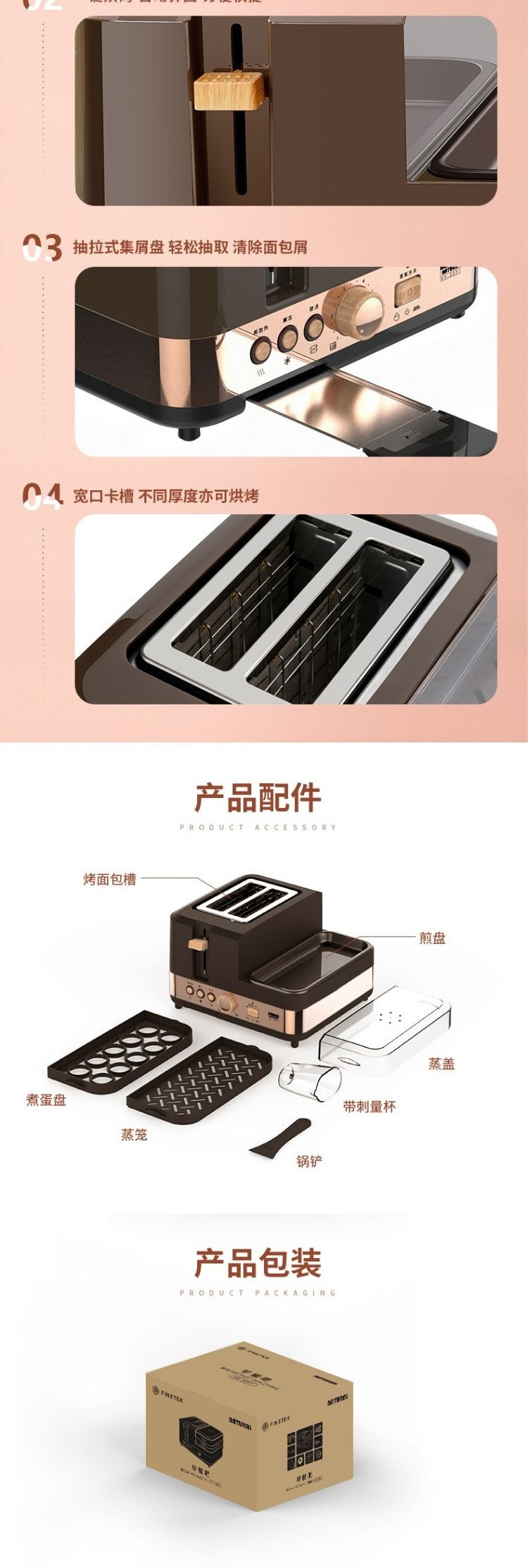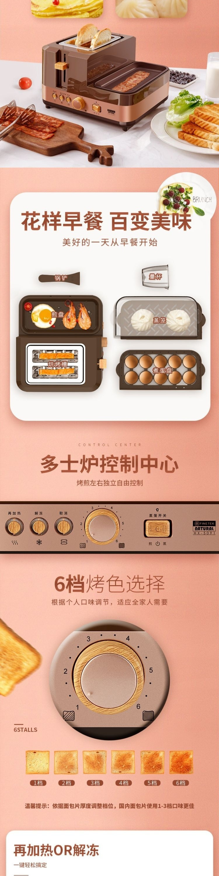 Finetek 프랑스 아침 식사 기계 다기능 가정용 4-in-one 게으른 토스트 샌드위치 기계 소형 유물