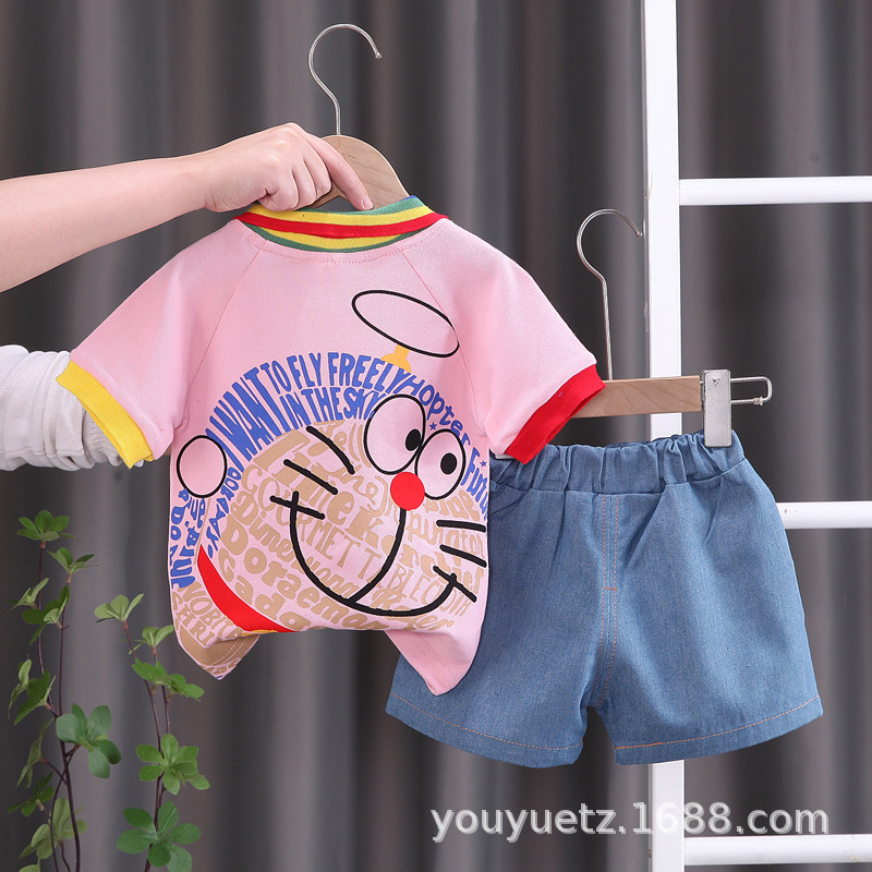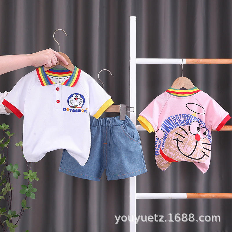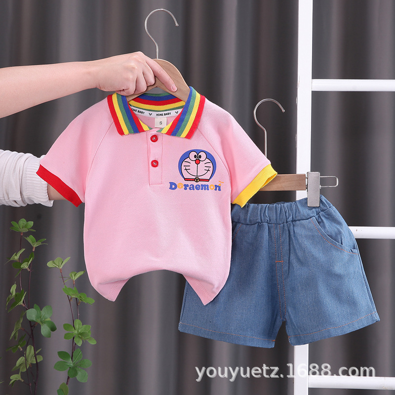 외국 무역 남아용 폴로 셔츠 2025 신상 아동복 반팔 만화 캐릭터 1234세 여아 여름 세트 도매