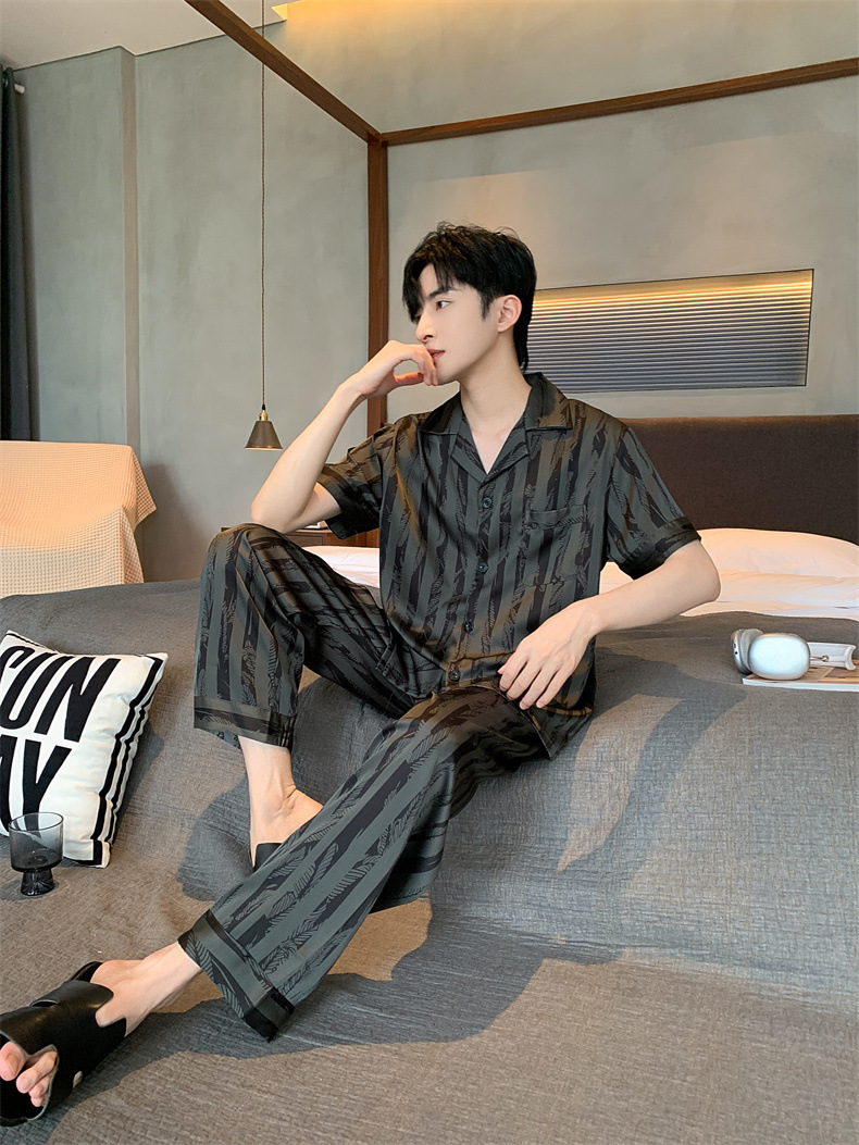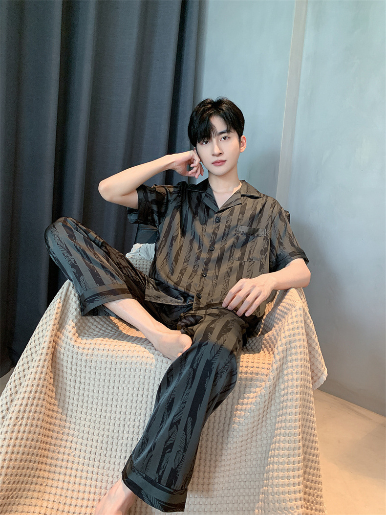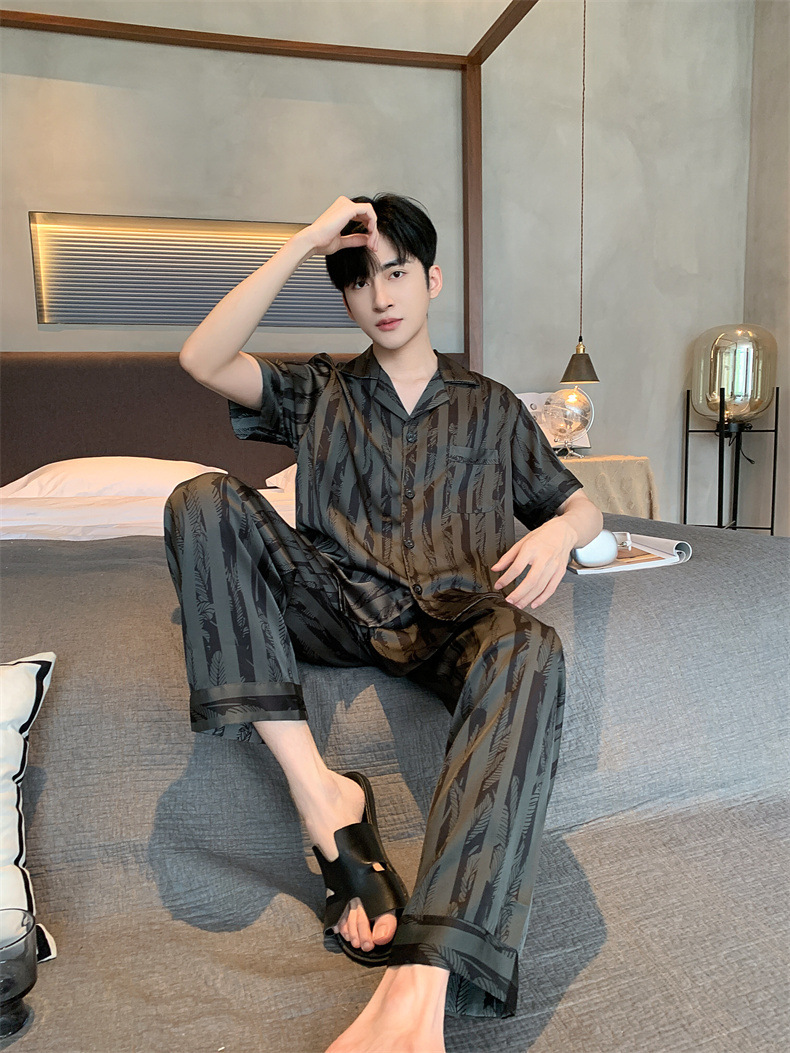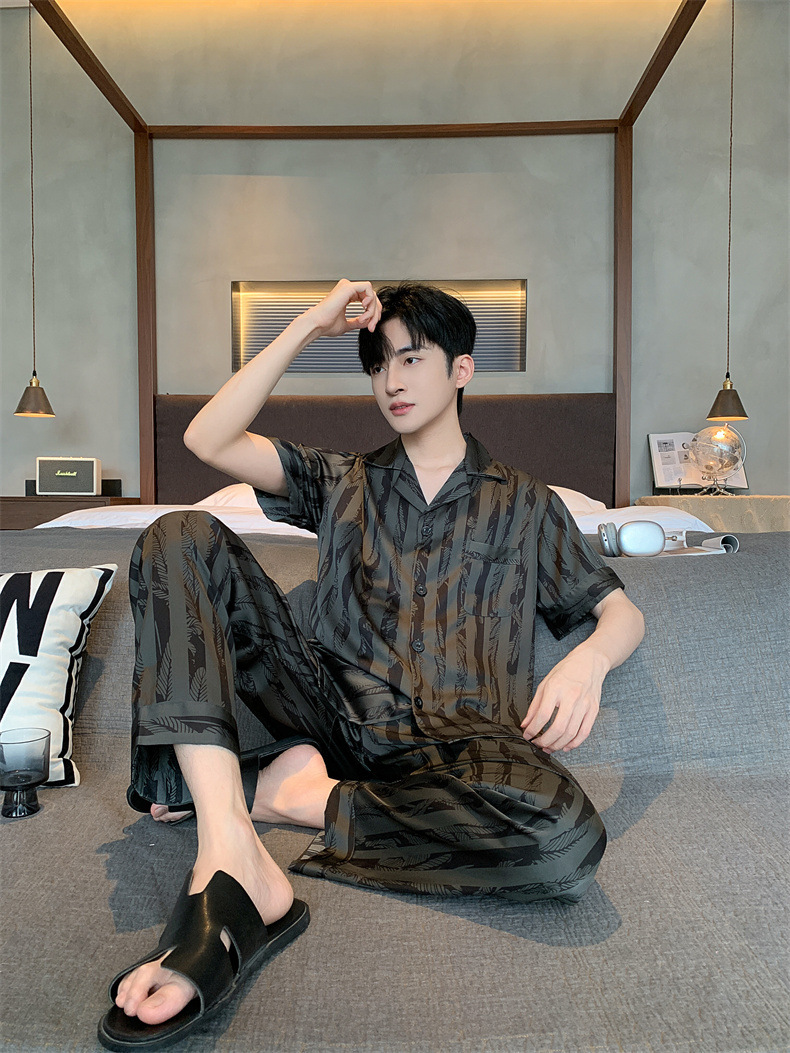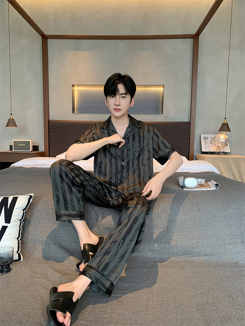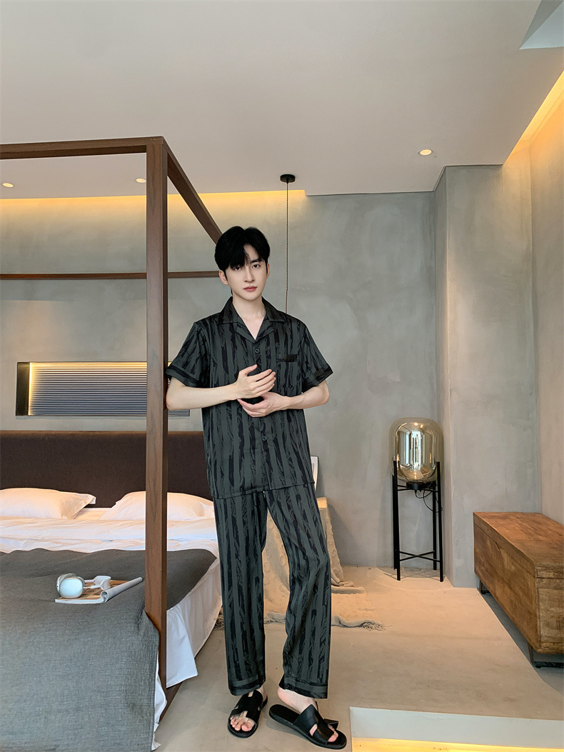 2024夏季高级感网红风男士睡衣夏季长裤短袖冰丝两件套家居服套装