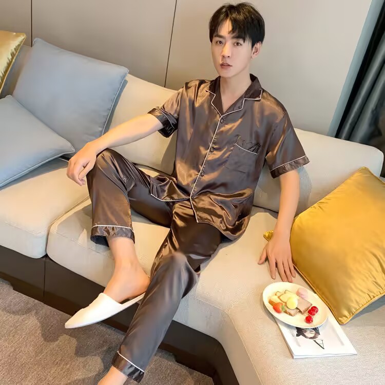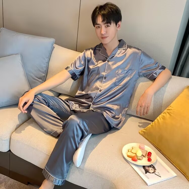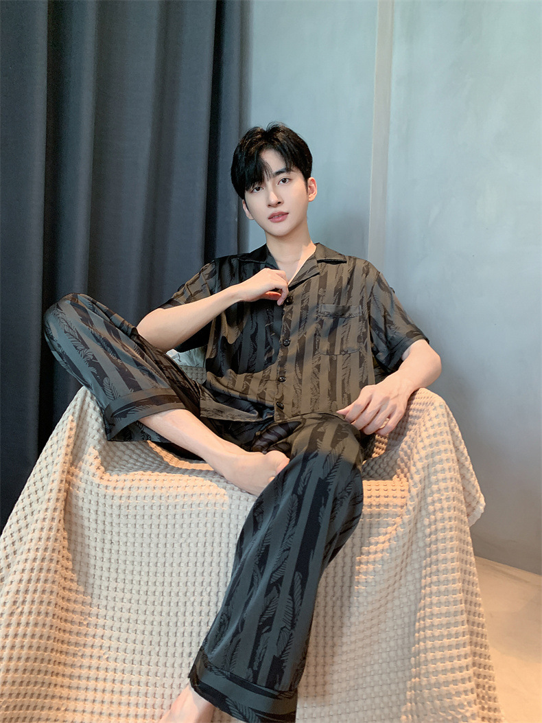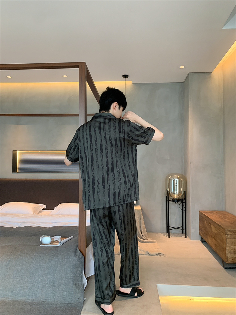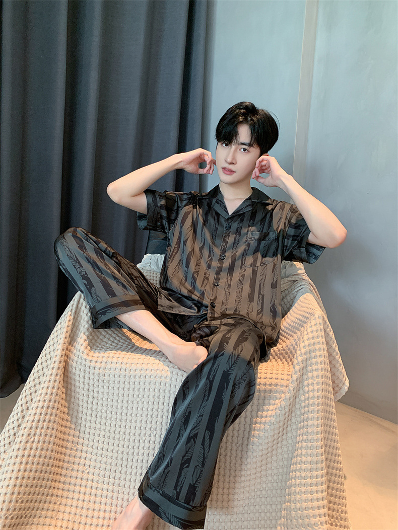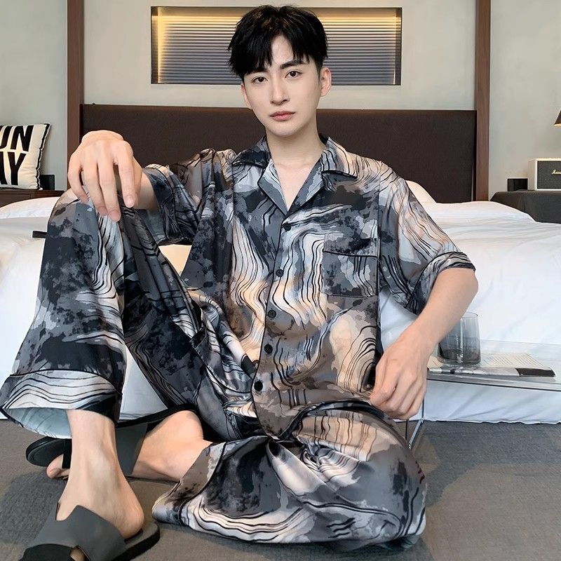 2024夏季高级感网红风男士睡衣夏季长裤短袖冰丝两件套家居服套装