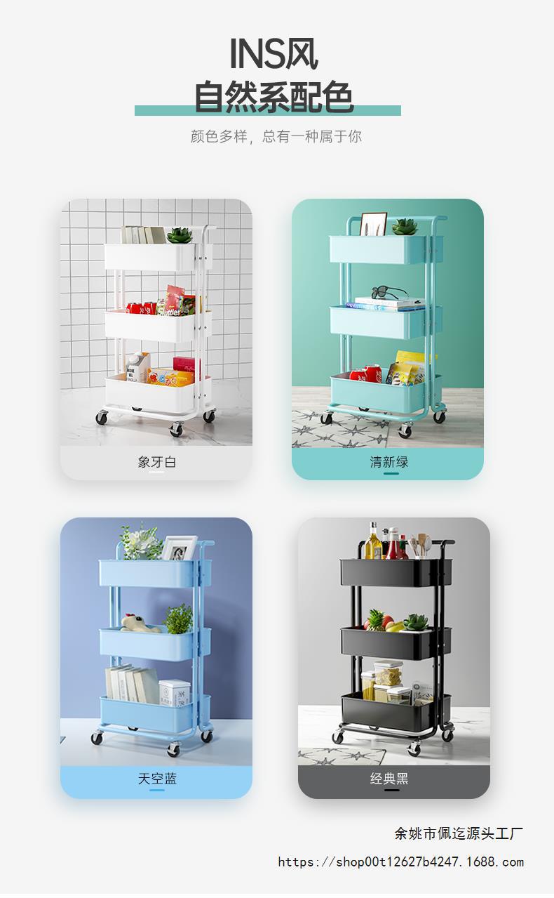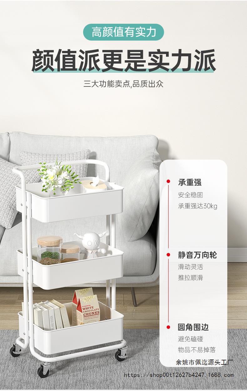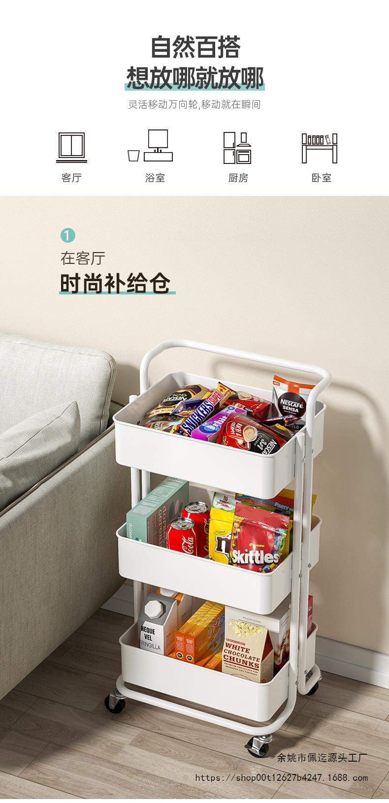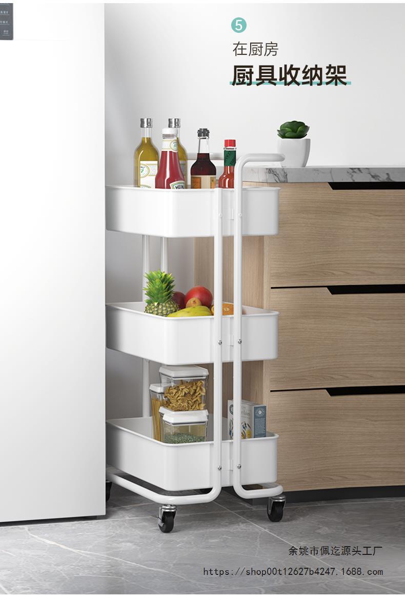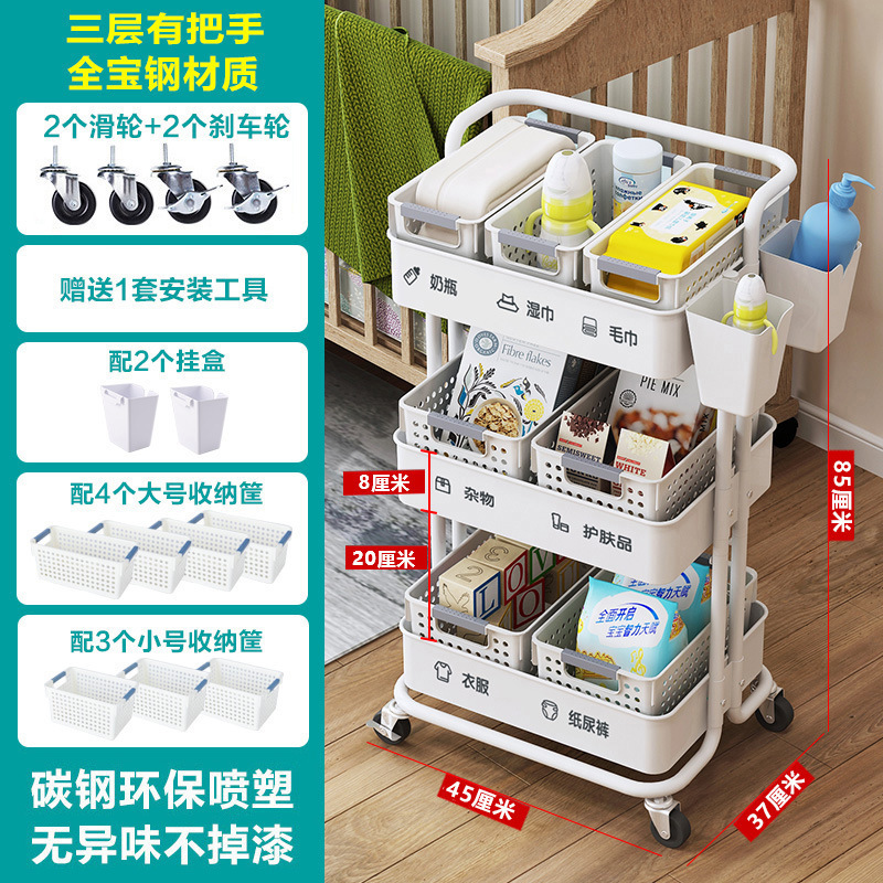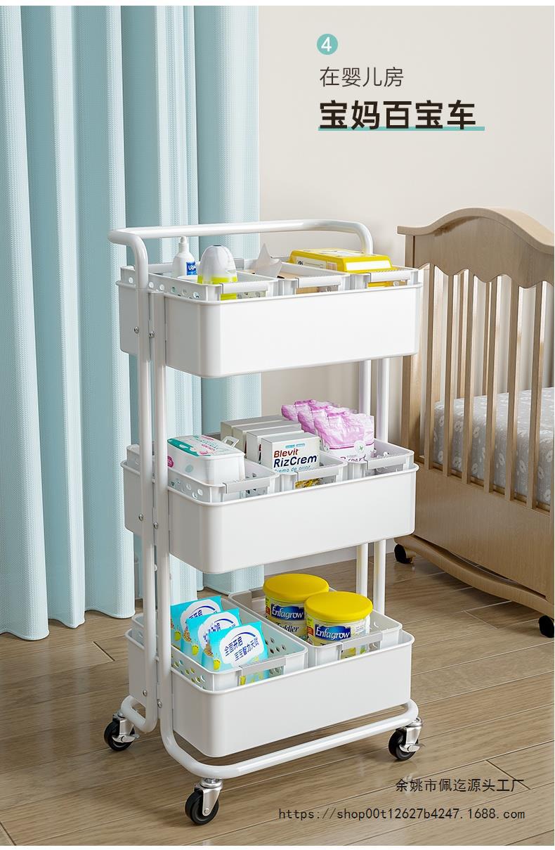 바닥에서 천장까지 이어지는 다층 트롤리 보관 랙 주방 이동식 아기 용품 신생아 보관 랙 스낵 보관 랙