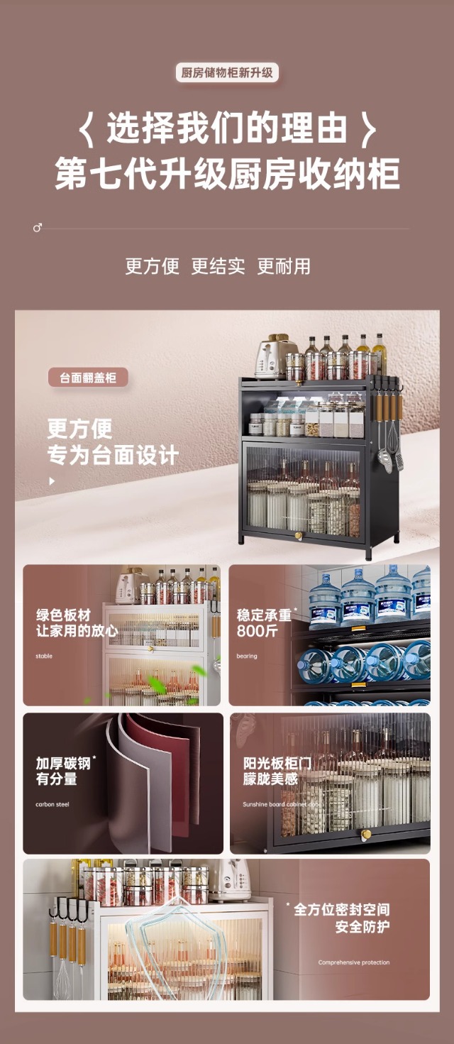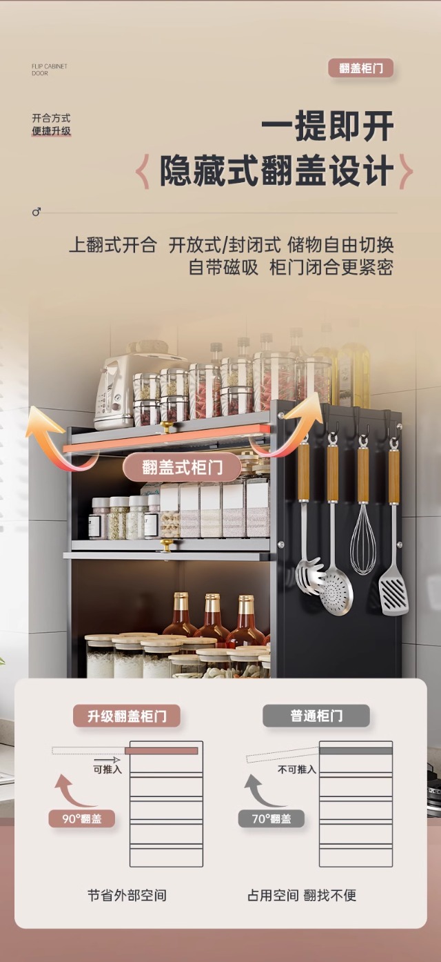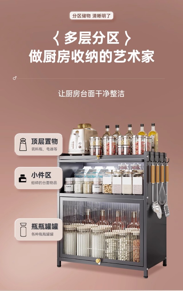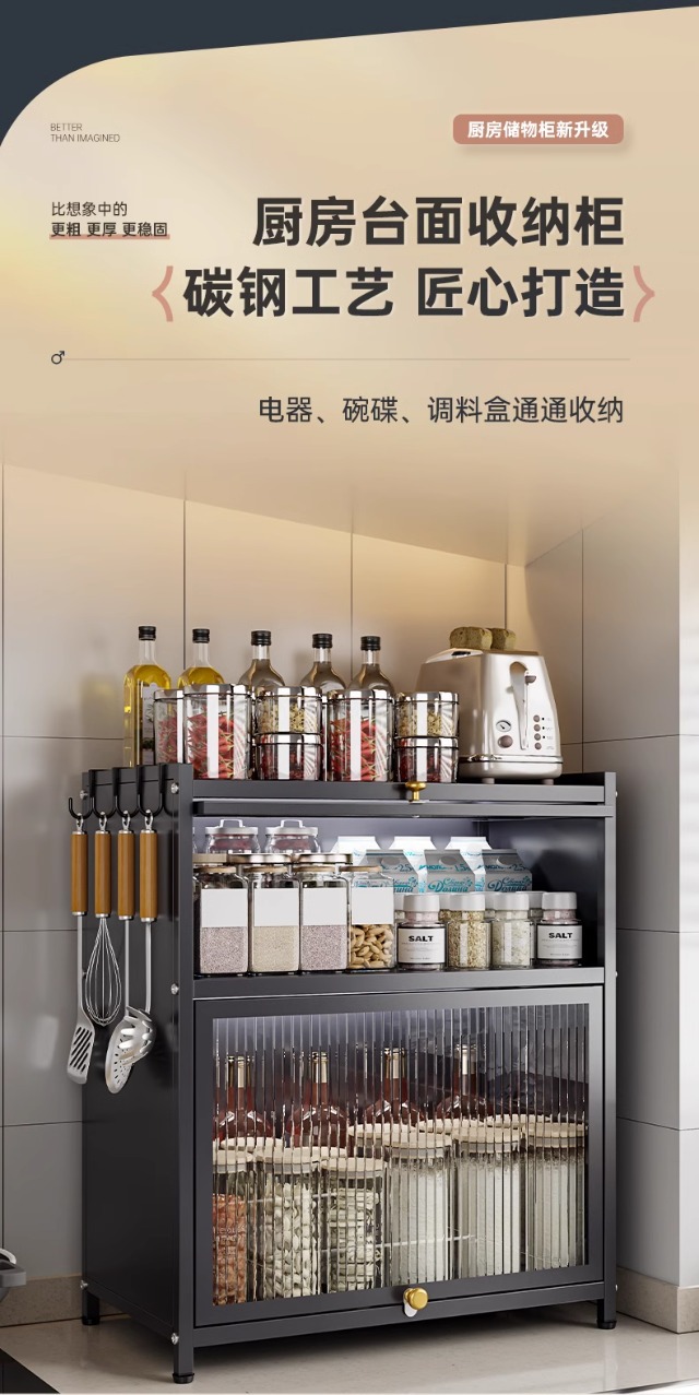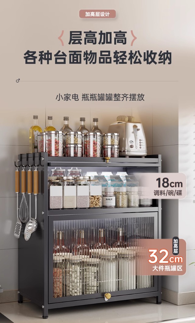 주방 조리대 조미료 저장 랙 작은 찬장 강철 방진 조미료 랙 다기능 가정용 저장 캐비닛