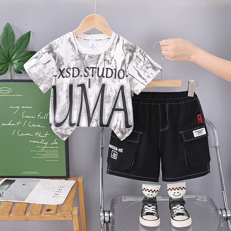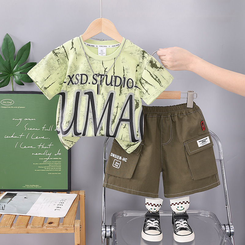 어린이 아기 여름 옷, 반팔, 잘 생긴 소년 스포츠 스타일 반바지, 여름 정장 2025 새로운 여름 스타일스토어 가기