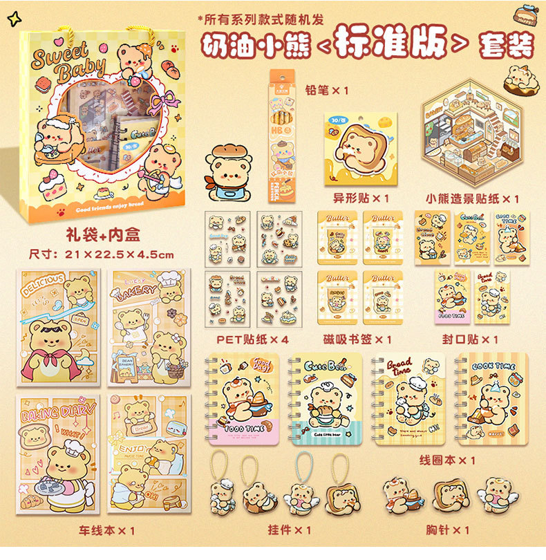 크림 곰 문구 세트 만화 시리즈 학생 문구 선물 가방 귀여운 문구 선물 가방 생일 선물 가방
