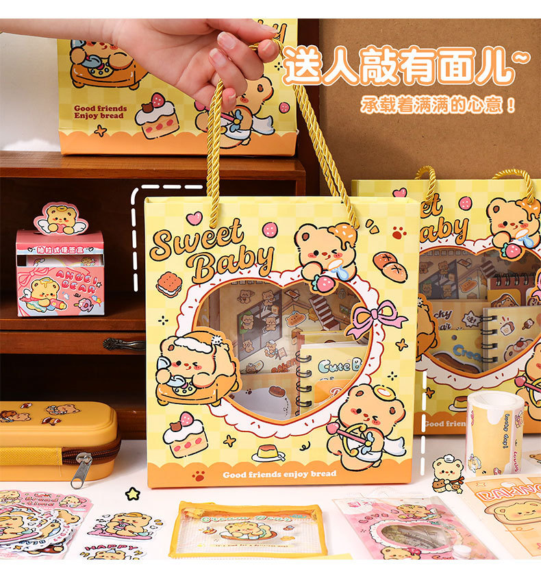 크림 곰 문구 세트 만화 시리즈 학생 문구 선물 가방 귀여운 문구 선물 가방 생일 선물 가방스토어 가기