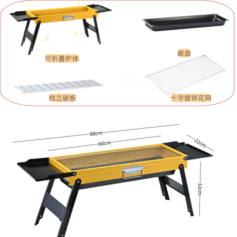 야외 캠핑 여행 바베큐 숯불 바베큐 스토브 가정용 편리한 접이식 두꺼운 바베큐 그릴 야외 그릴