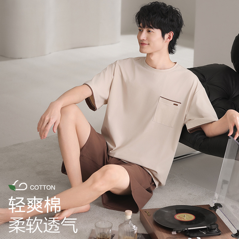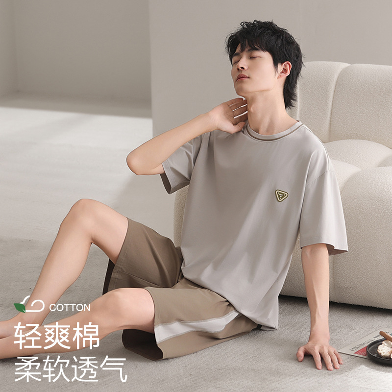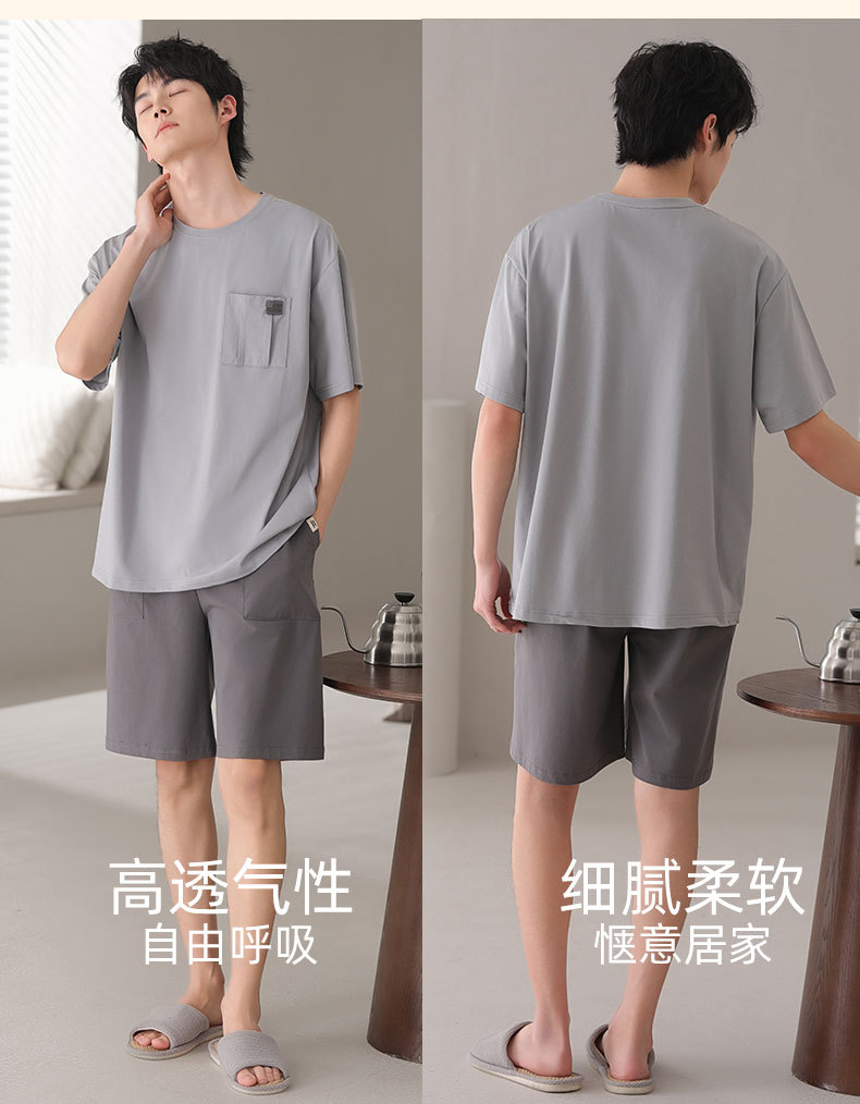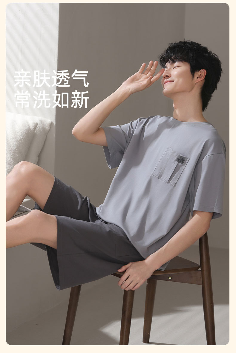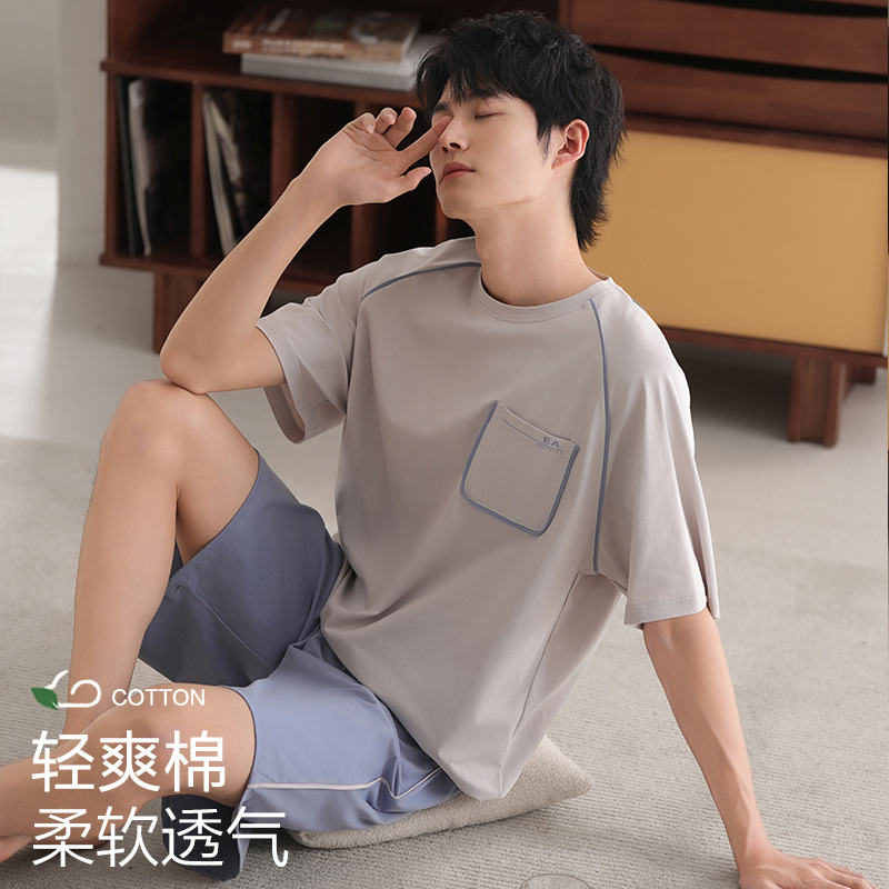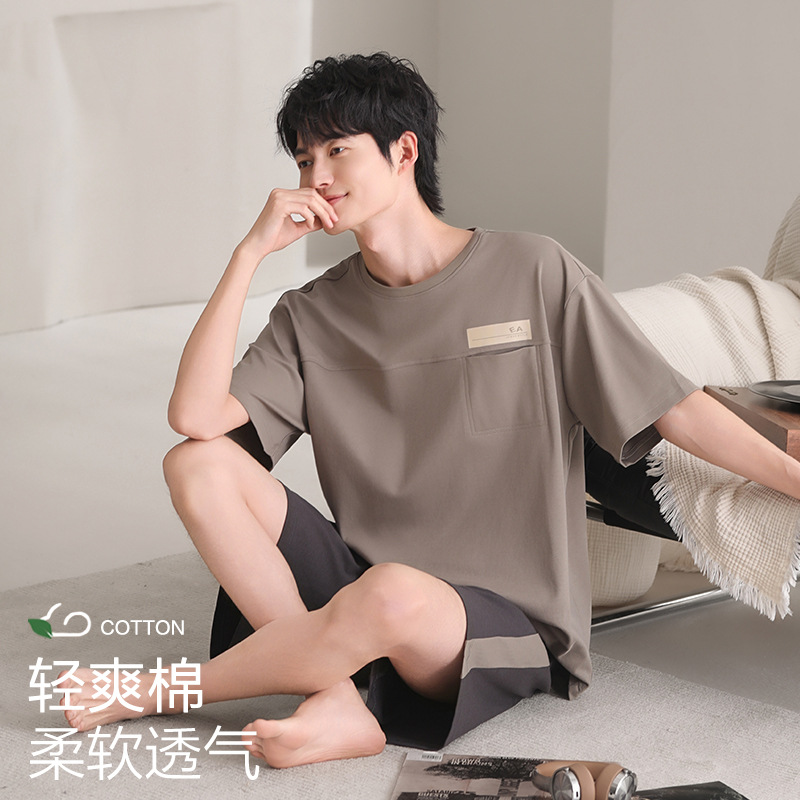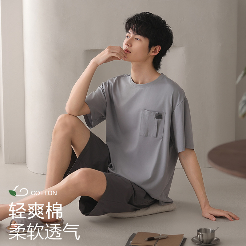 남성용 잠옷, 반팔 여름 면 양복, 얇고 부드럽고 통기성이 좋으며 캐주얼하고 루즈하며 가정복으로 착용 가능