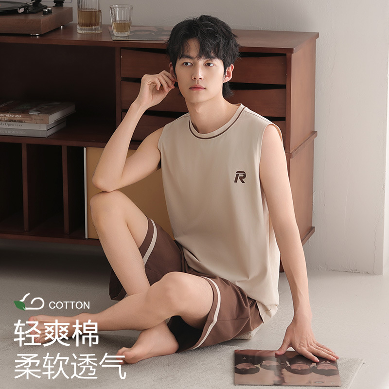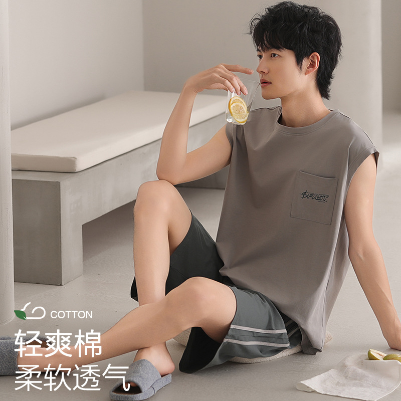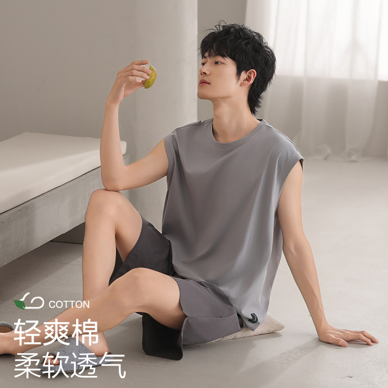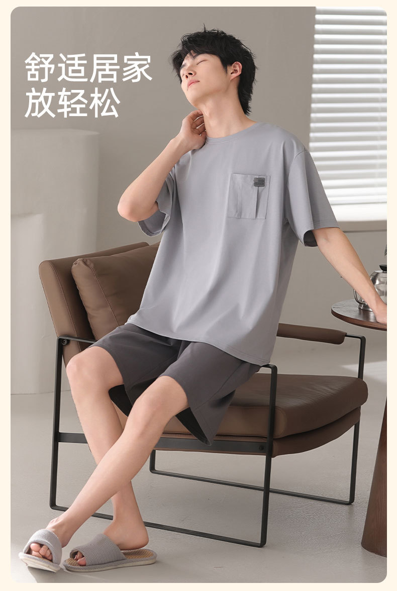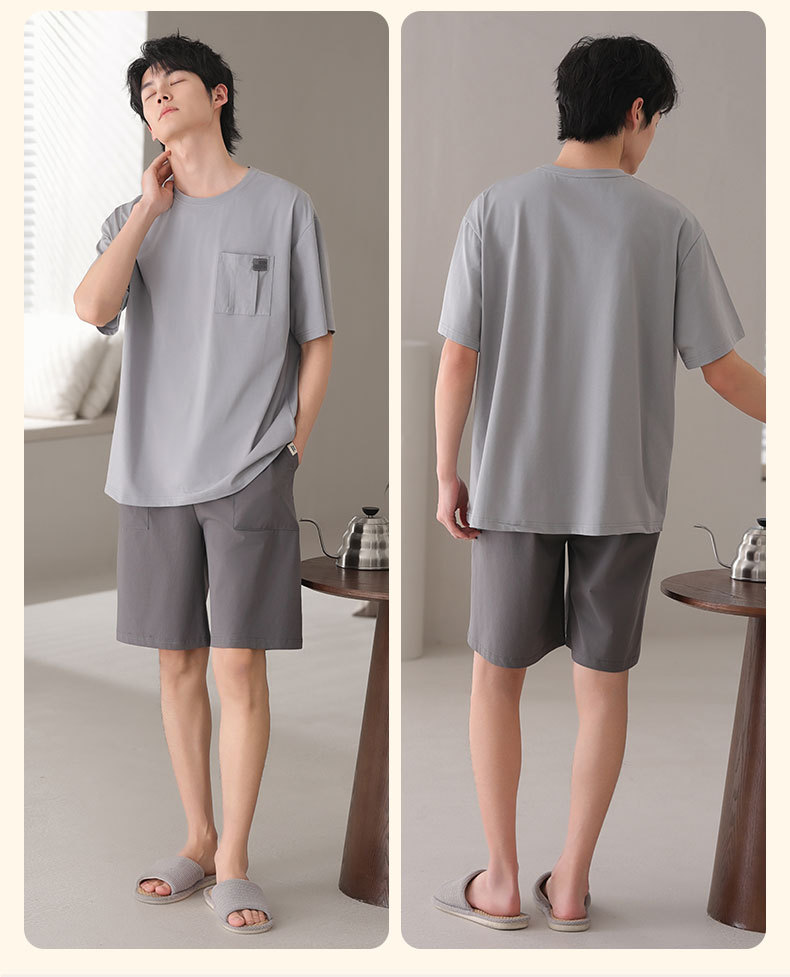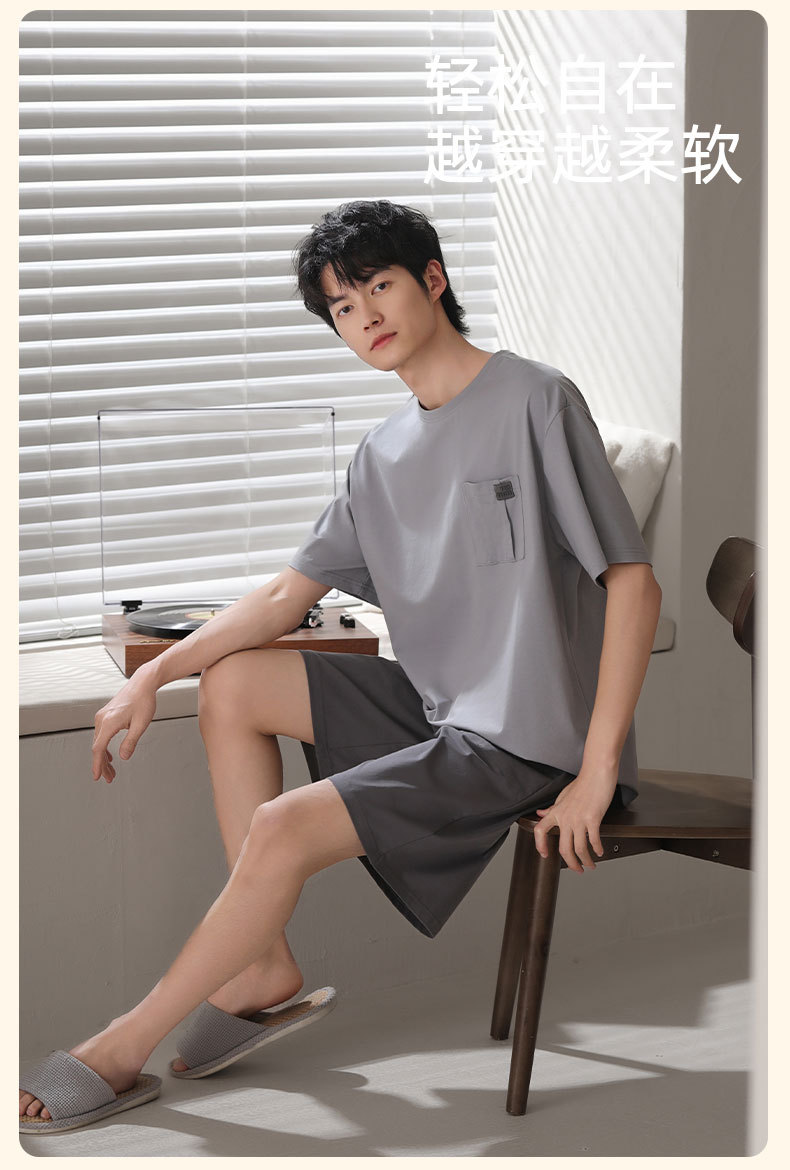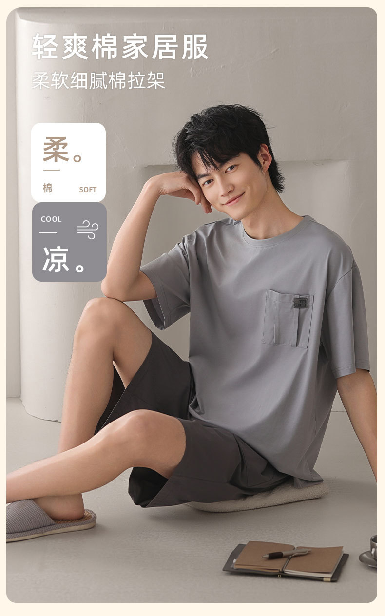 남성용 잠옷, 반팔 여름 면 양복, 얇고 부드럽고 통기성이 좋으며 캐주얼하고 루즈하며 가정복으로 착용 가능