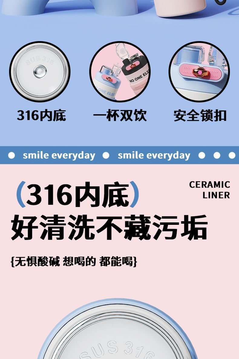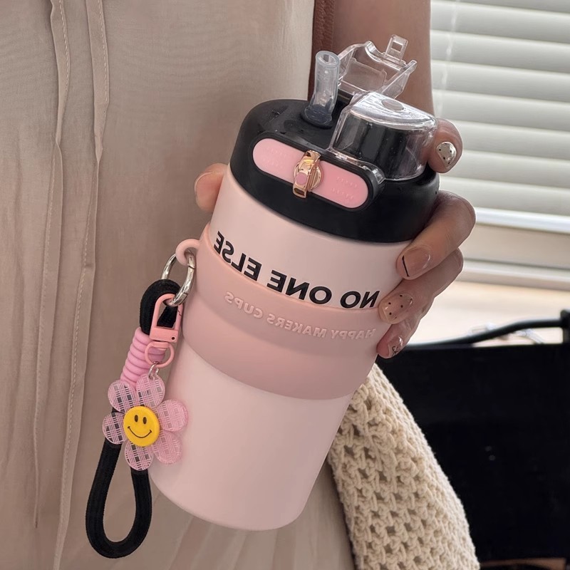 여자를위한 물 컵 보온병 컵 대용량 및 고가치 2024 새로운 스테인레스 스틸 얼음 보존 휴대용 학생 밀짚 컵