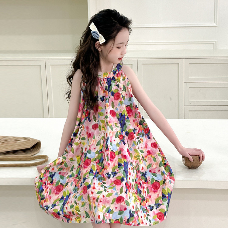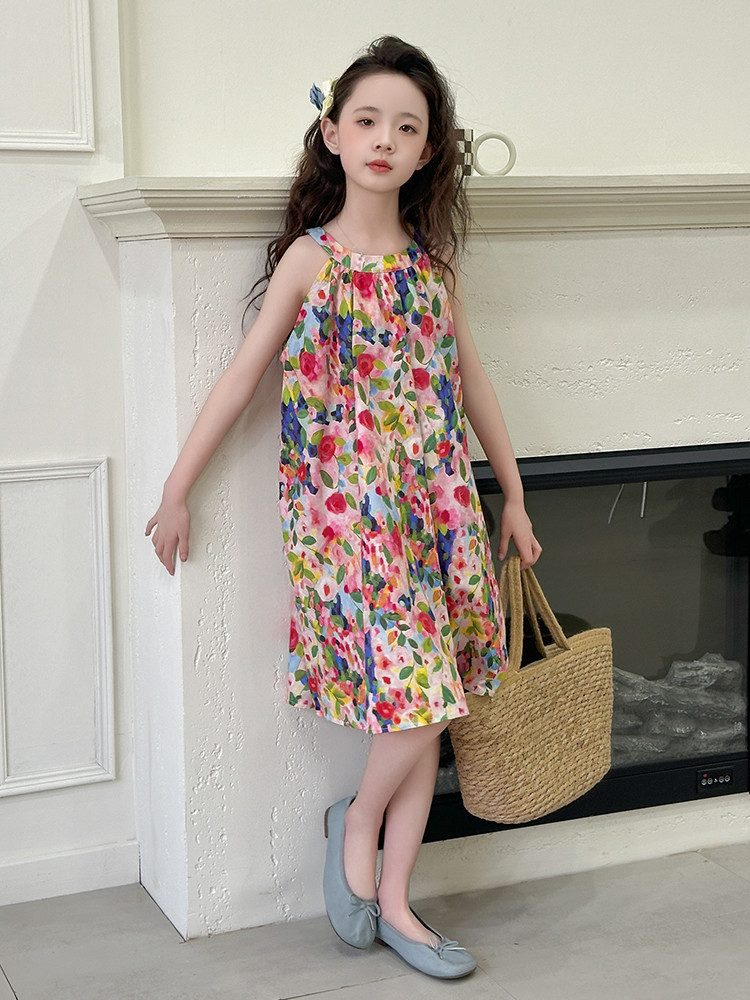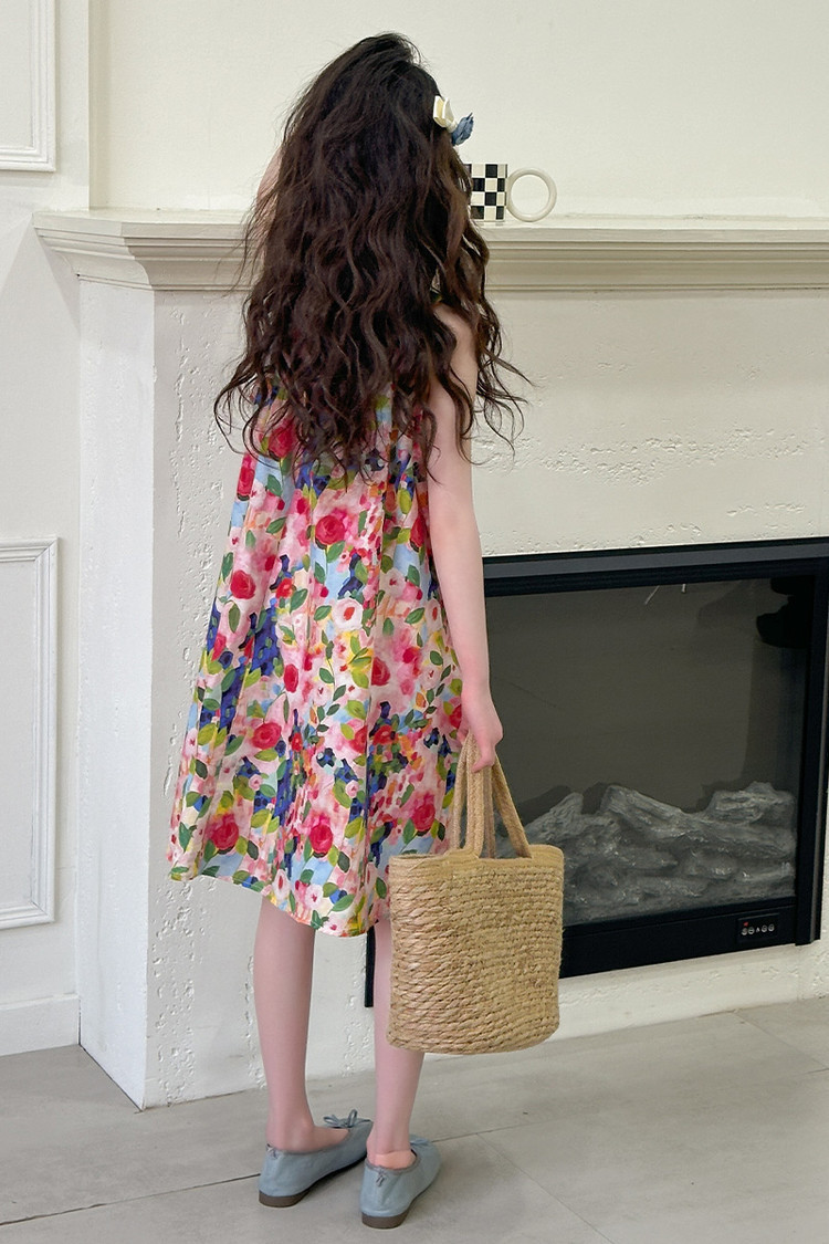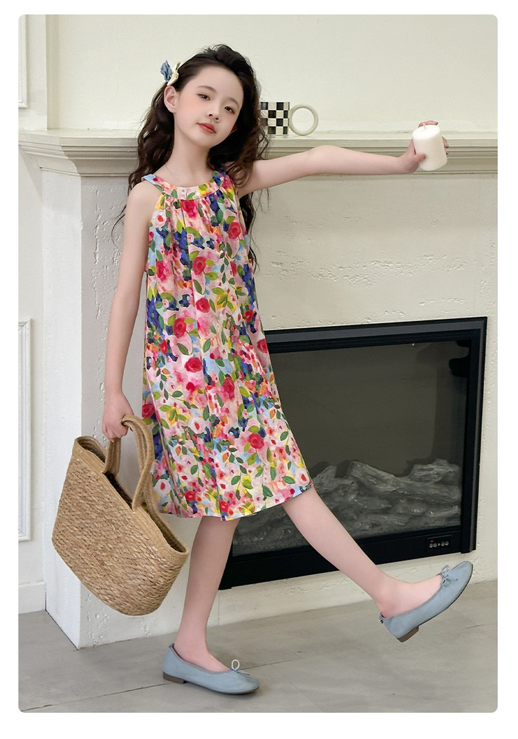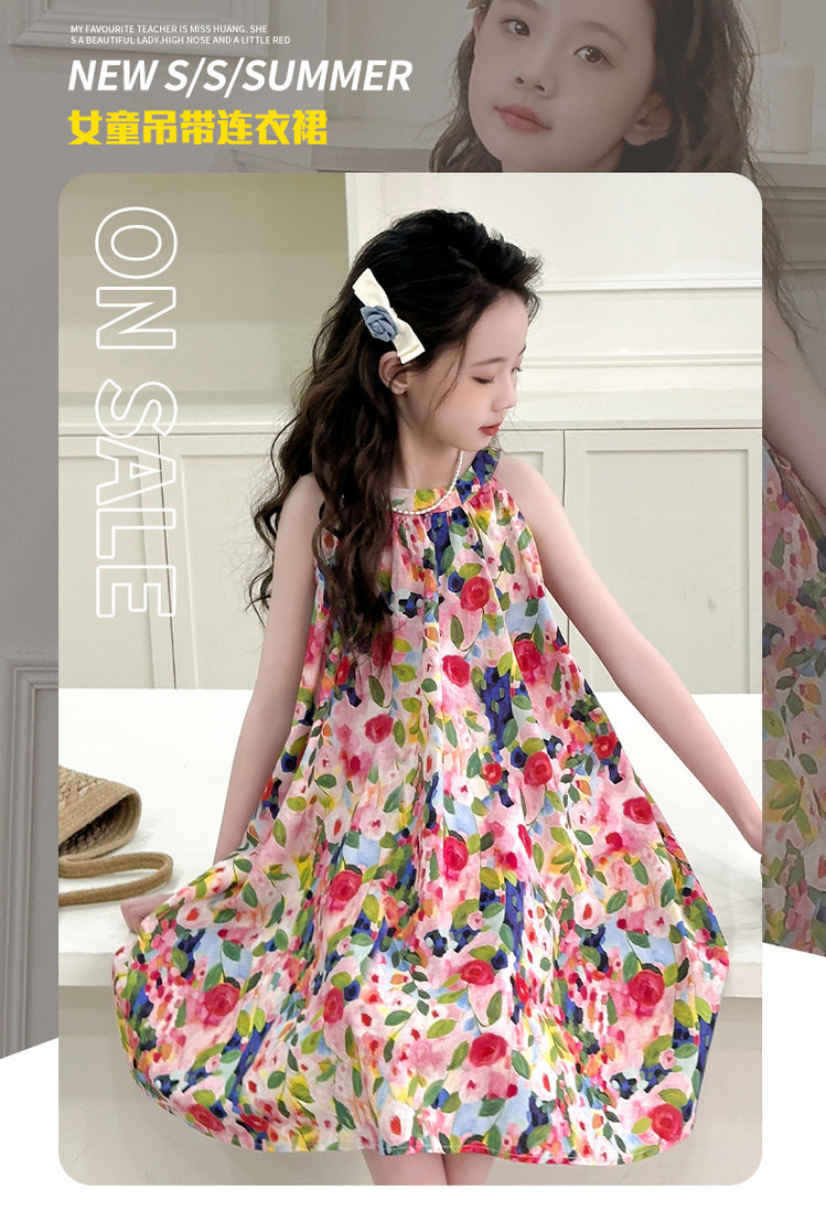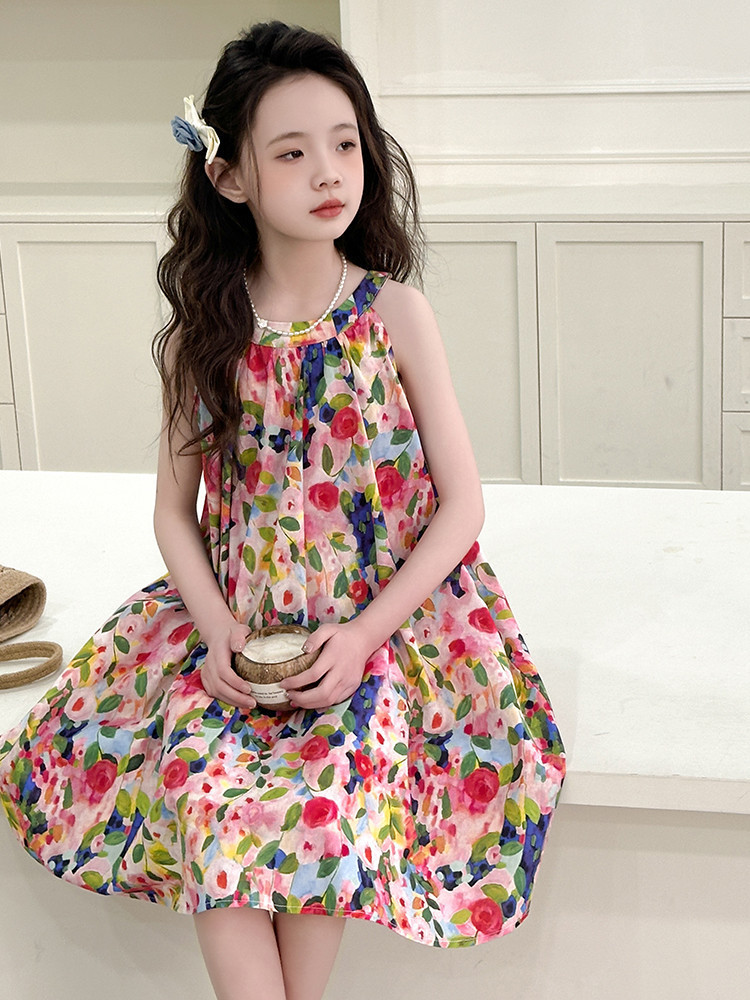 조끼 치마 여자 목 새 시즌 2025 여자 꽃 원피스 여름 외국 스타일 큰 소녀 공주 치마 한국스토어 가기