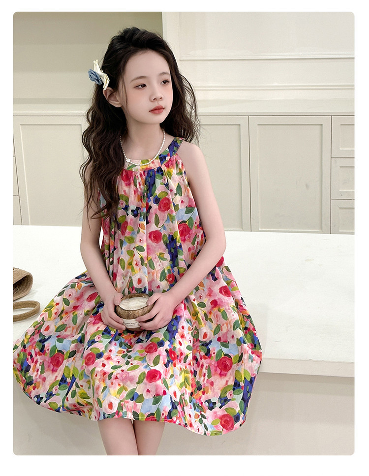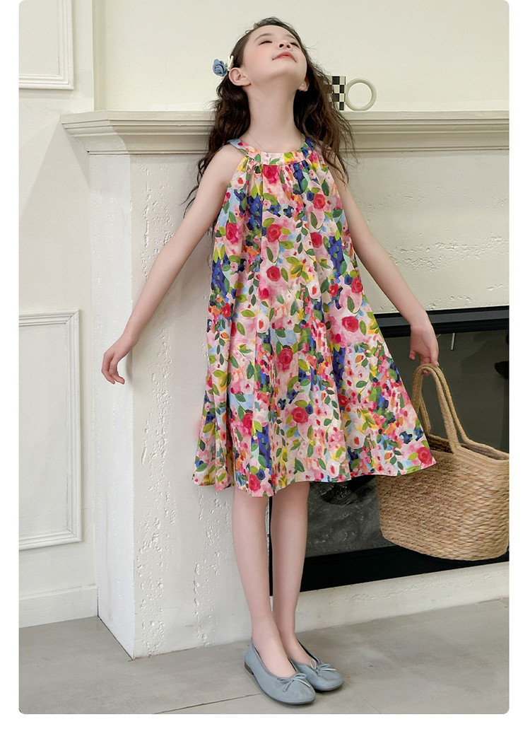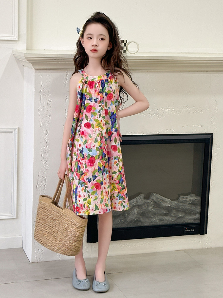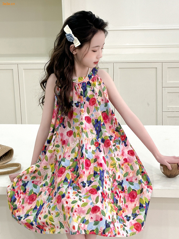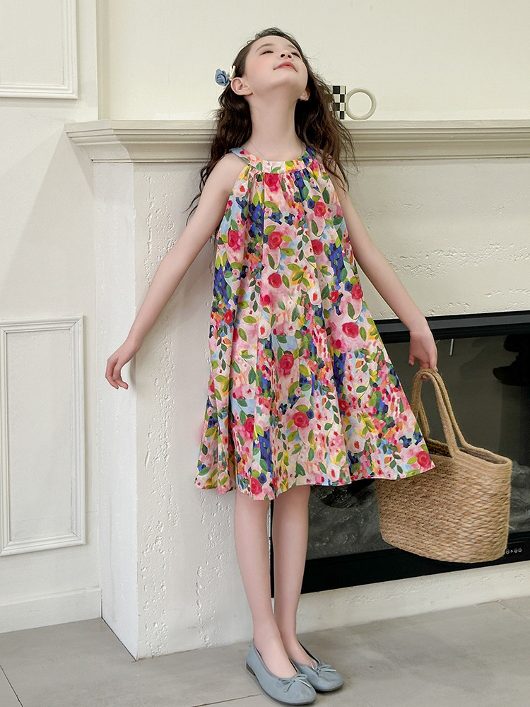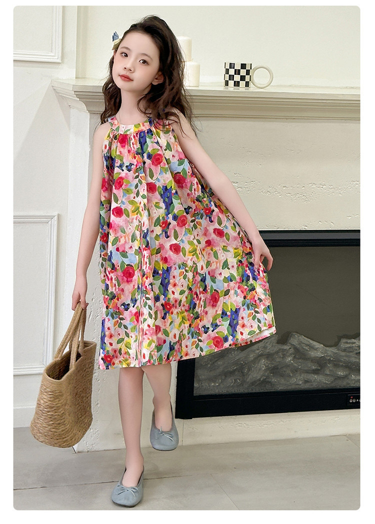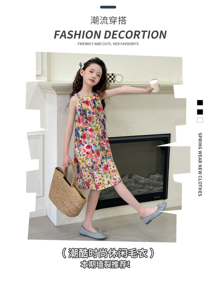 조끼 치마 여자 목 새 시즌 2025 여자 꽃 원피스 여름 외국 스타일 큰 소녀 공주 치마 한국스토어 가기