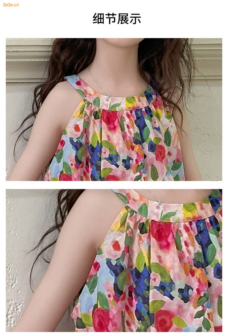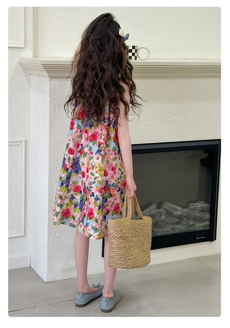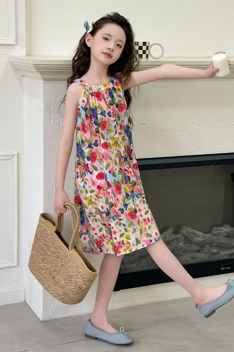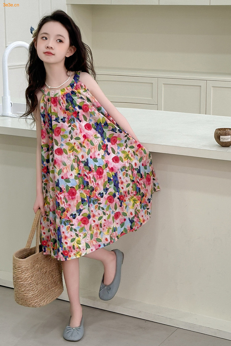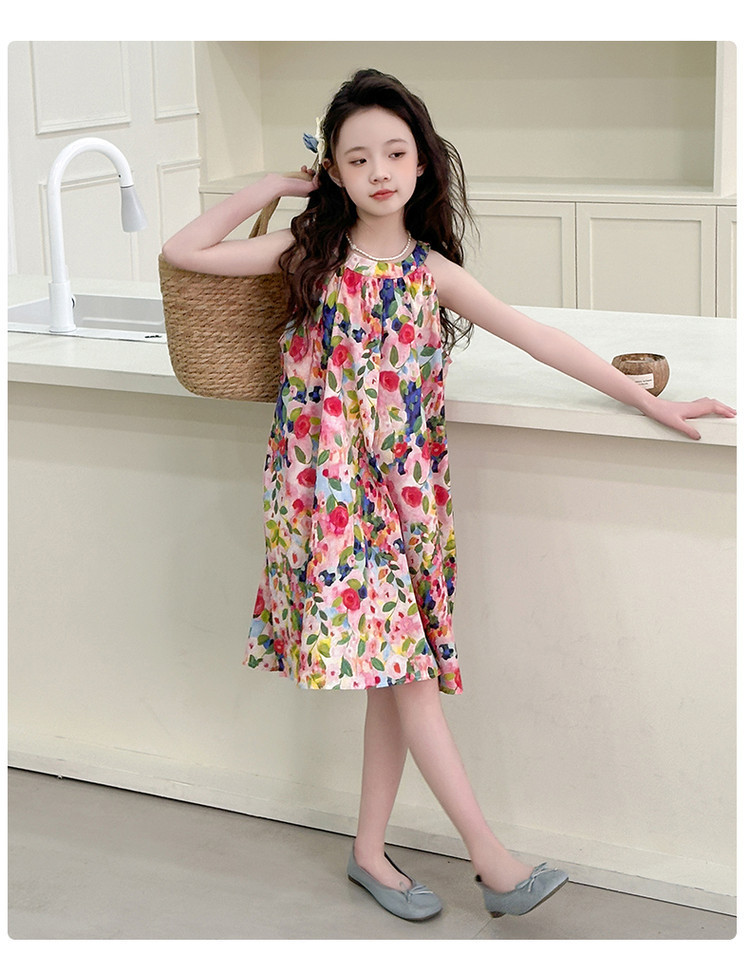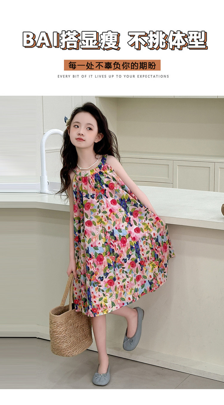 조끼 치마 여자 목 새 시즌 2025 여자 꽃 원피스 여름 외국 스타일 큰 소녀 공주 치마 한국스토어 가기