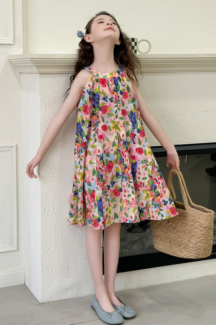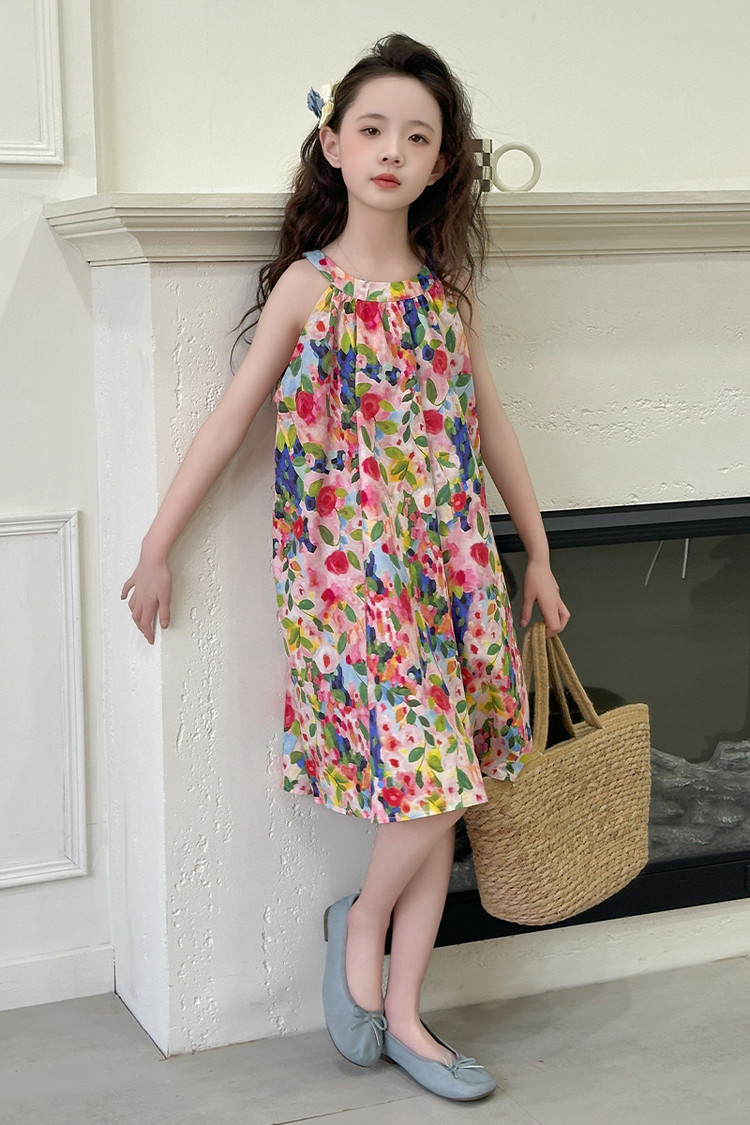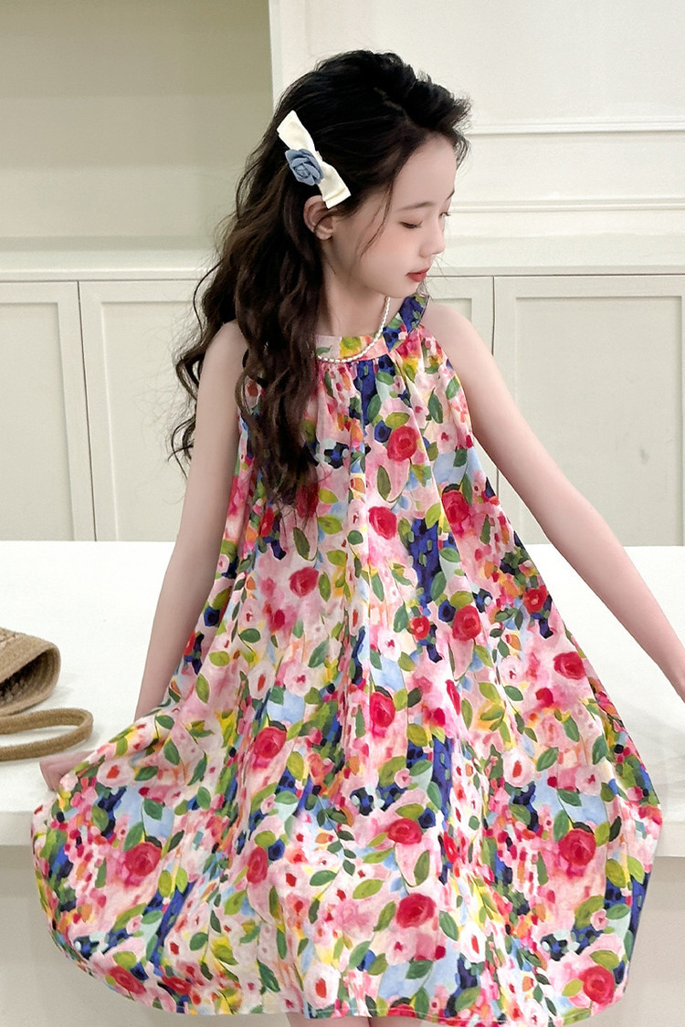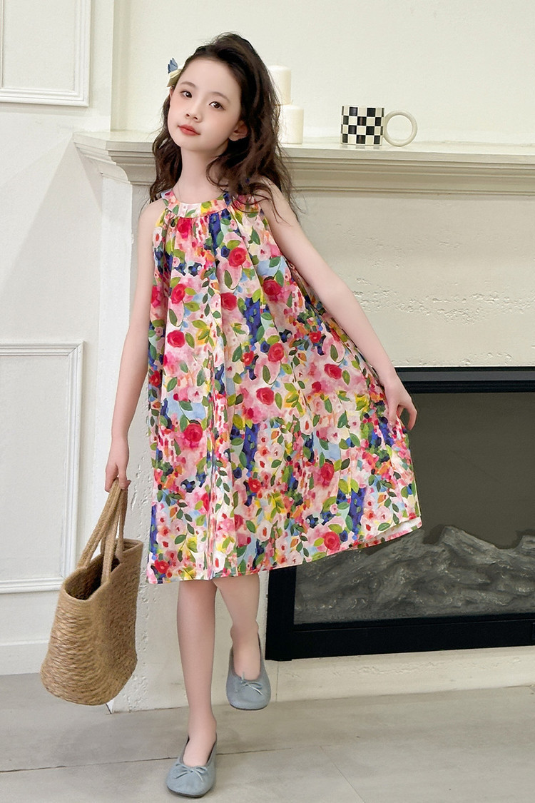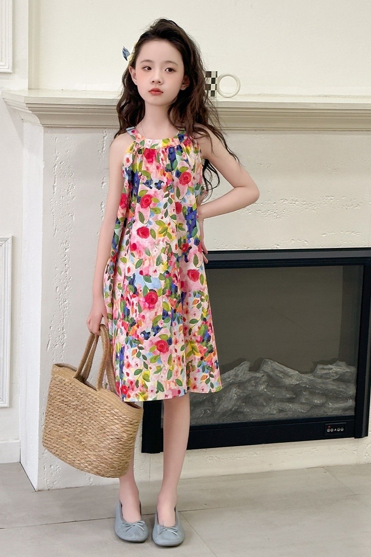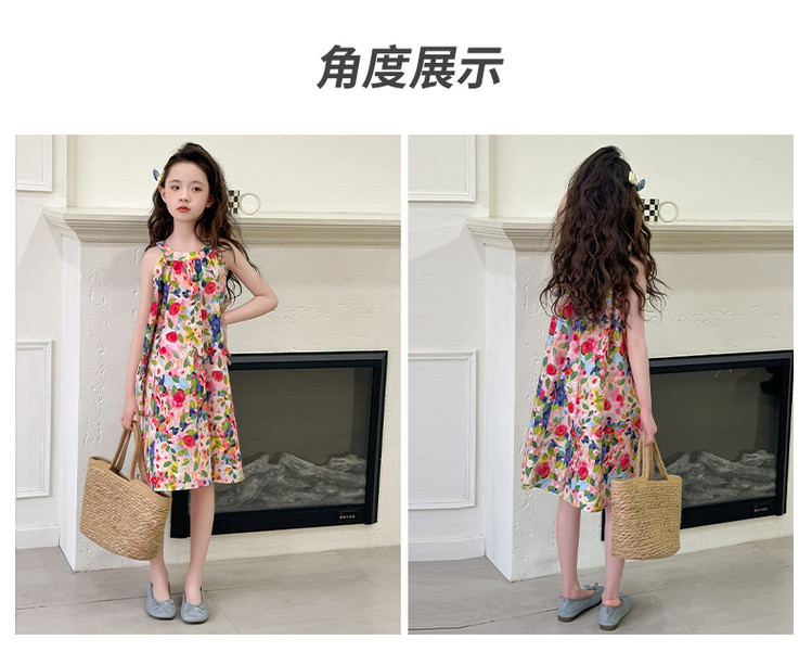조끼 치마 여자 목 새 시즌 2025 여자 꽃 원피스 여름 외국 스타일 큰 소녀 공주 치마 한국스토어 가기