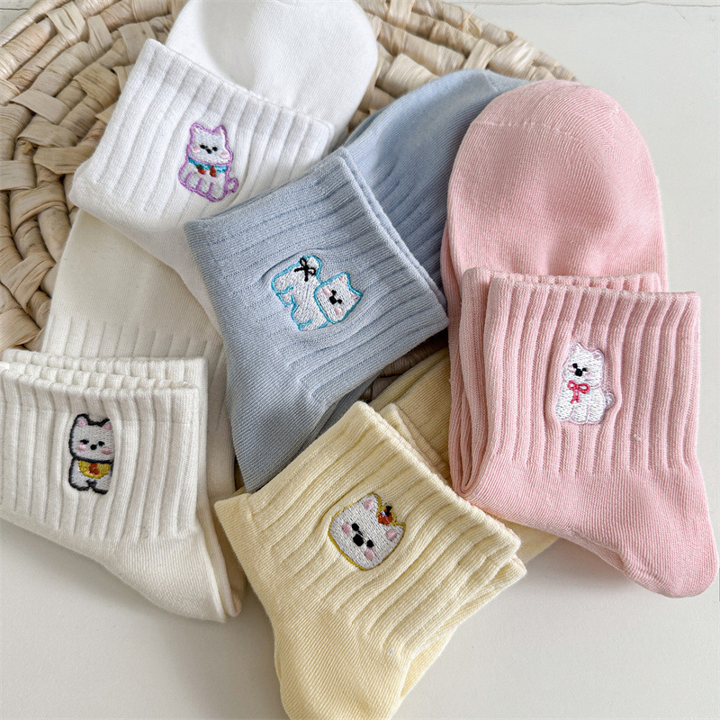 귀여운 자수 강아지 양말 여성의 다채로운 미드 양말 Ins 트렌디 한 여름 얇은 스포츠 일본 스타일 만화 양말 면화스토어 가기
