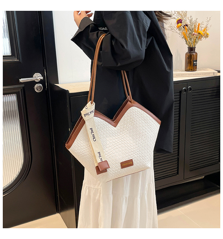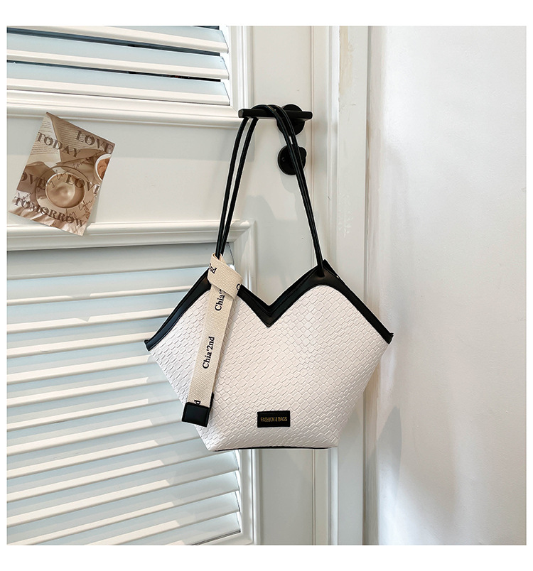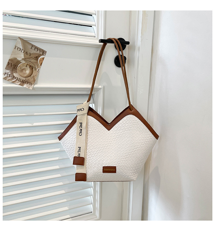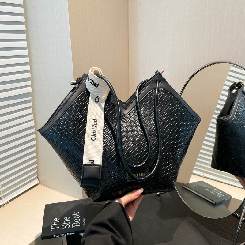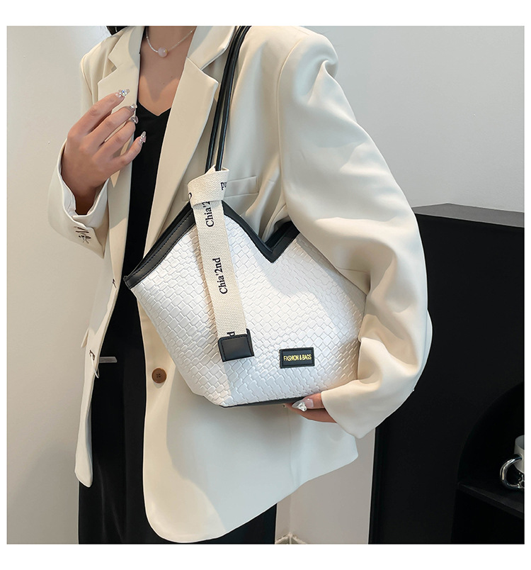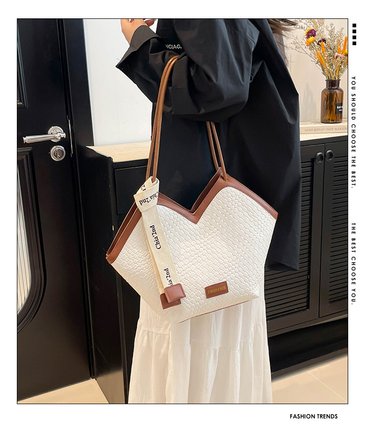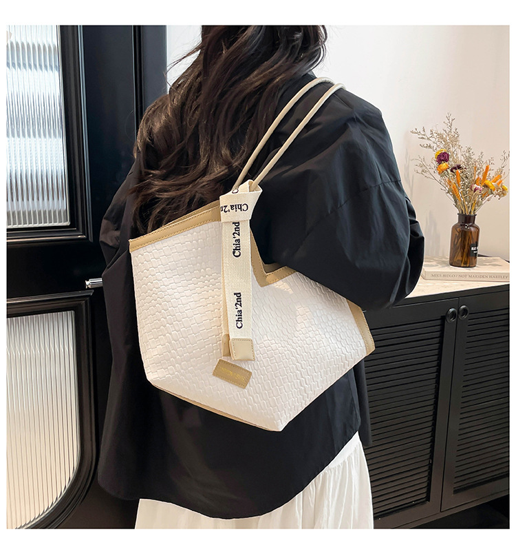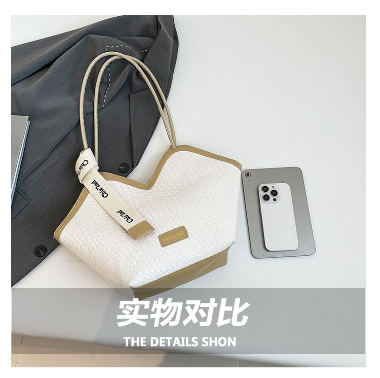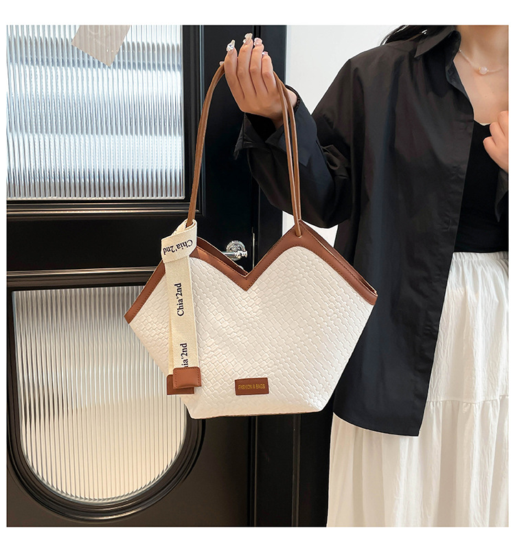 2025 봄 여름 새로운 복고풍 스타일 짠 패턴 캐주얼 고급 질감 통근 토트 백 싱글 숄더 겨드랑이 가방