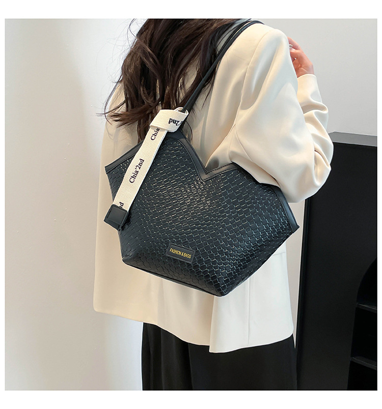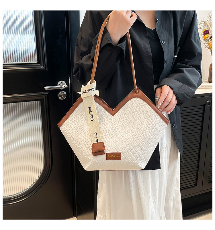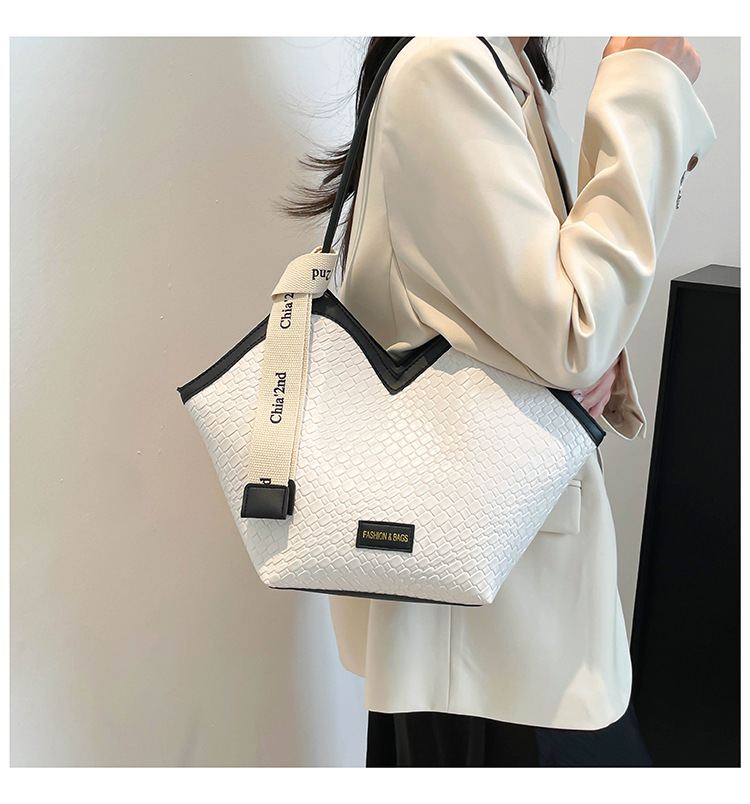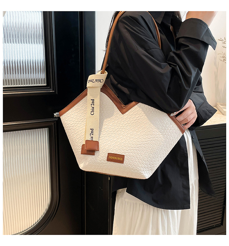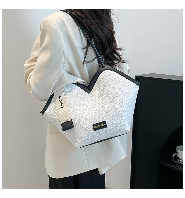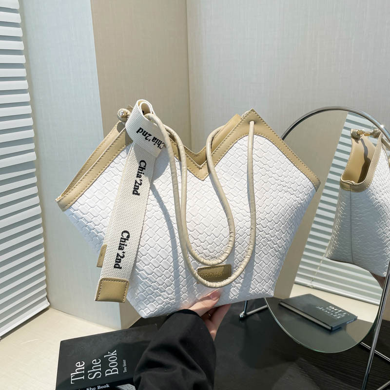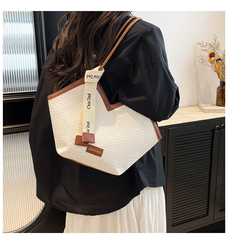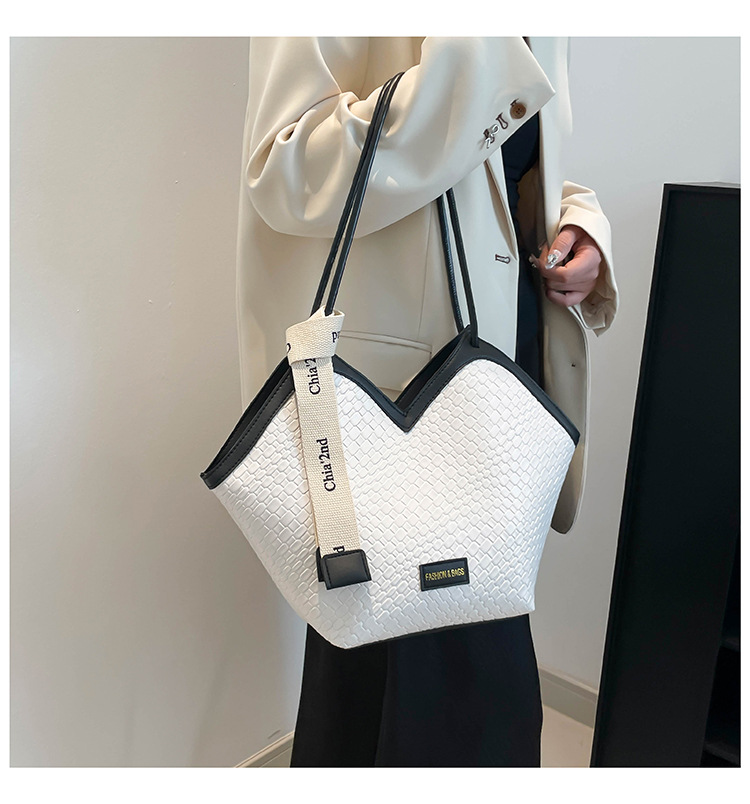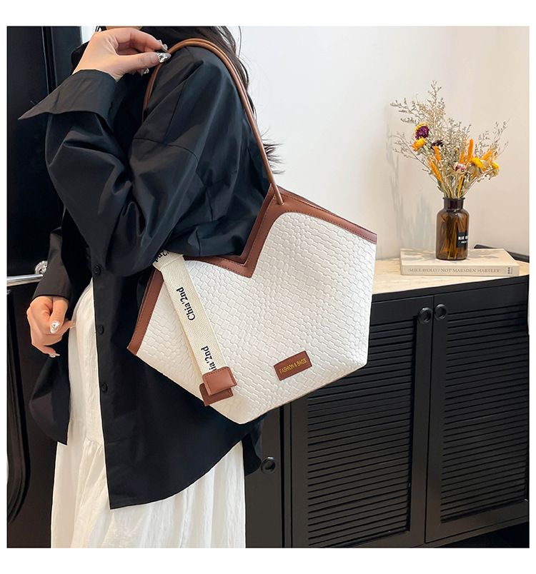 2025 봄 여름 새로운 복고풍 스타일 짠 패턴 캐주얼 고급 질감 통근 토트 백 싱글 숄더 겨드랑이 가방