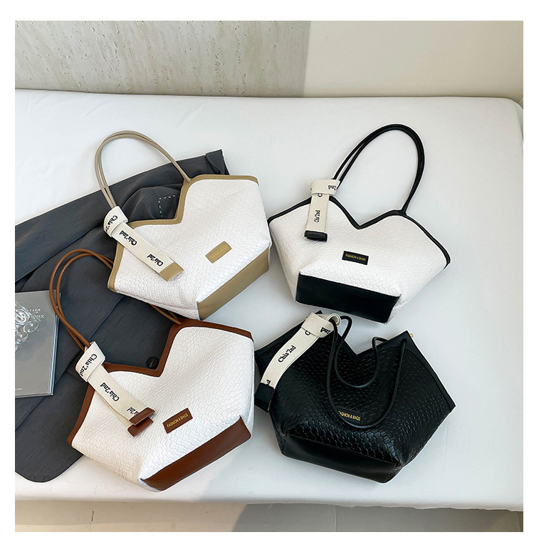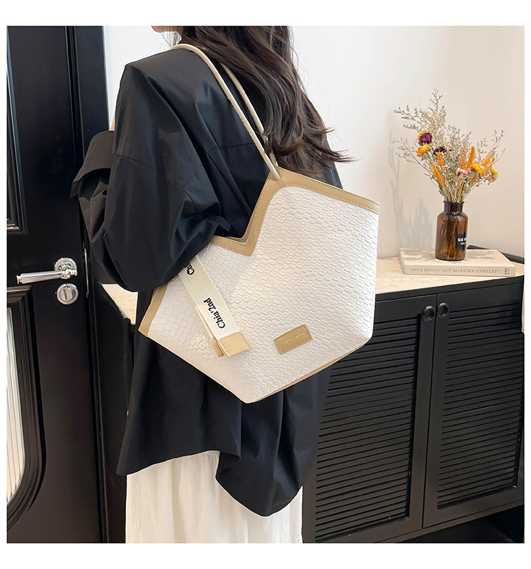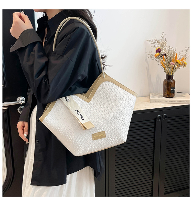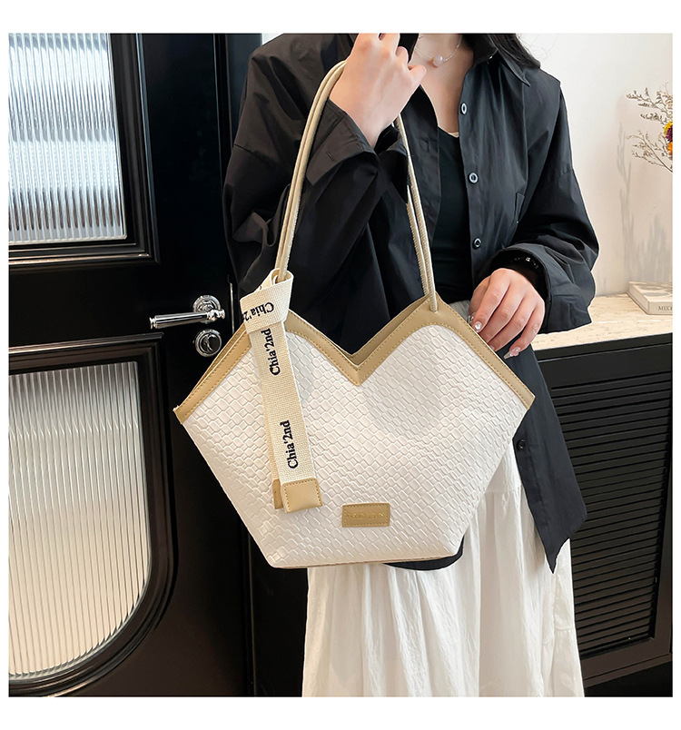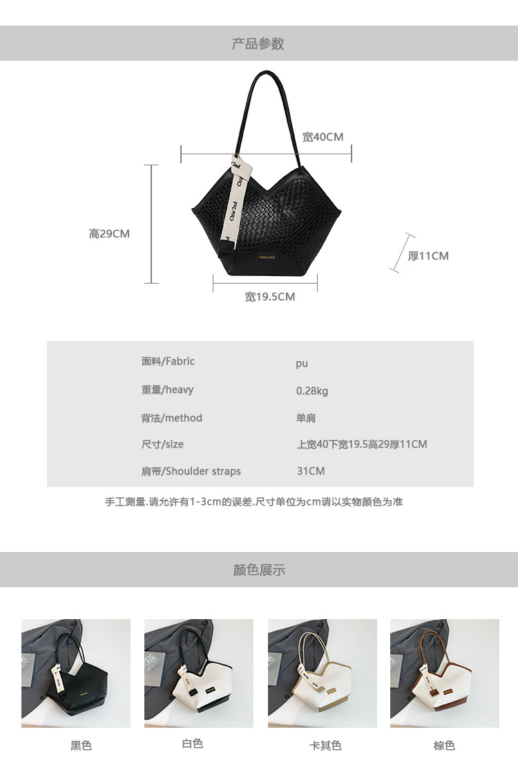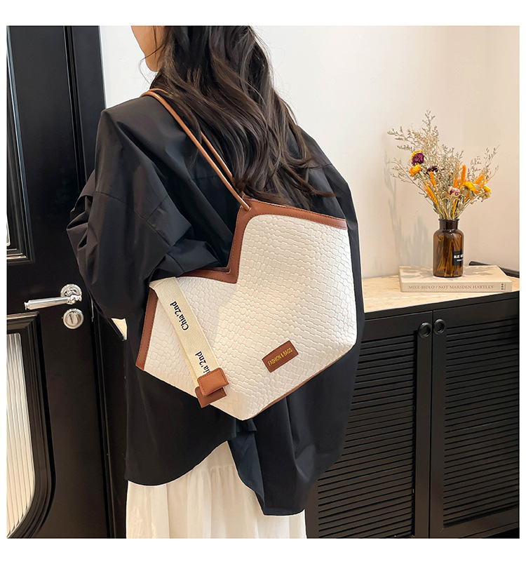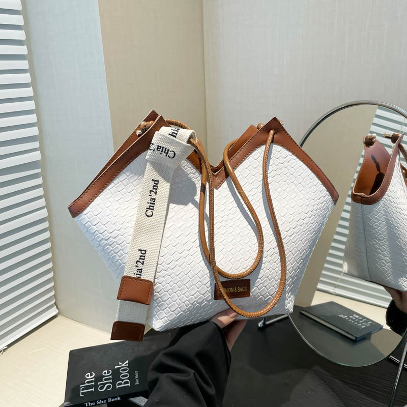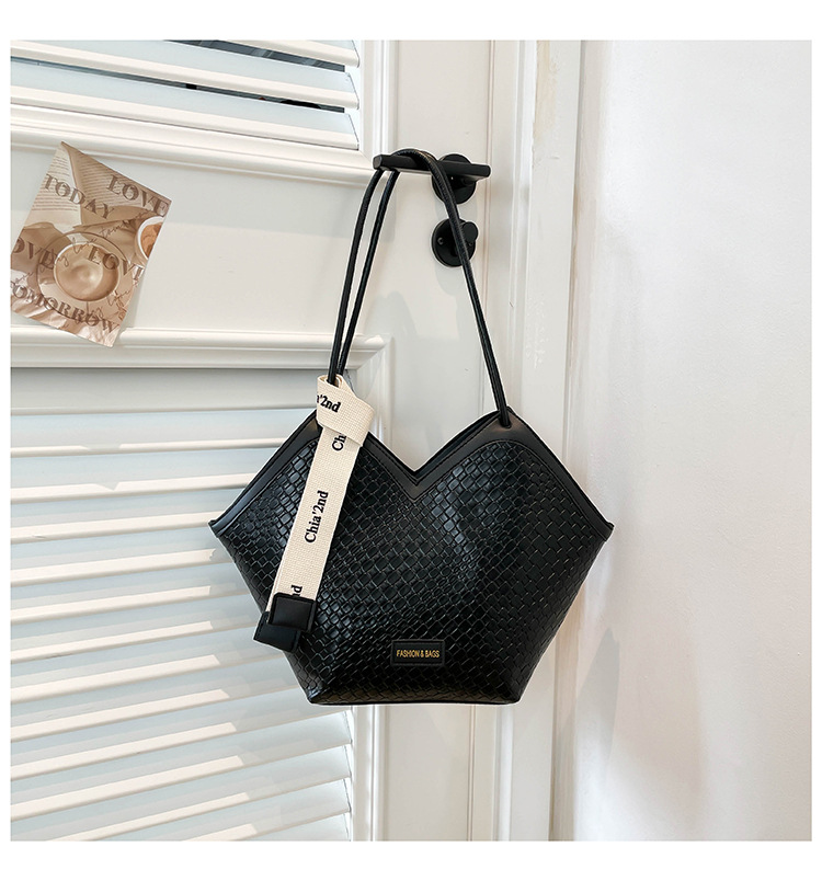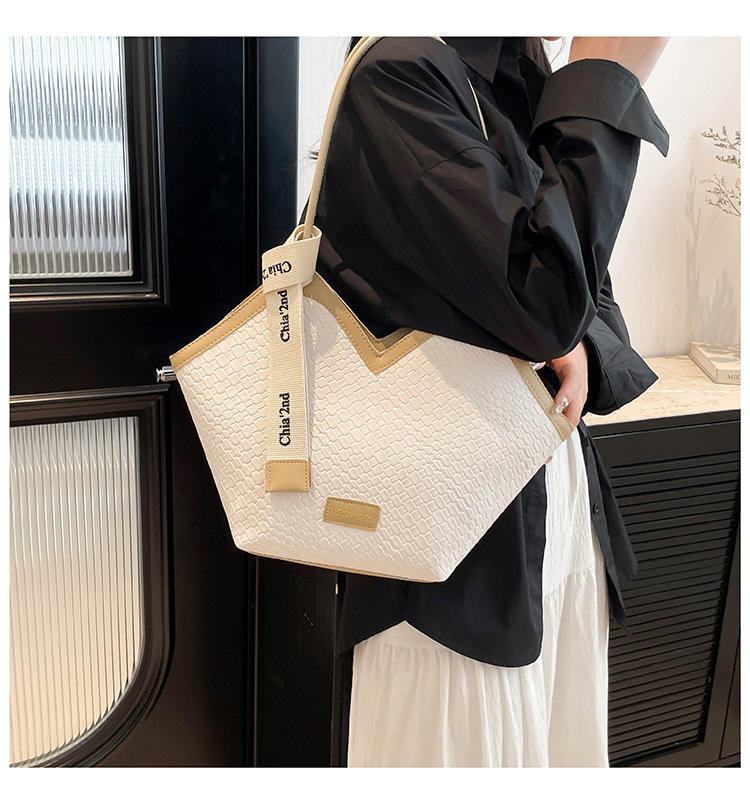 2025 봄 여름 새로운 복고풍 스타일 짠 패턴 캐주얼 고급 질감 통근 토트 백 싱글 숄더 겨드랑이 가방