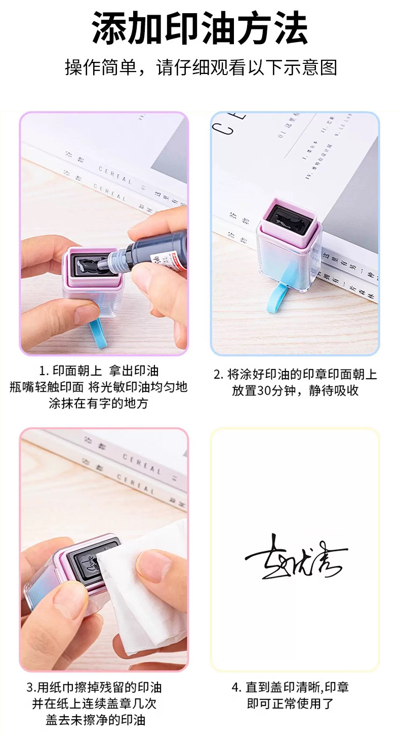 이름 성격 시그니처 씰 디자인 시그니처 이름 조각 만화 감광성 씰 프레스 휴대용 끈스토어 가기