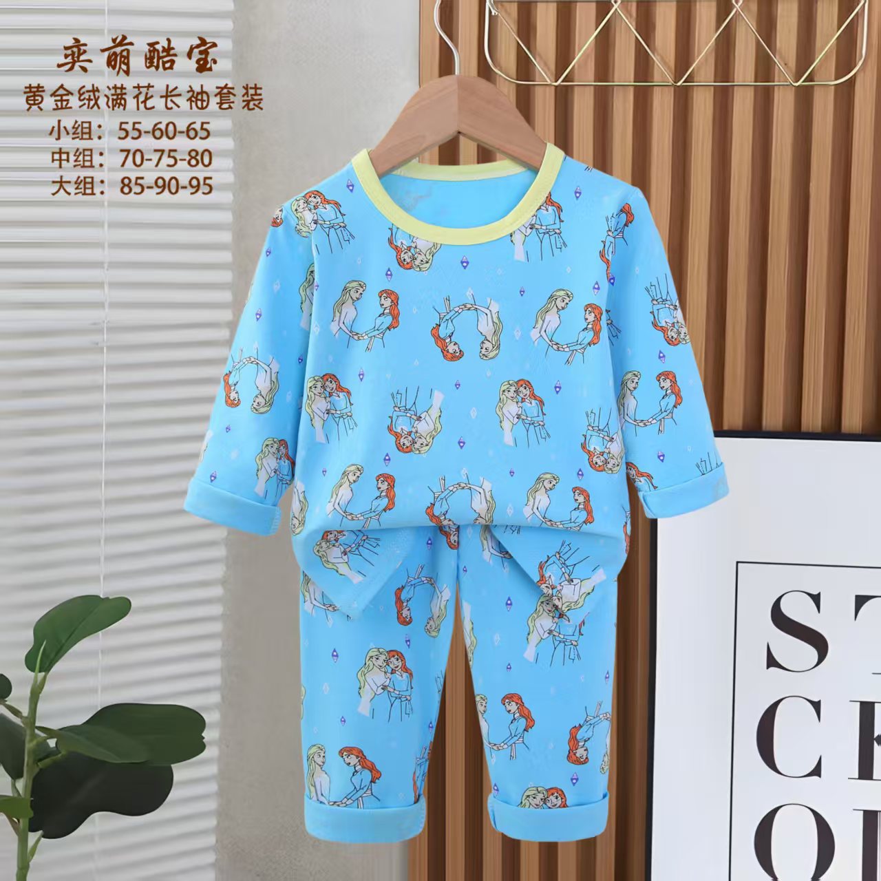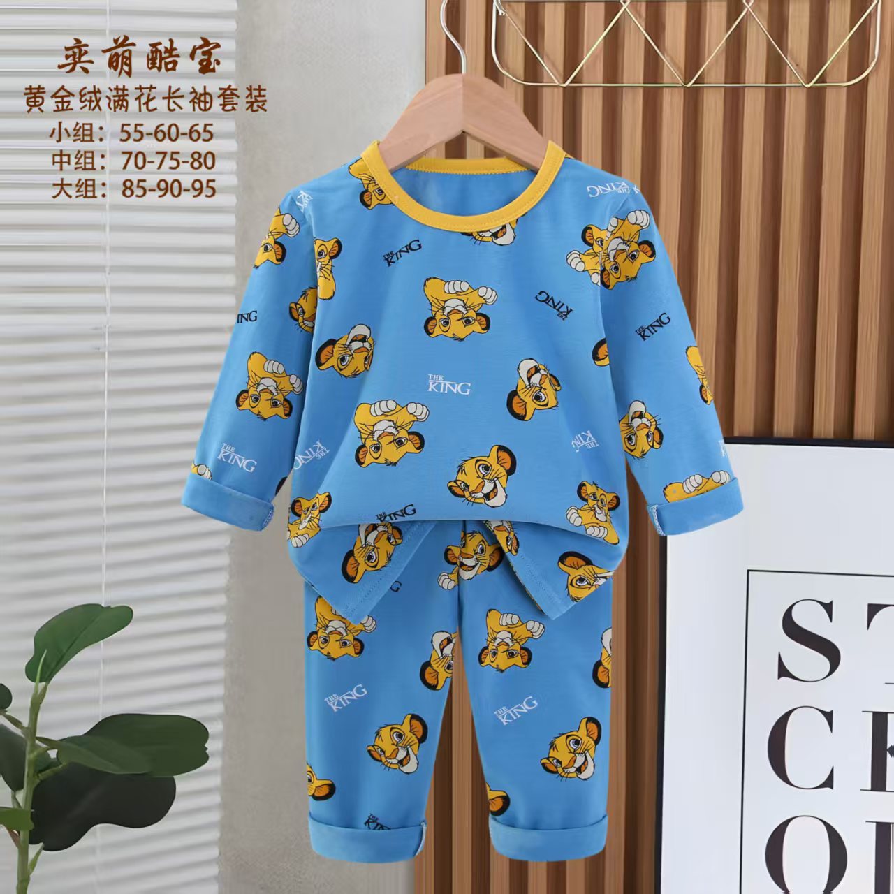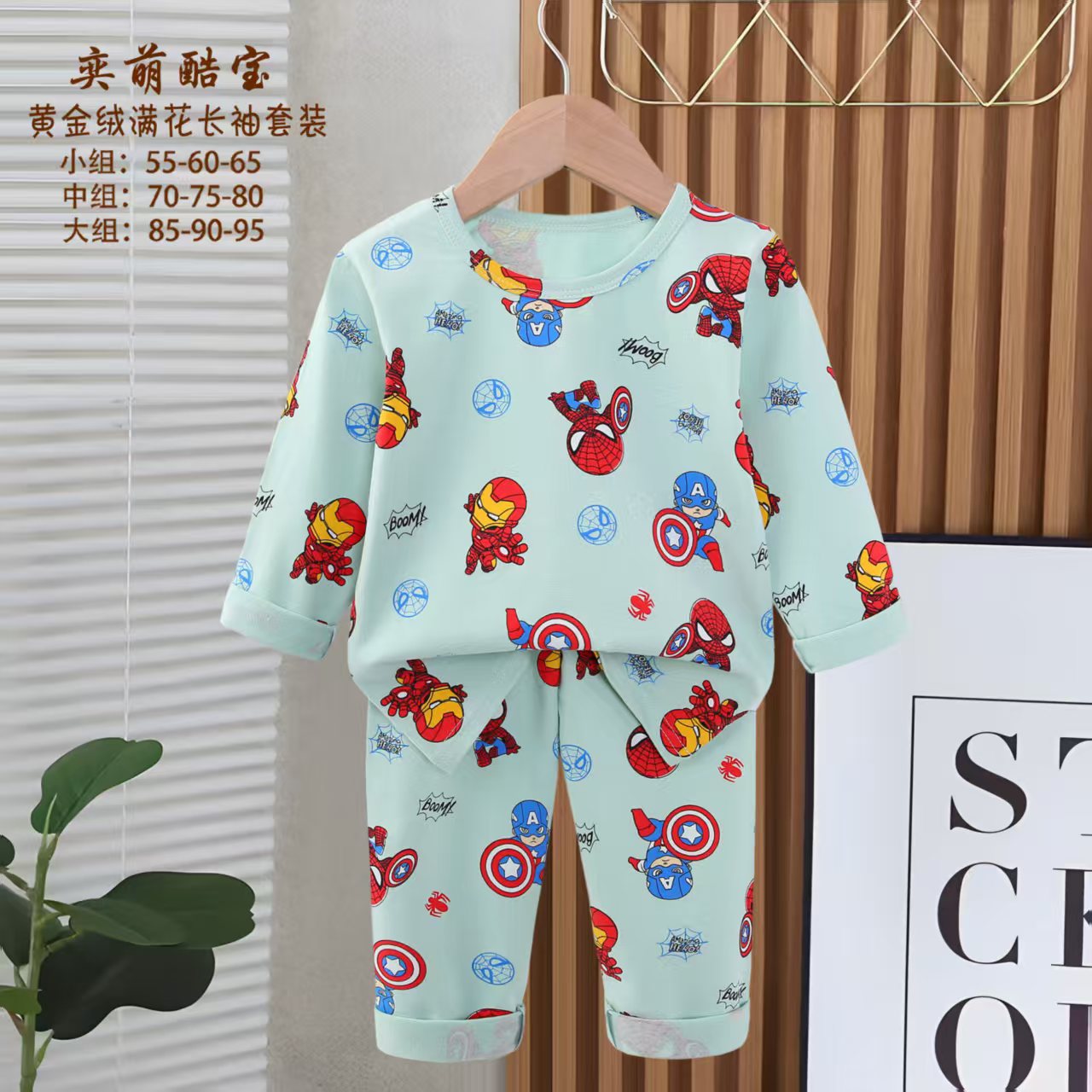 어린이 잠옷 세트 봄 라이크라 면 아기 속옷 남아 홈웨어 여아 가을옷 가을바지 어린이용