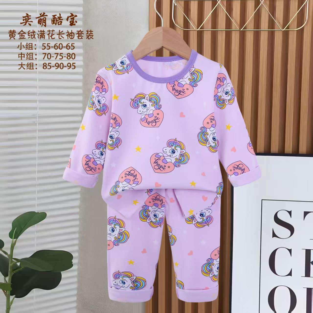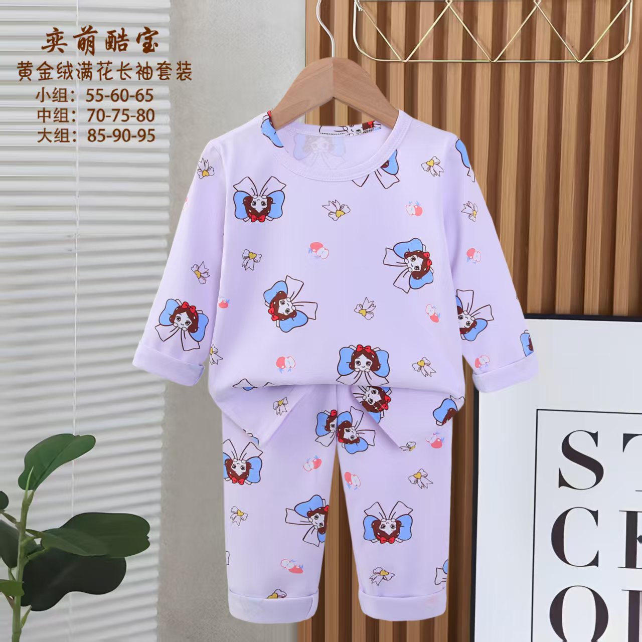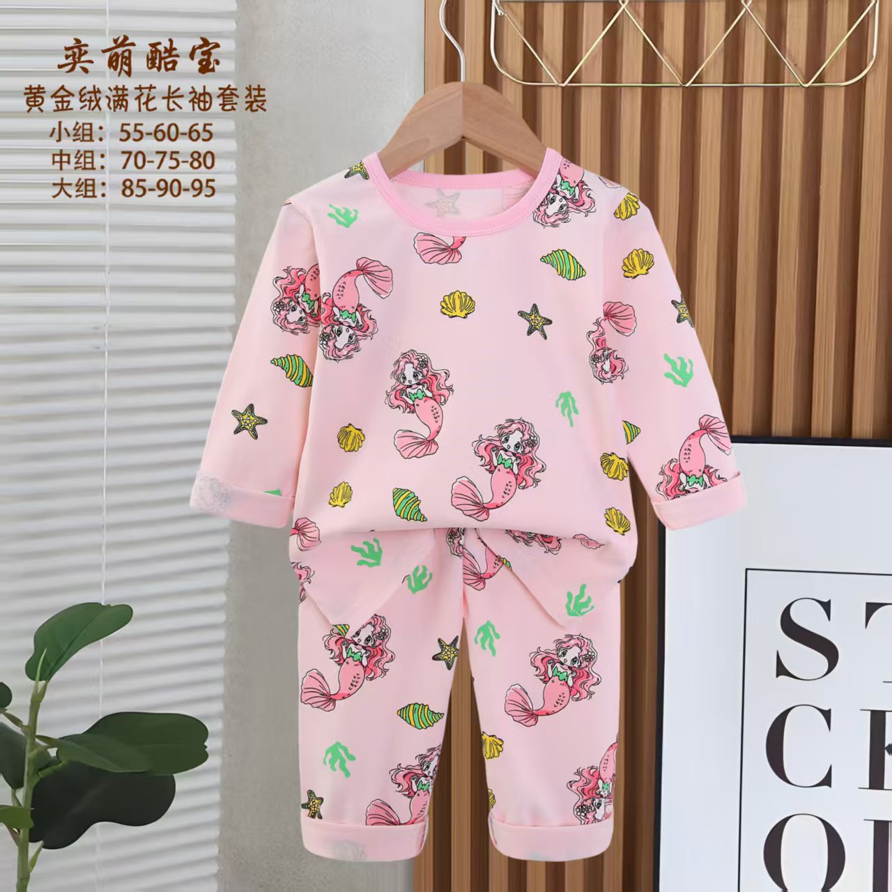어린이 잠옷 세트 봄 라이크라 면 아기 속옷 남아 홈웨어 여아 가을옷 가을바지 어린이용